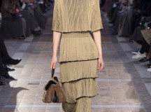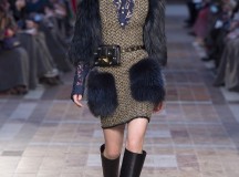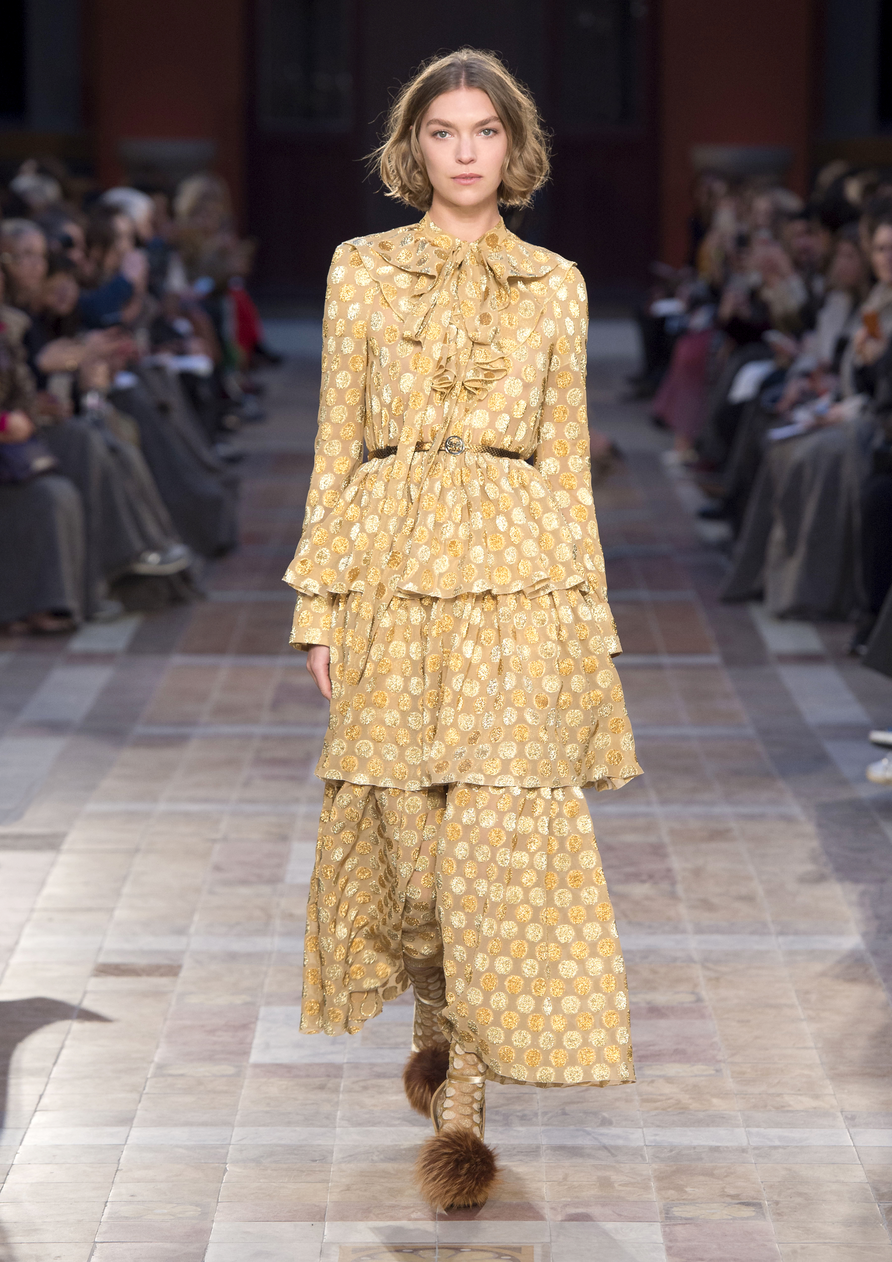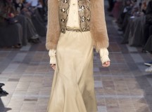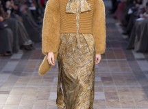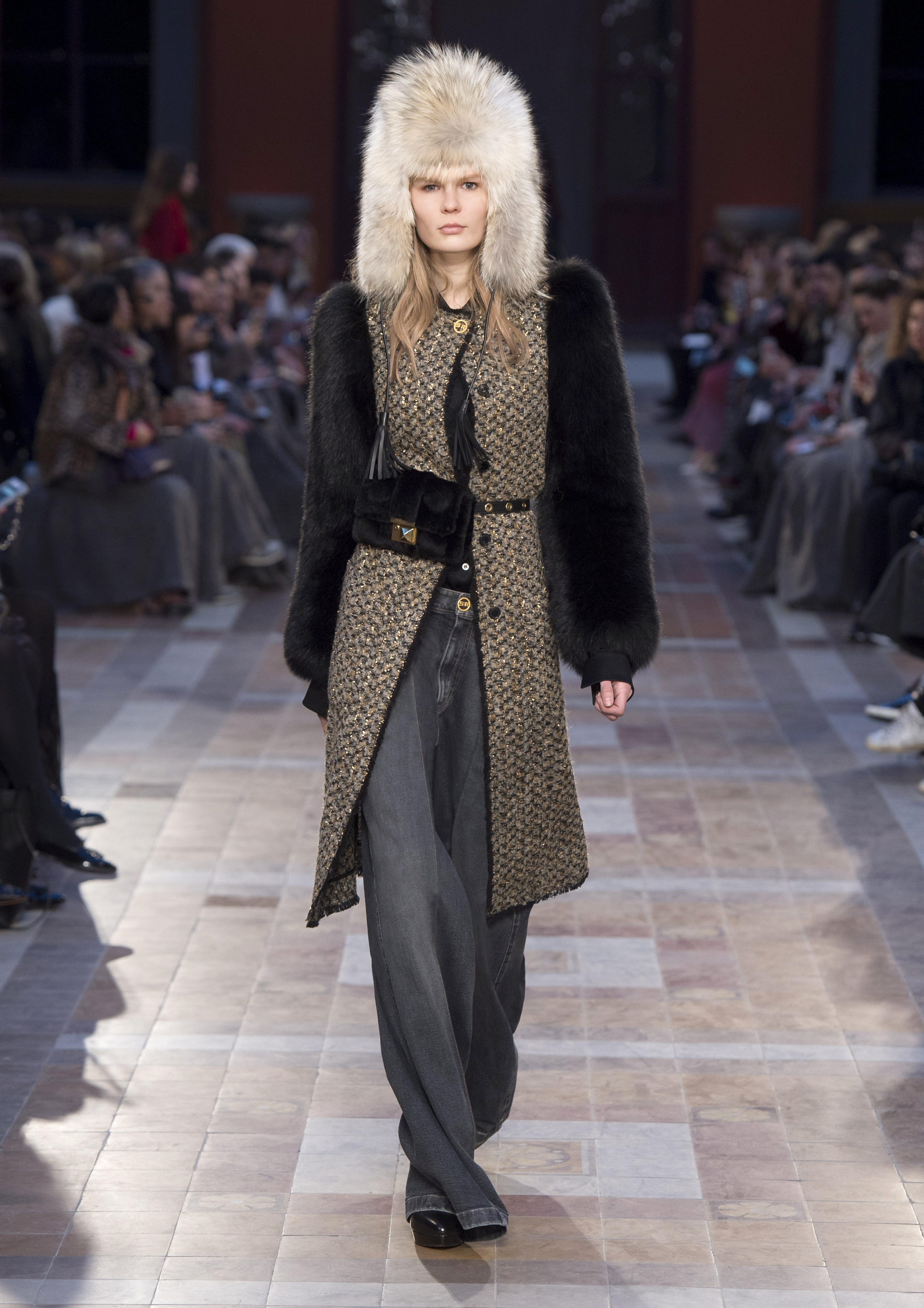 Les silhouettes accrochent la lumière entre les gros sequins, le lurex et les boutons dorés. Un côté m’as-tu-vu qui s’épanouit dans les cabas en fourrure XXL, les grosses chapkas et les robes filets d’inspirations hip-hop, mais jamais au premier degré.