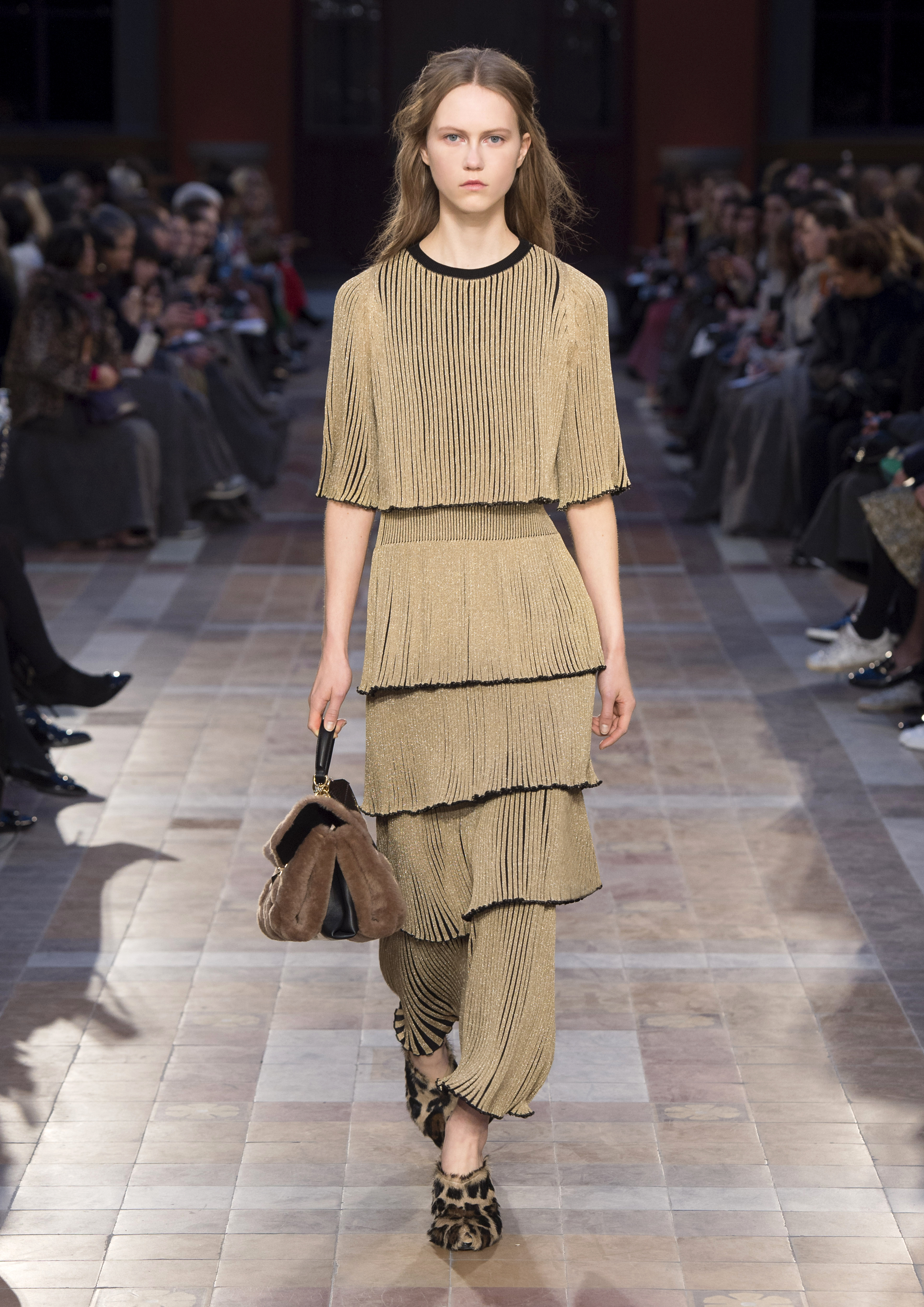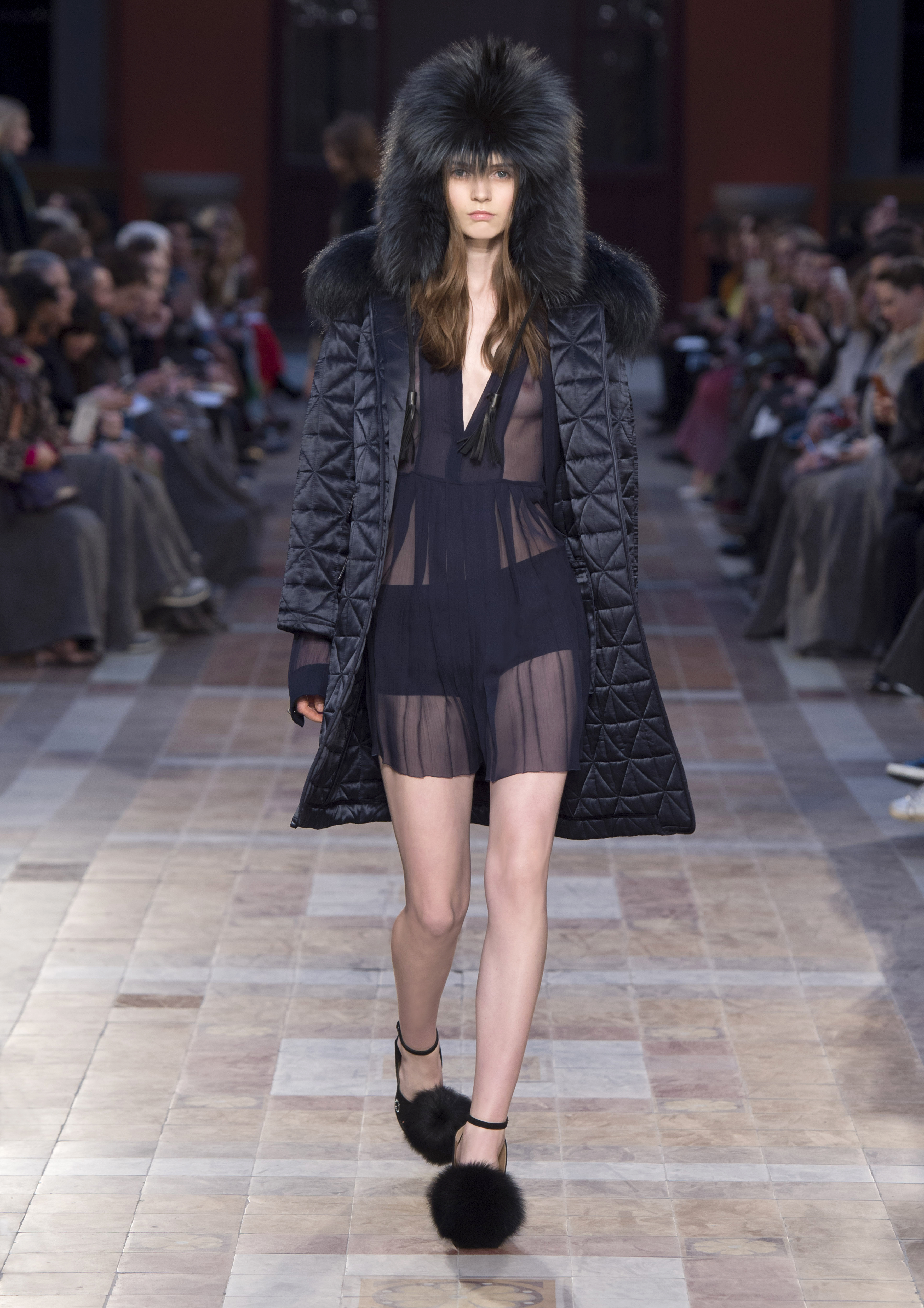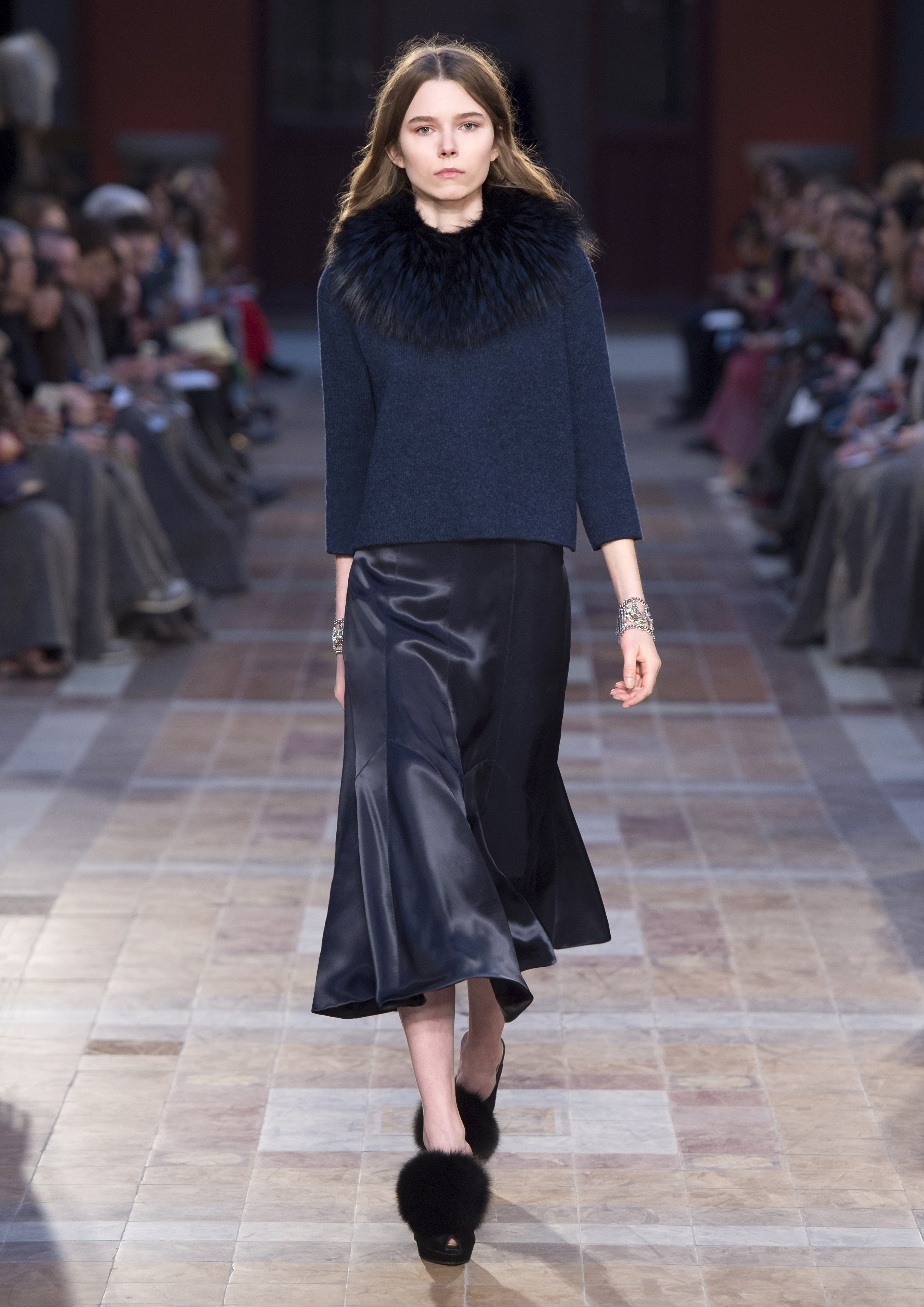 Julie de Libran inaugure un quatrième chapitre chez Sonia Rykiel, fidèle à l’esprit Rive-Gauche, et aux fameuses rayures pour la collection automne-hiver 2016. La femme de cette saison est un oiseau de nuit, qui hésite entre un sommeil bercé de doux rêves, et la fête jusqu’à l’aube.