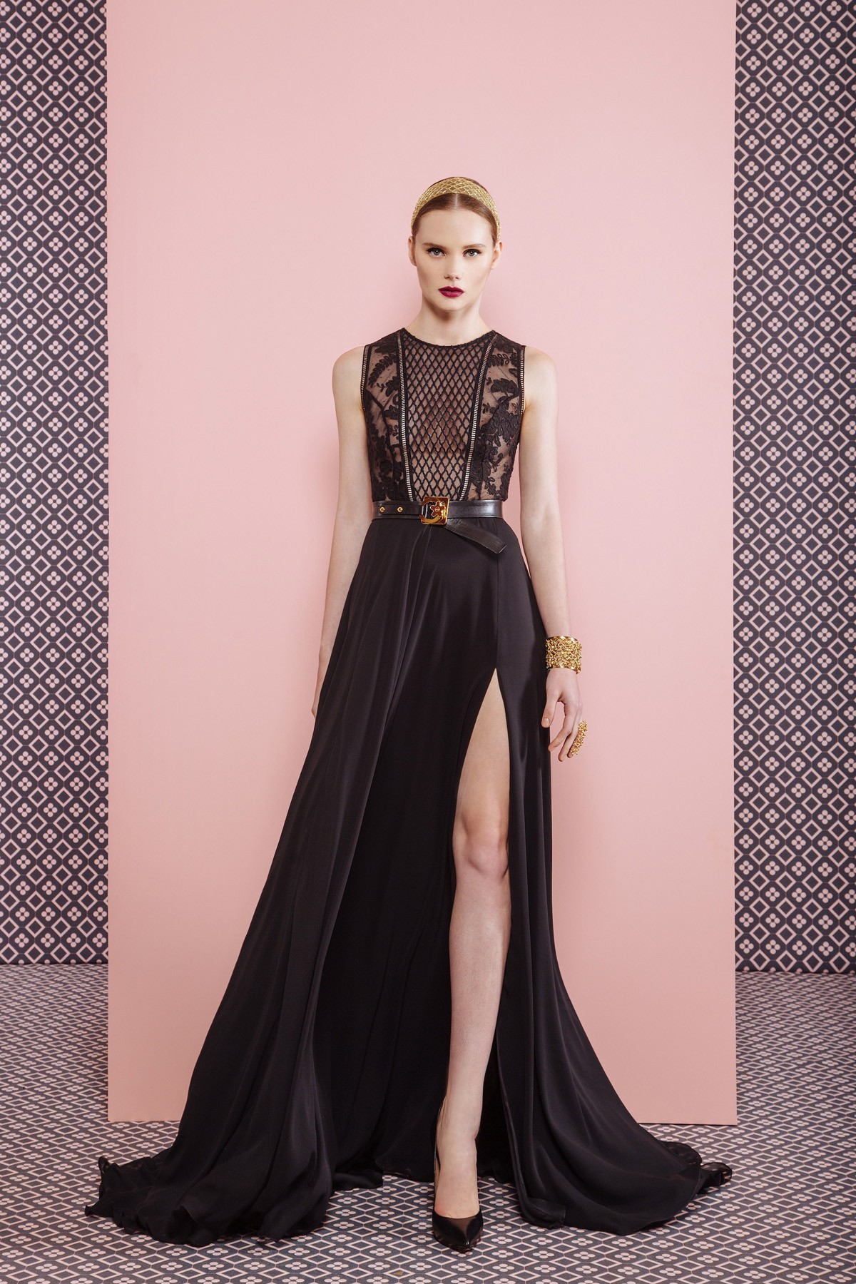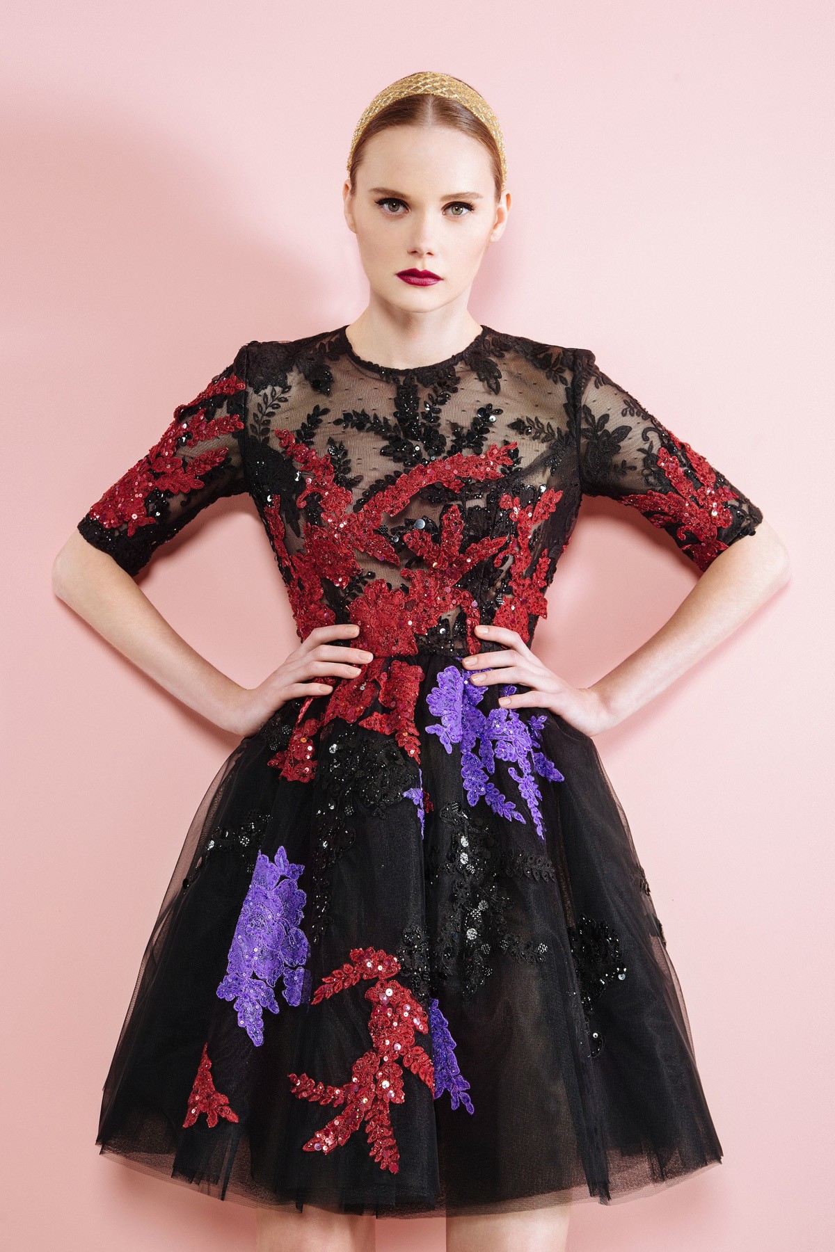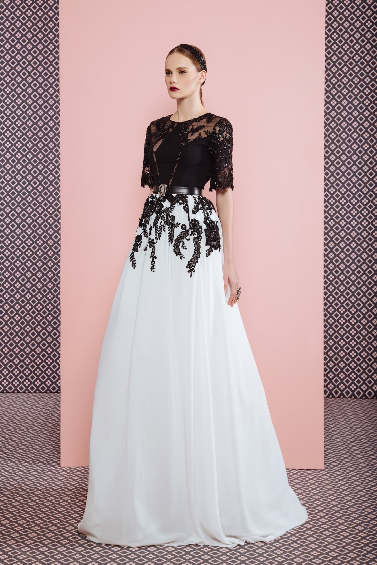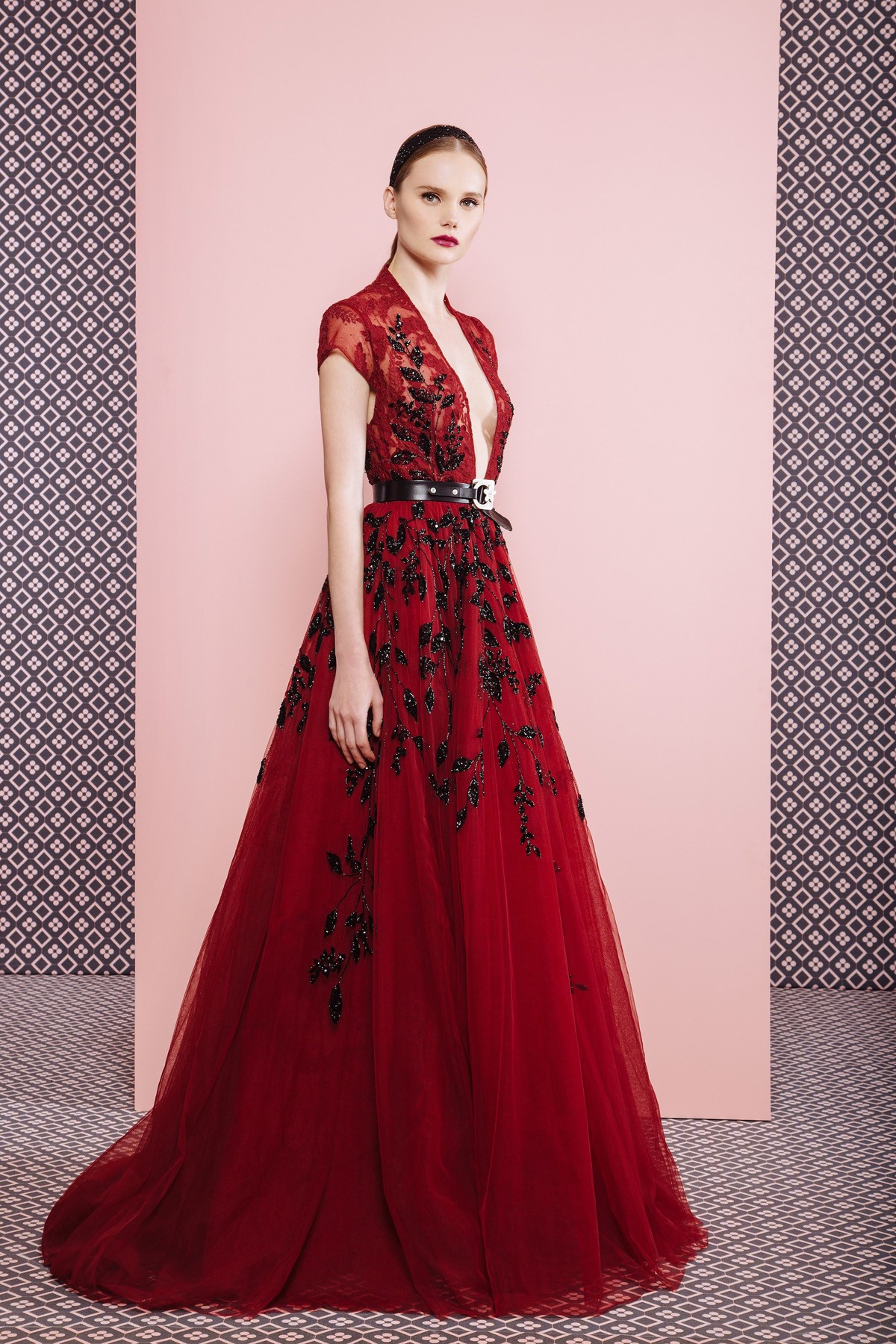 Georges Hobeika rend hommage aux icônes des années 50 avec une collection résolument rétro pour l’automne-hiver 2016. Les petites robes noires à la Audrey Hepburn se couvrent d’empiécements en dentelles et de formes géométriques, tandis que les robes rouges à décolletés plongeants font un clin-d’oeil à Marylin.