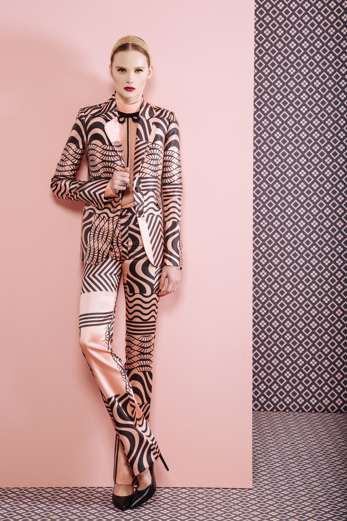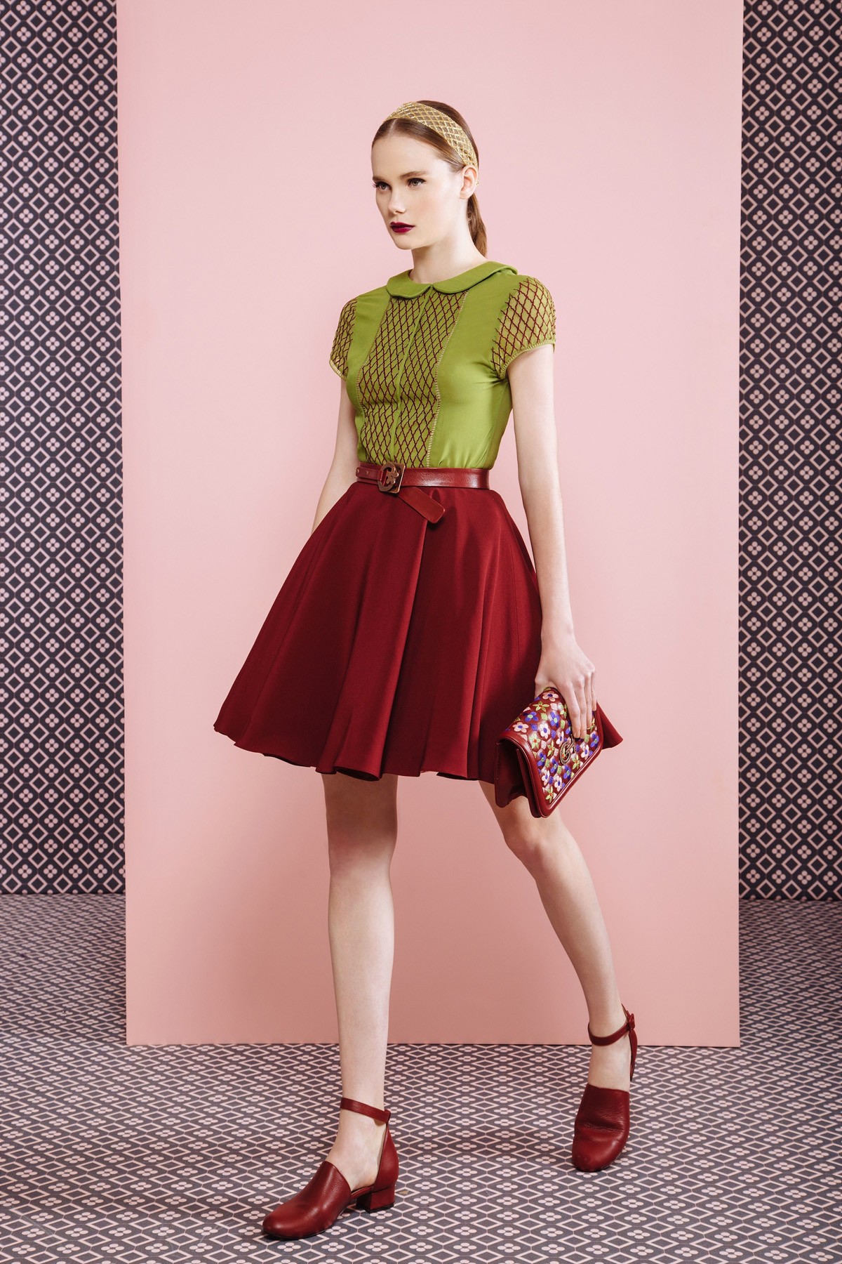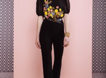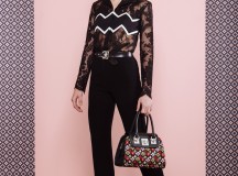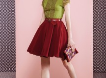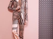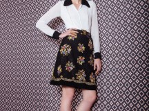Un assemblage éclectique d’imprimés et de couleurs, pour un vestiaire frais, qui transparaît aussi dans le choix des sacs et des chaussures, qu’on aime en léger décalage. Les robes glamours à la taille marquée et les jupes tailles hautes portées avec des blouses sages ou sensuelles, font référence au septième art.