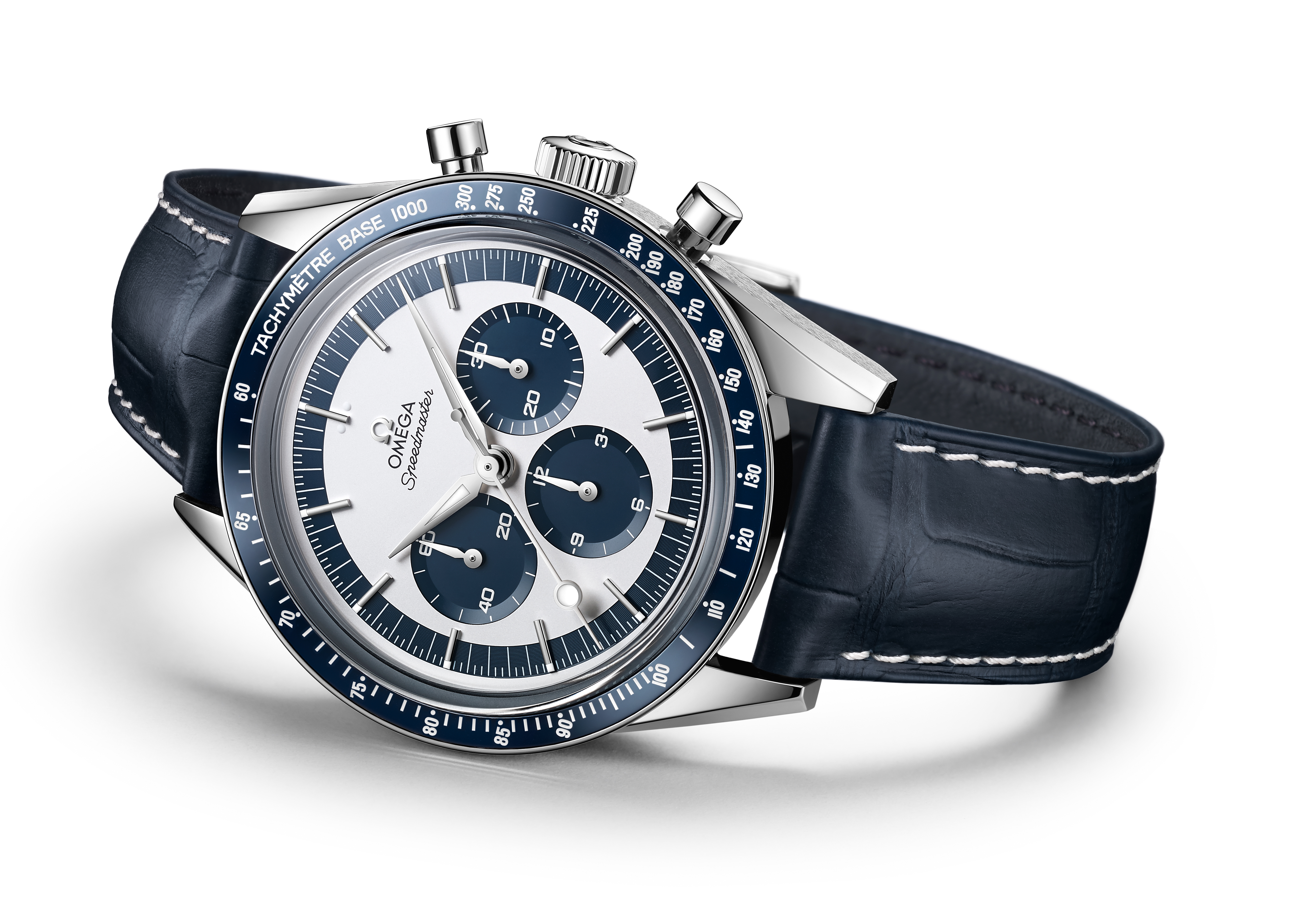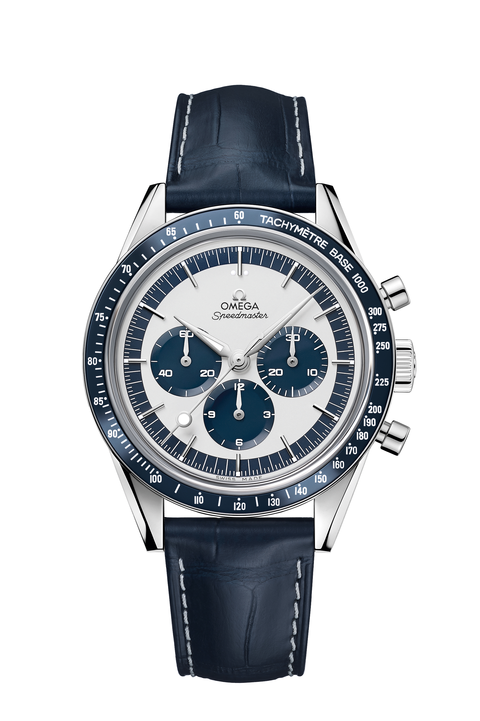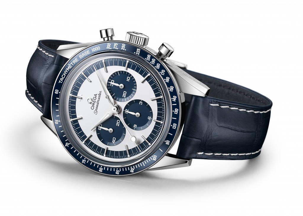 Le boîtier en acier inoxydable poli satiné arbore un cadran opalin argenté habillé de somptueuses aiguilles : les heures et les minutes sont indiquées à l’aide d’aiguilles Alpha rhodiées, présentes également sur les compteurs. Quant à l’aiguille des secondes du chronographe, OMEGA a remis à l’honneur le style « lollipop » cher au modèle d’origine.