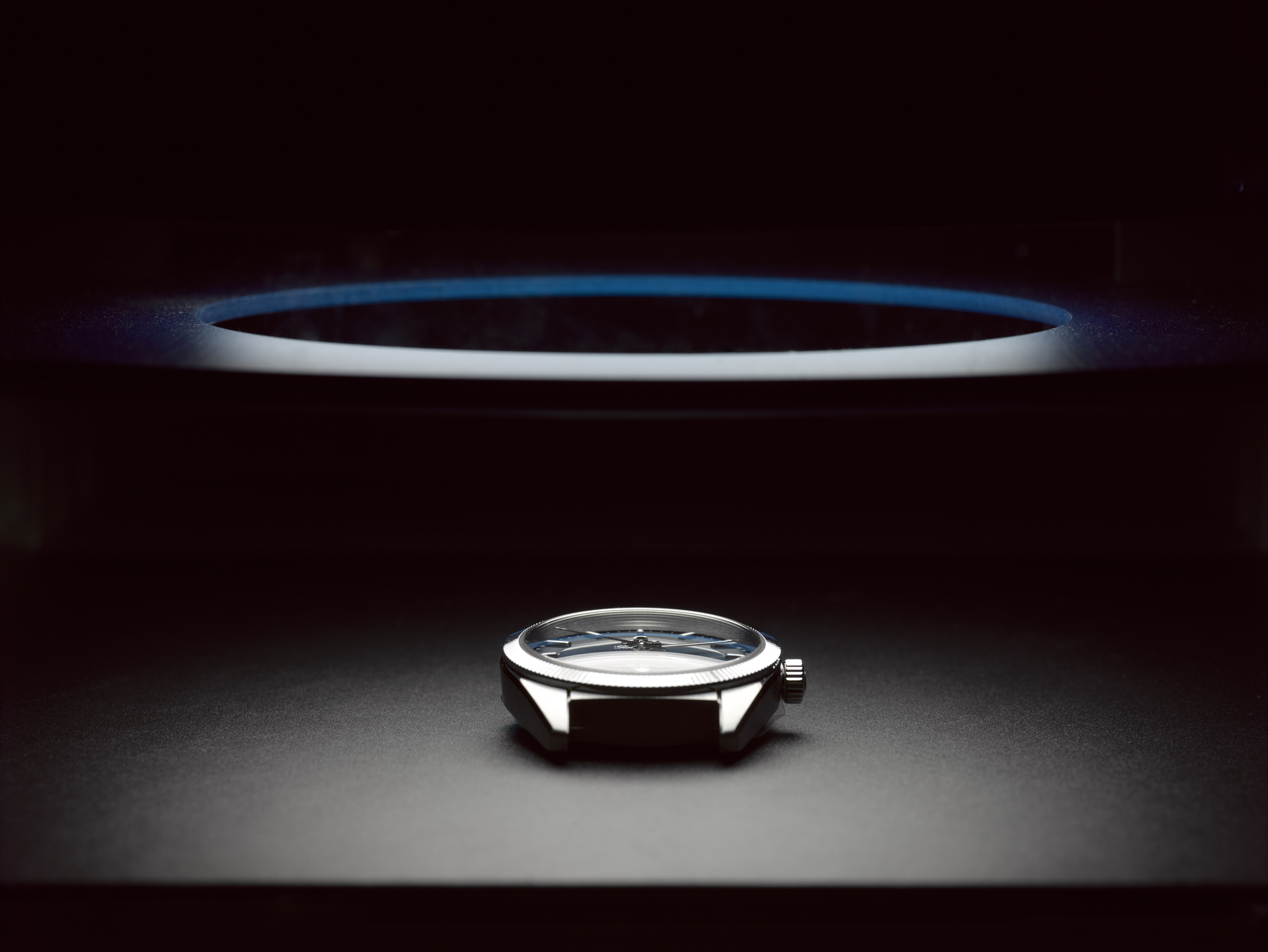 Les aiguilles polies des heures et des minutes sont bleuies, facettées, et revêtues de Super-Luminova, à l’instar des index. La lumière qui se réfléchit sur le cadran produit un effet visuel véritablement fascinant.