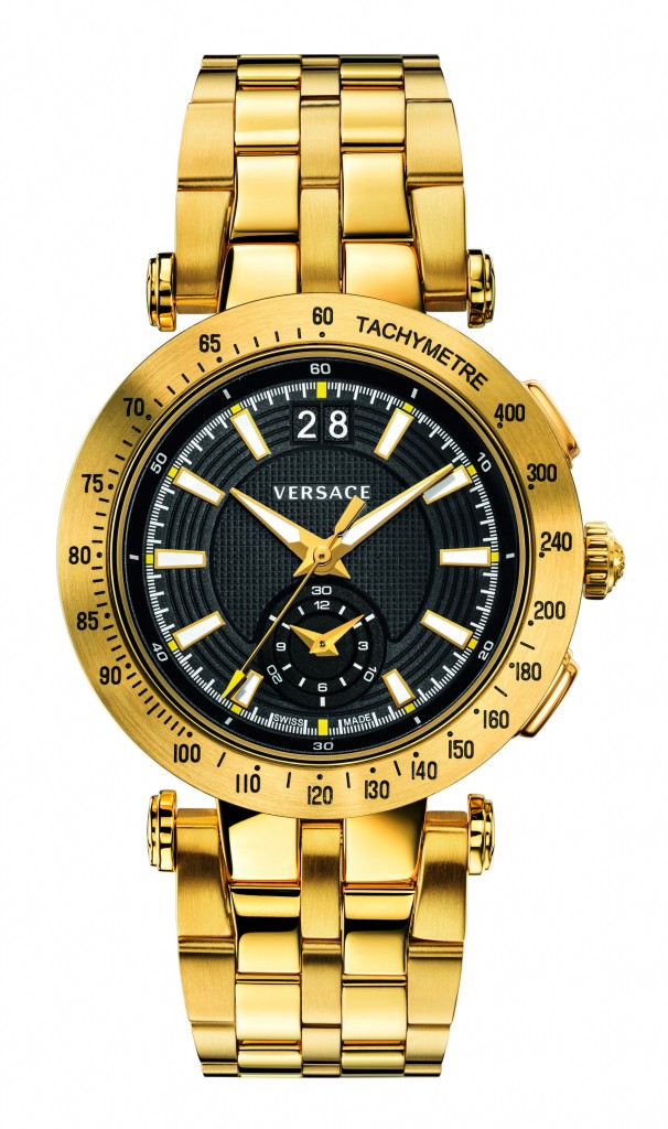 Cette montre chronographe à l’attitude et à l’énergie résolument Versace, combine un design contemporain au savoir-faire traditionnel de l’horlogerie.