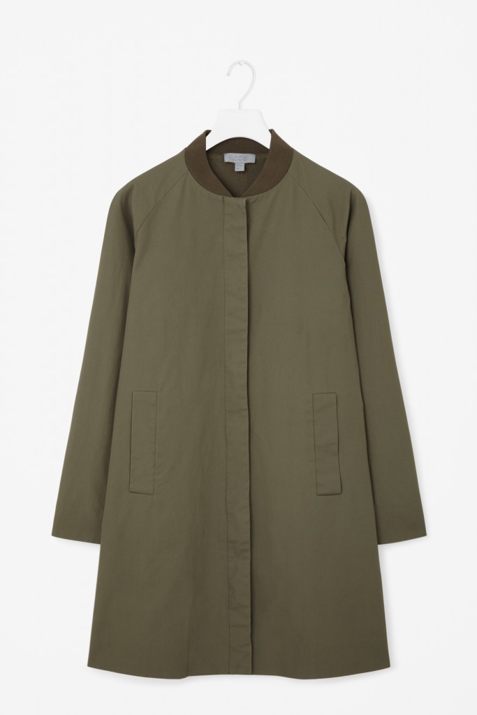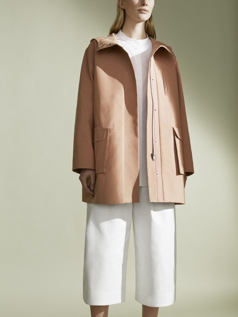 Avec sa sélection de par-dessus légers et frais, COS met l’accent sur les manteaux et vestes phares de la saison dans des tons de pêche, terra cotta, vert et marine.