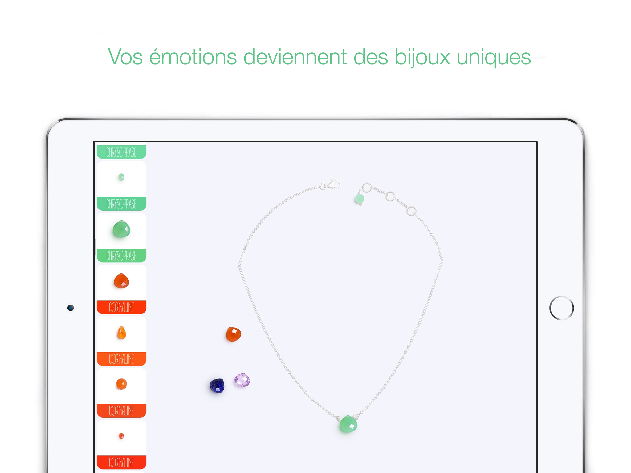 Coeur de Gemme, Vos émotions deviennent des bijoux uniques . Une application innovante et ludique de personnalisation de bijoux, disponible sur iPad.
