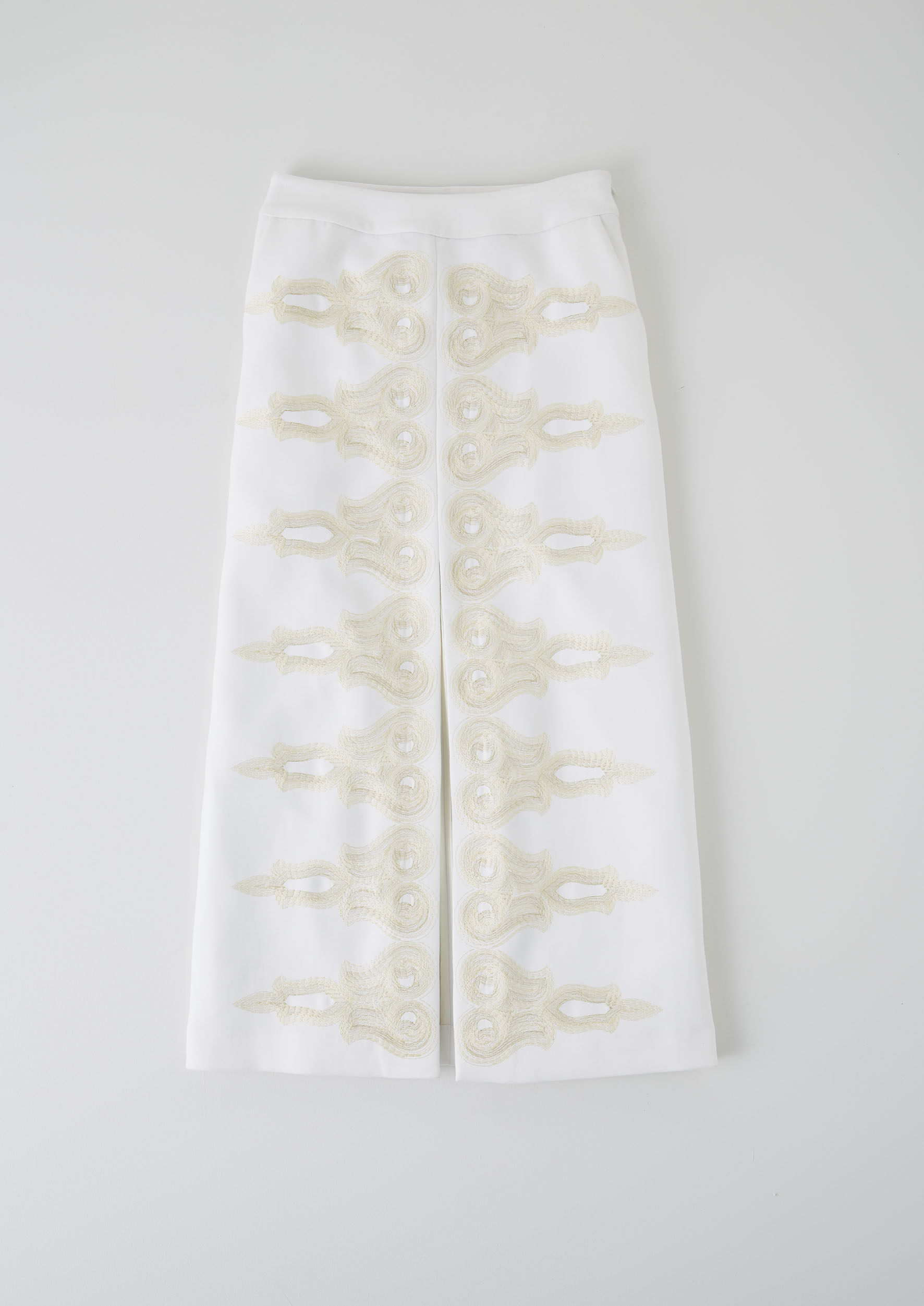 Une jupe blanche brodée de brandebourgs militaires, qui s’annonce comme le best seller de la collection capsule Boden Icons 2016. A shopper à partir du 11 avril 2016 sur le e-shop de la marque : http://www.boden.fr/
