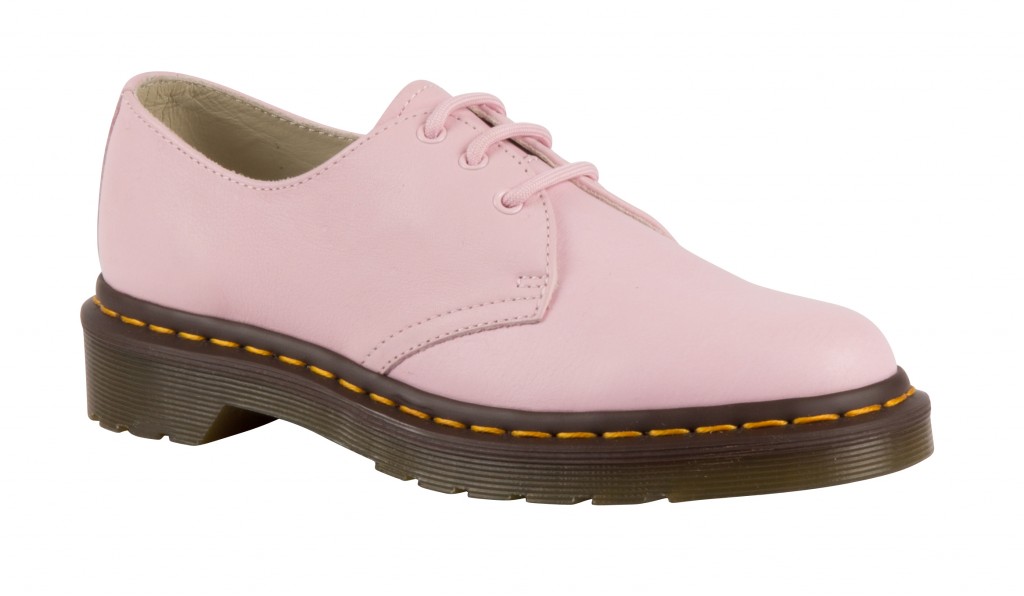 Cette saison, fouler le bitume dans ces chaussures rose pastel signée Dr. Marteens, pour une allure masculine féminine irrésistible.