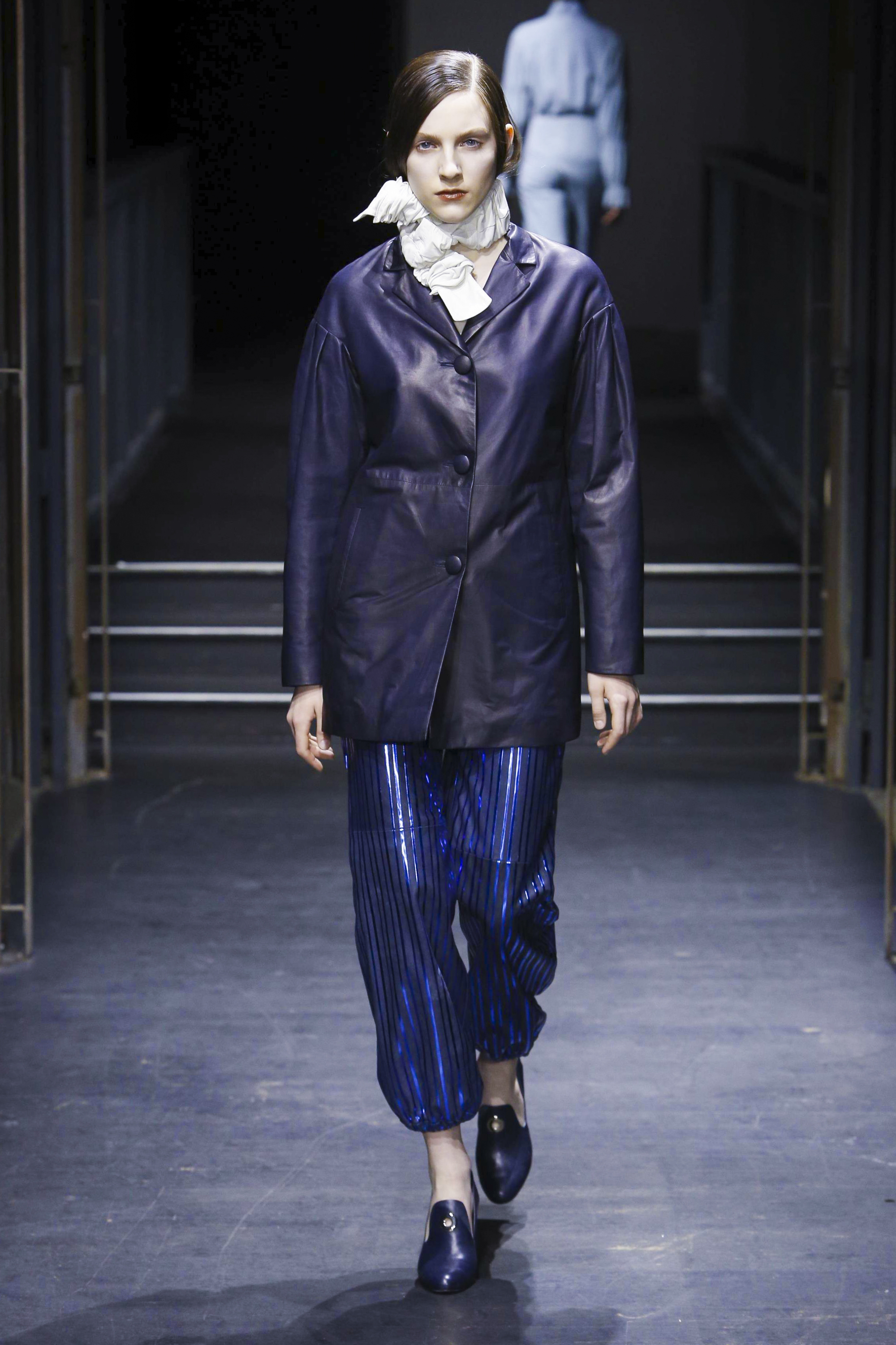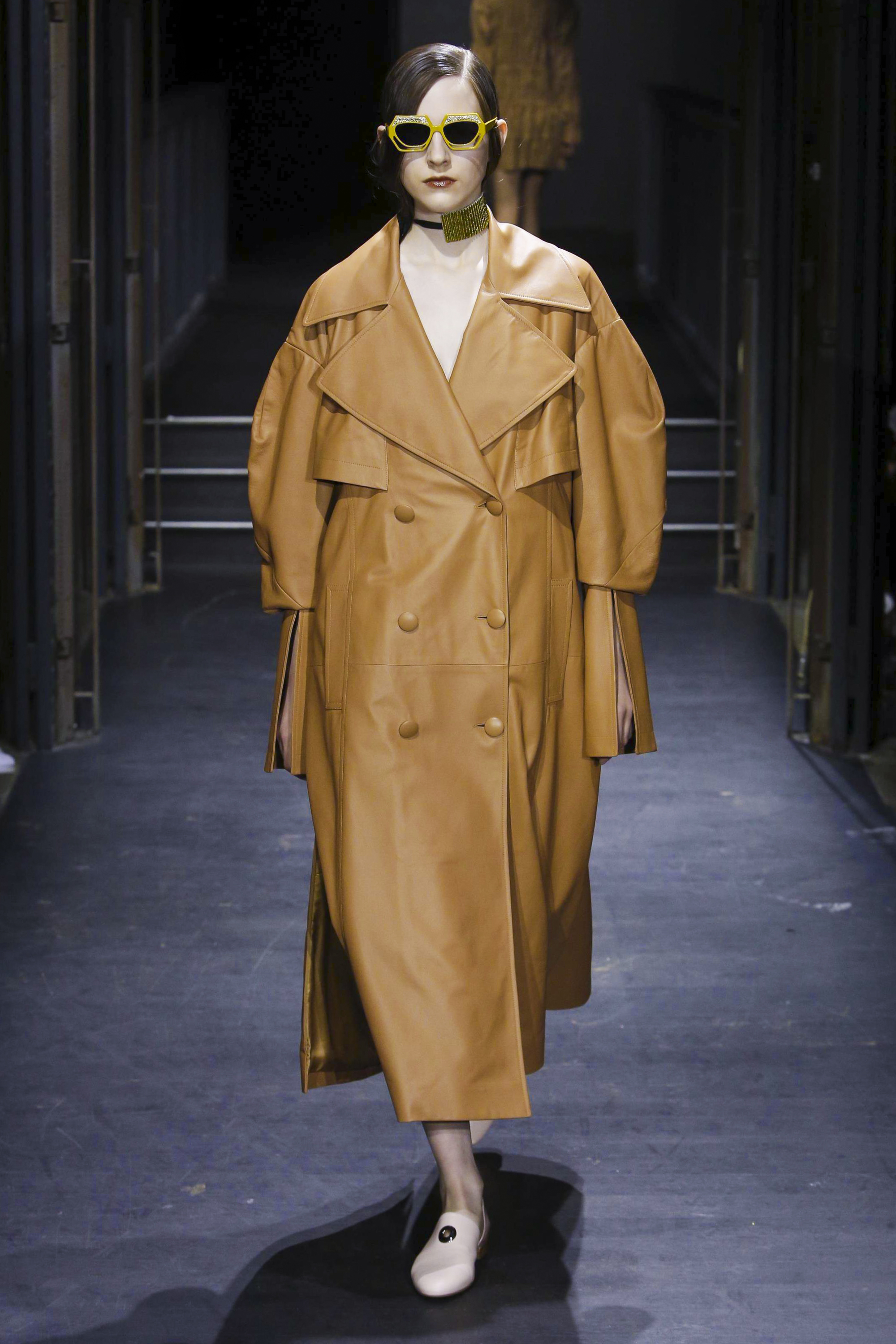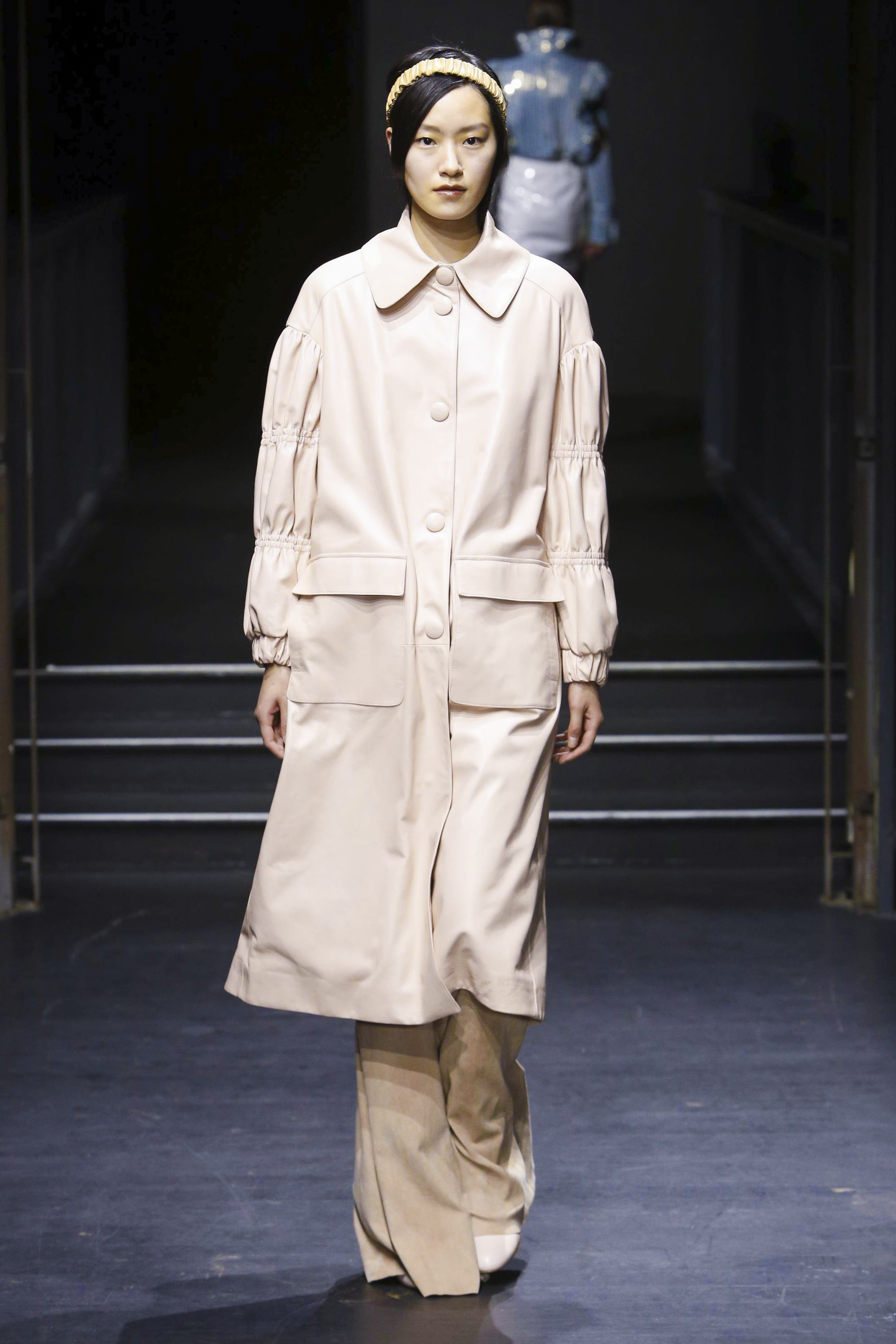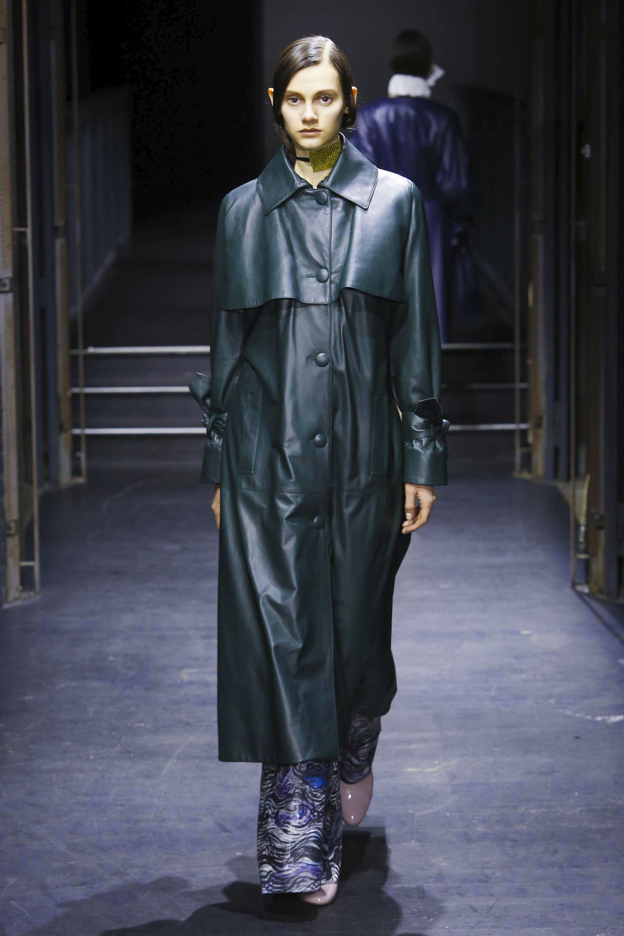 Les manches des trenchs font écho aux années 40 de par leur forme d’un style nouveau, elles deviennent ainsi plus féminines grâce aux surfaces plissées. Des épaules à effet tombant et des manches dotées de franges en cuir verni extrêmement longues caractérisent le nouveau bomber. Des cols resserrés, rappelant ceux des chemises des écolières, encadrent le visage. Cette rigueur crée un contraste fort avec les pantalons palazzo ou à pattes d’éléphant extra-larges.
