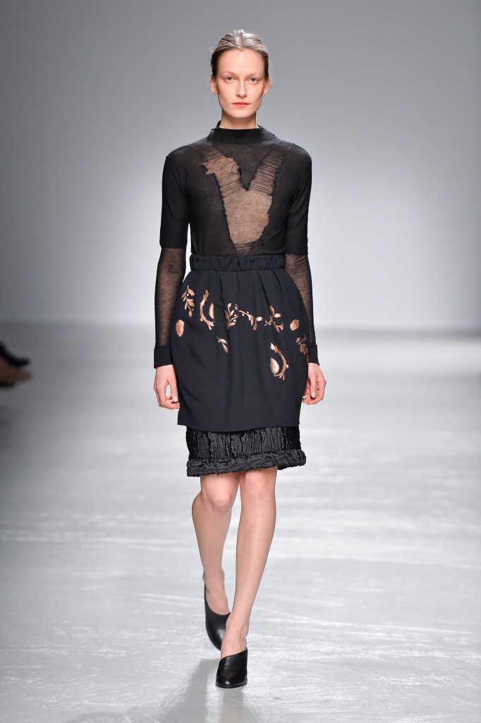 La collection est également marquée par un hommage aux peintres primitifs flamands ainsi qu’au travail de Hieronymus Bosch – particulièrement dans les broderies et les peintures organiques cuivres. Ainsi, la collection connecte la modernité des pièces à un sens de rareté et de précision d’un autre temps. De cette façon, elle célèbre une sensibilité luxueuse pré-technologie, fière de ses détails imperceptibles et de sa relation intangible à celle qui la porte.