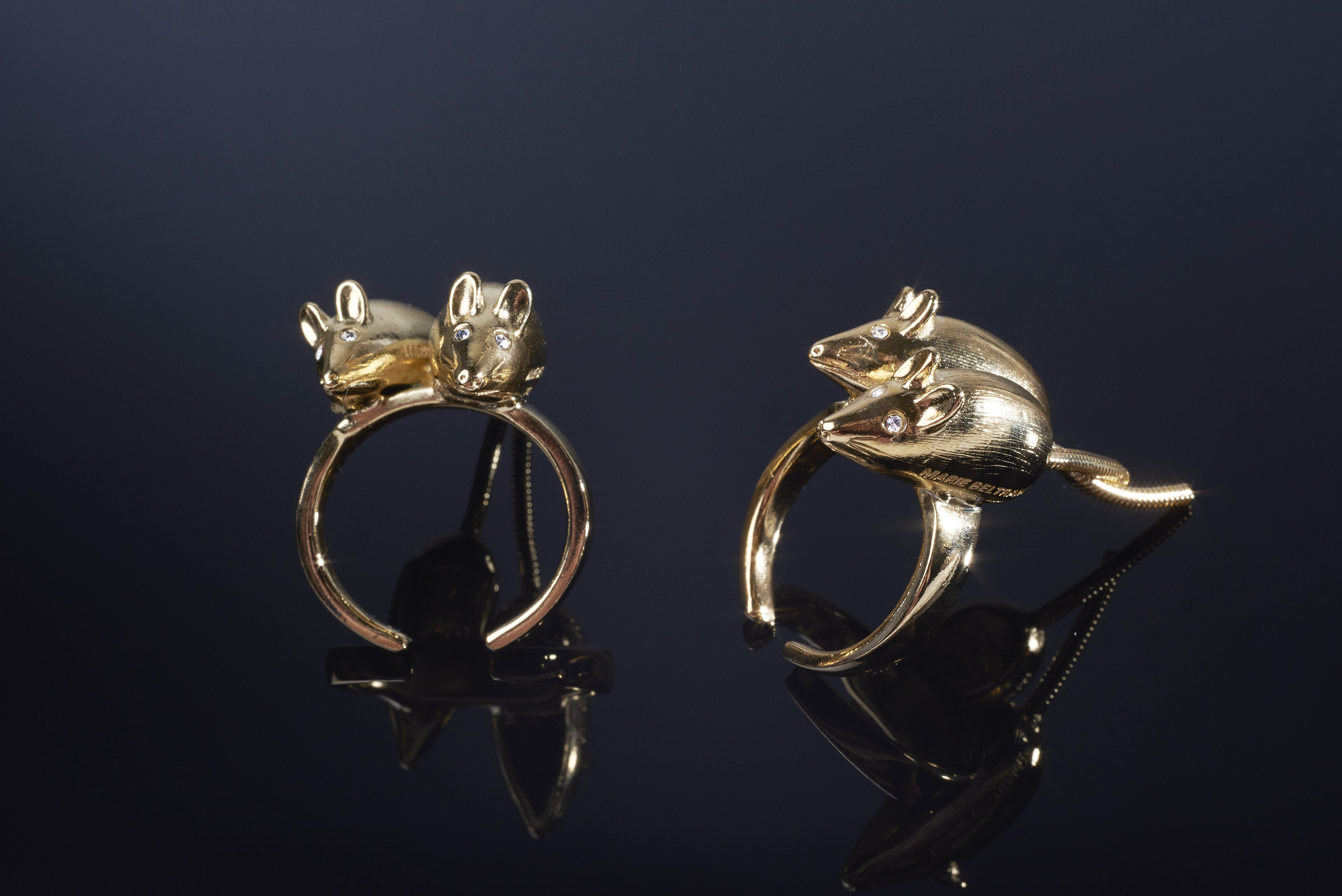 Marie Beltrami s’attache à nous plonger au coeur de son univers. « Les femmes sont des étoiles qui ne se tairont jamais », alors elle nous invite à accrocher la voie lactée à nos oreilles, comme une forme d’expression. Et la souris, animal totem de l’artiste, se retrouve sur des bagues et des bracelets, déjà cultes.