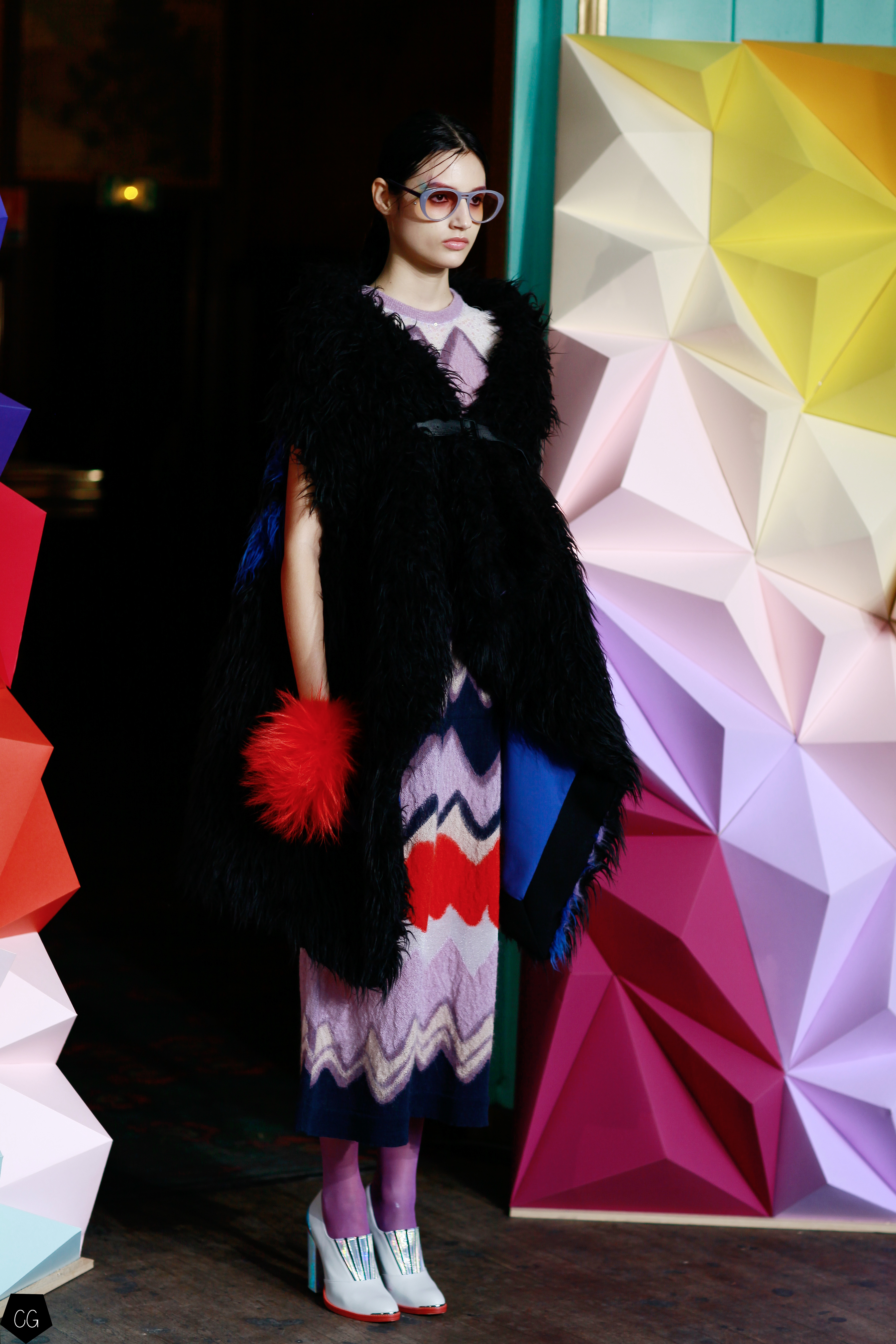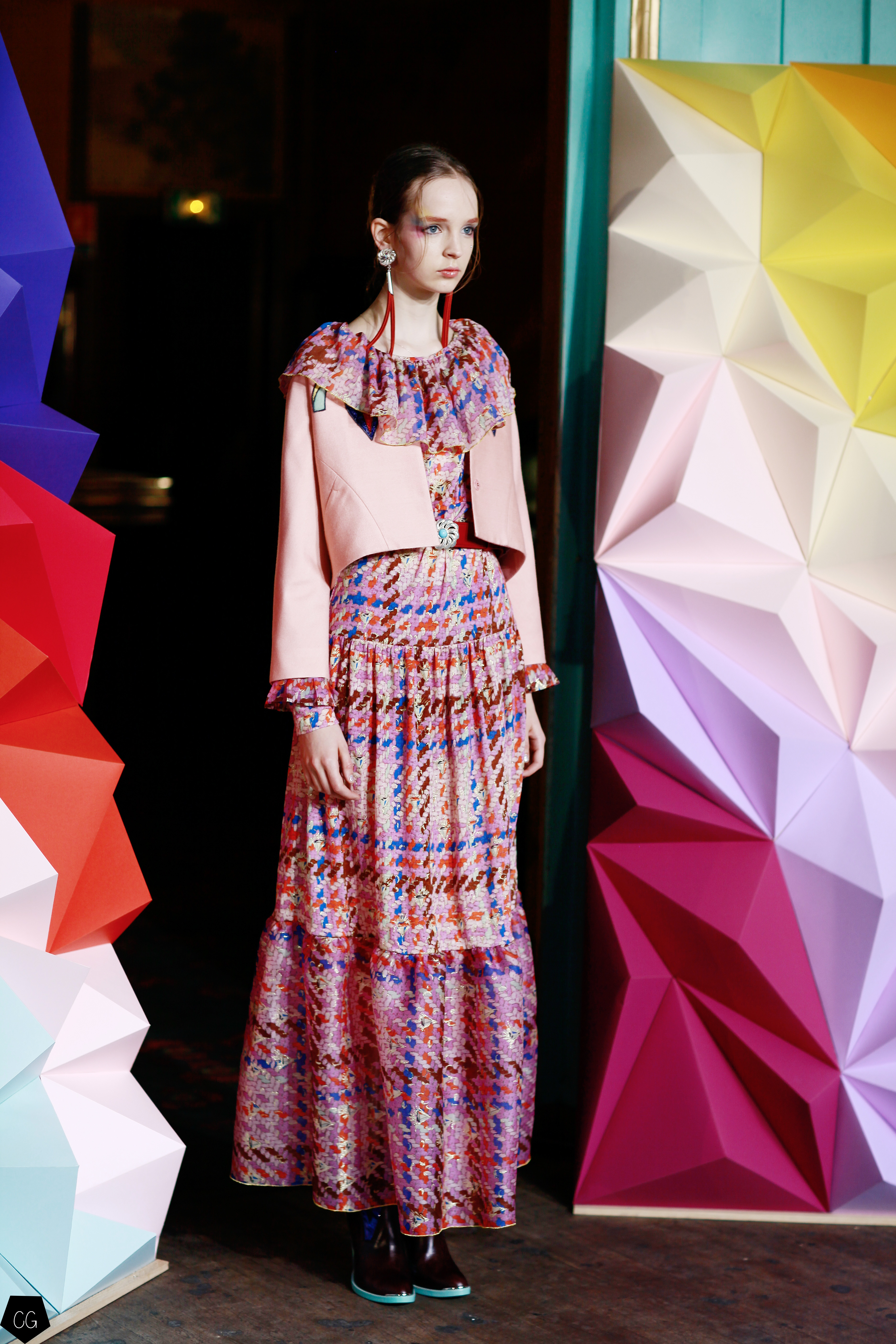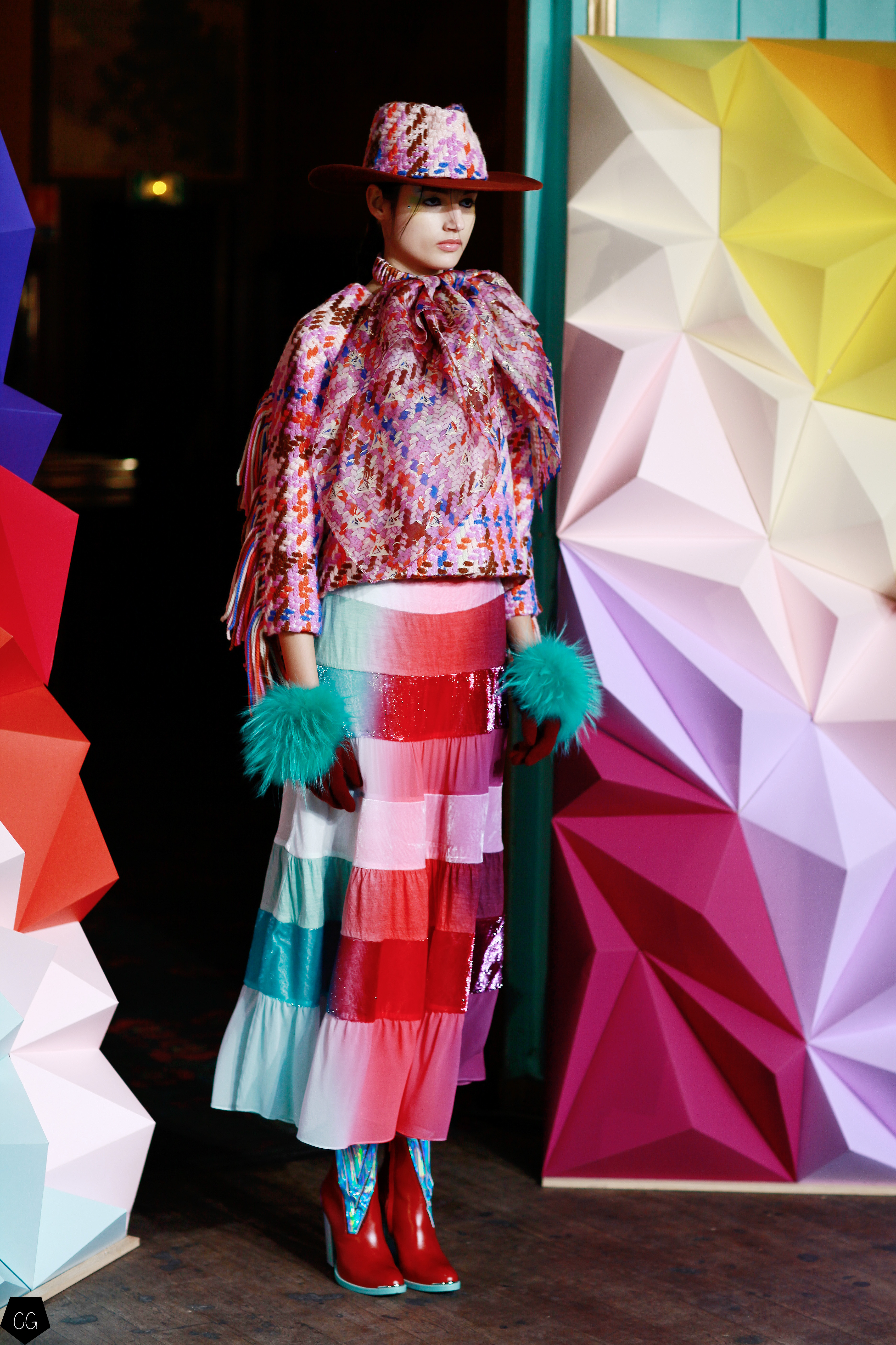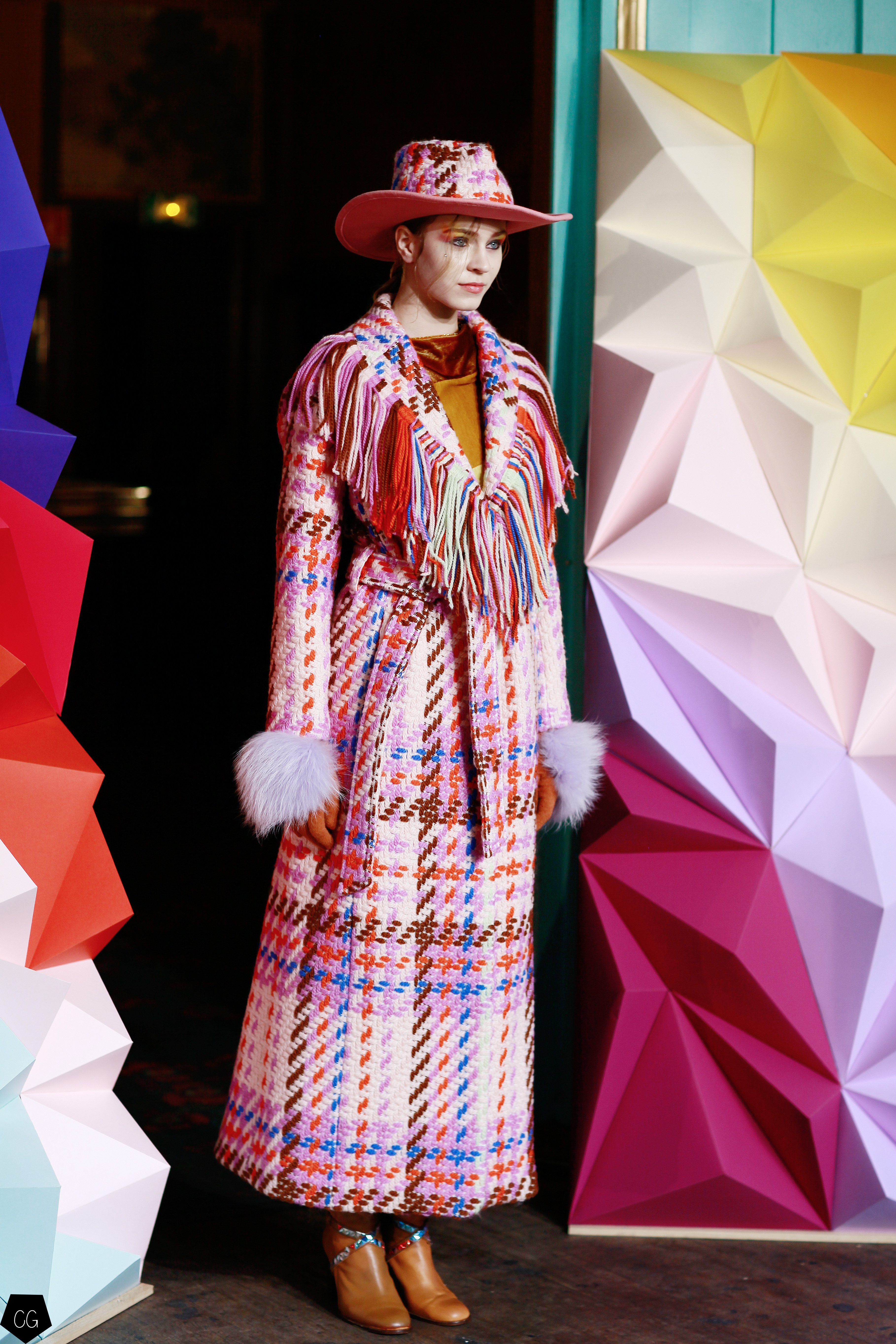 Enfin un tartan tsumoresque se décline en différentes matières pour orner des manteaux à franges ou encore une longue robe col à froufrous.