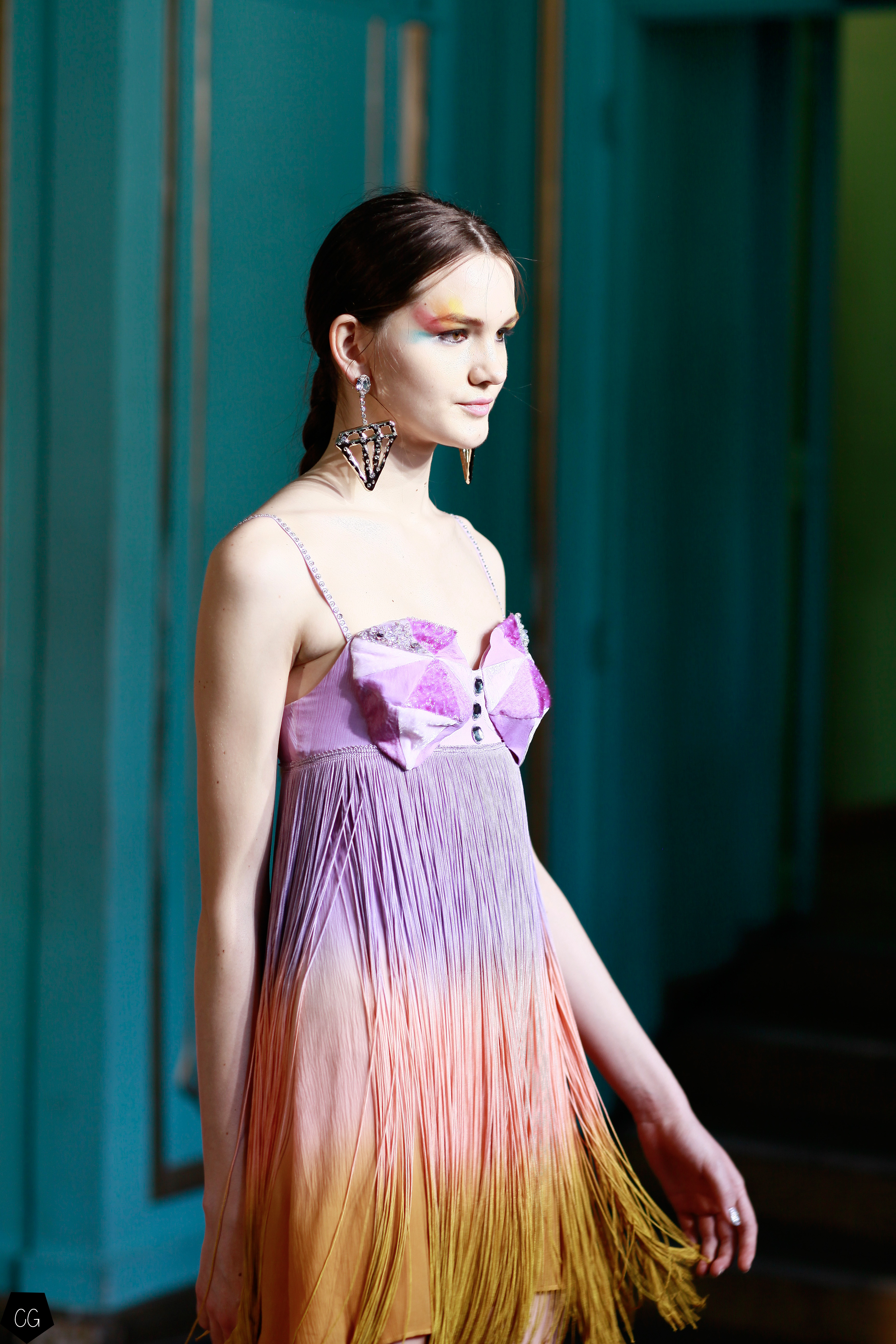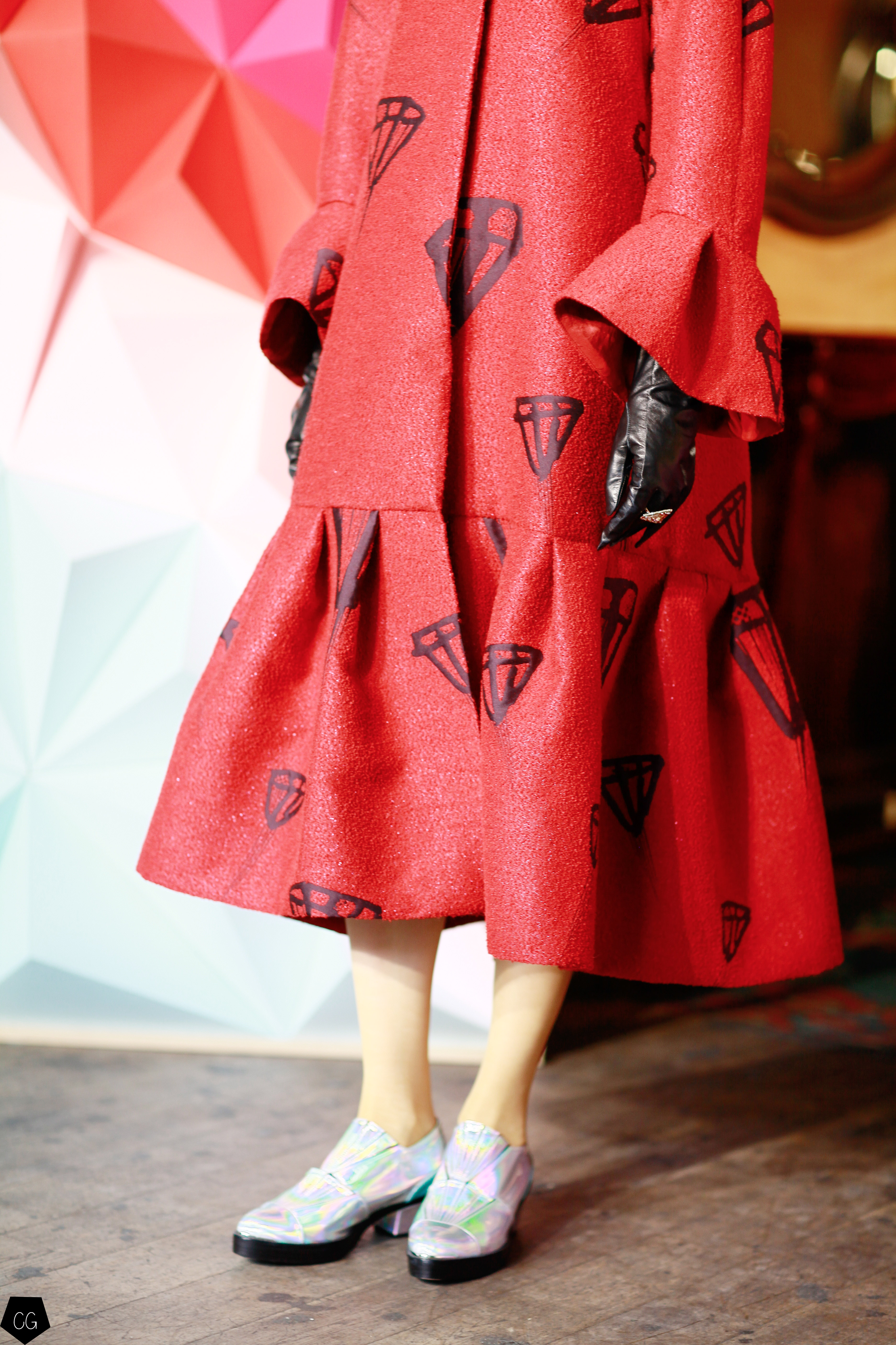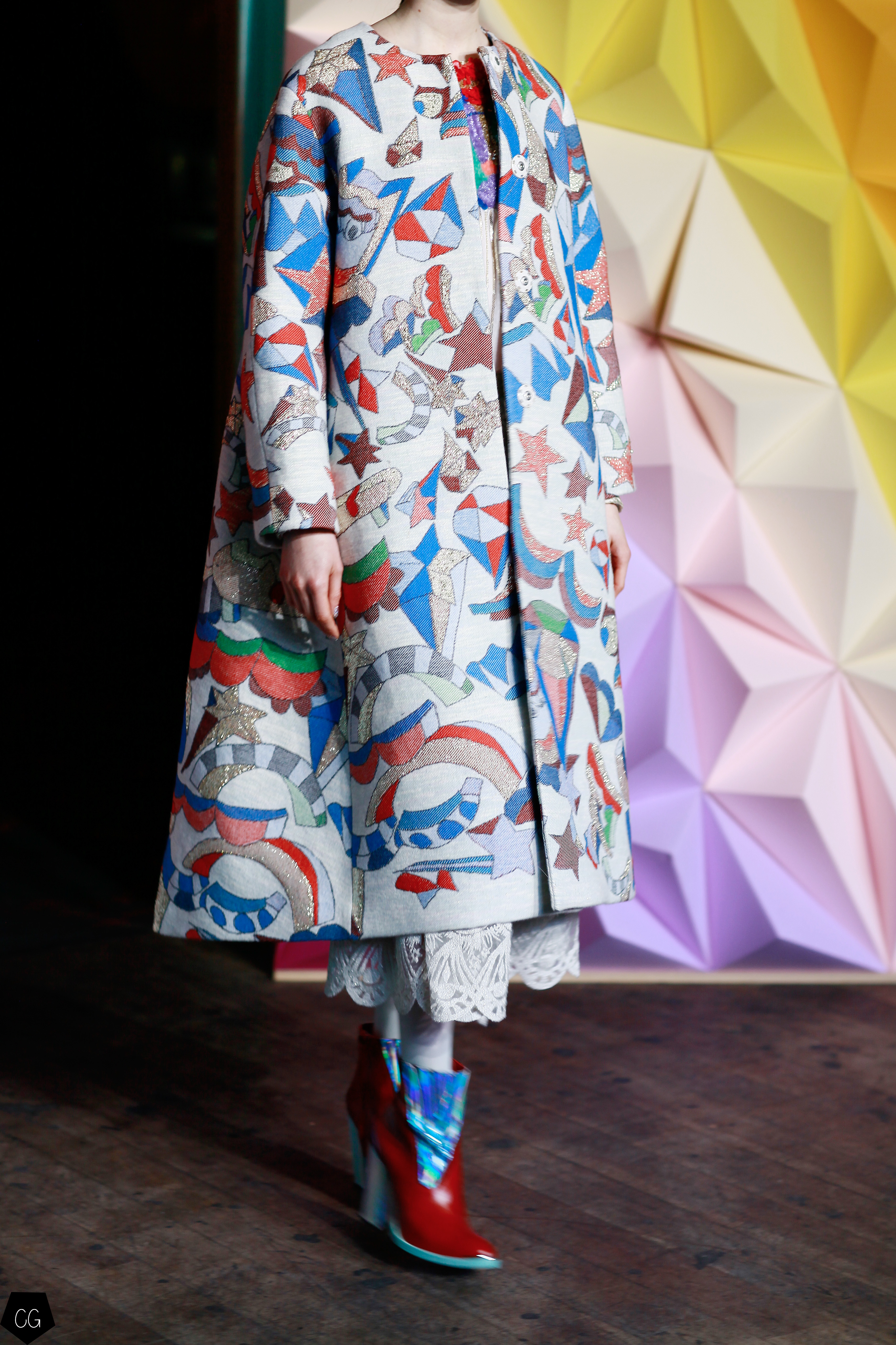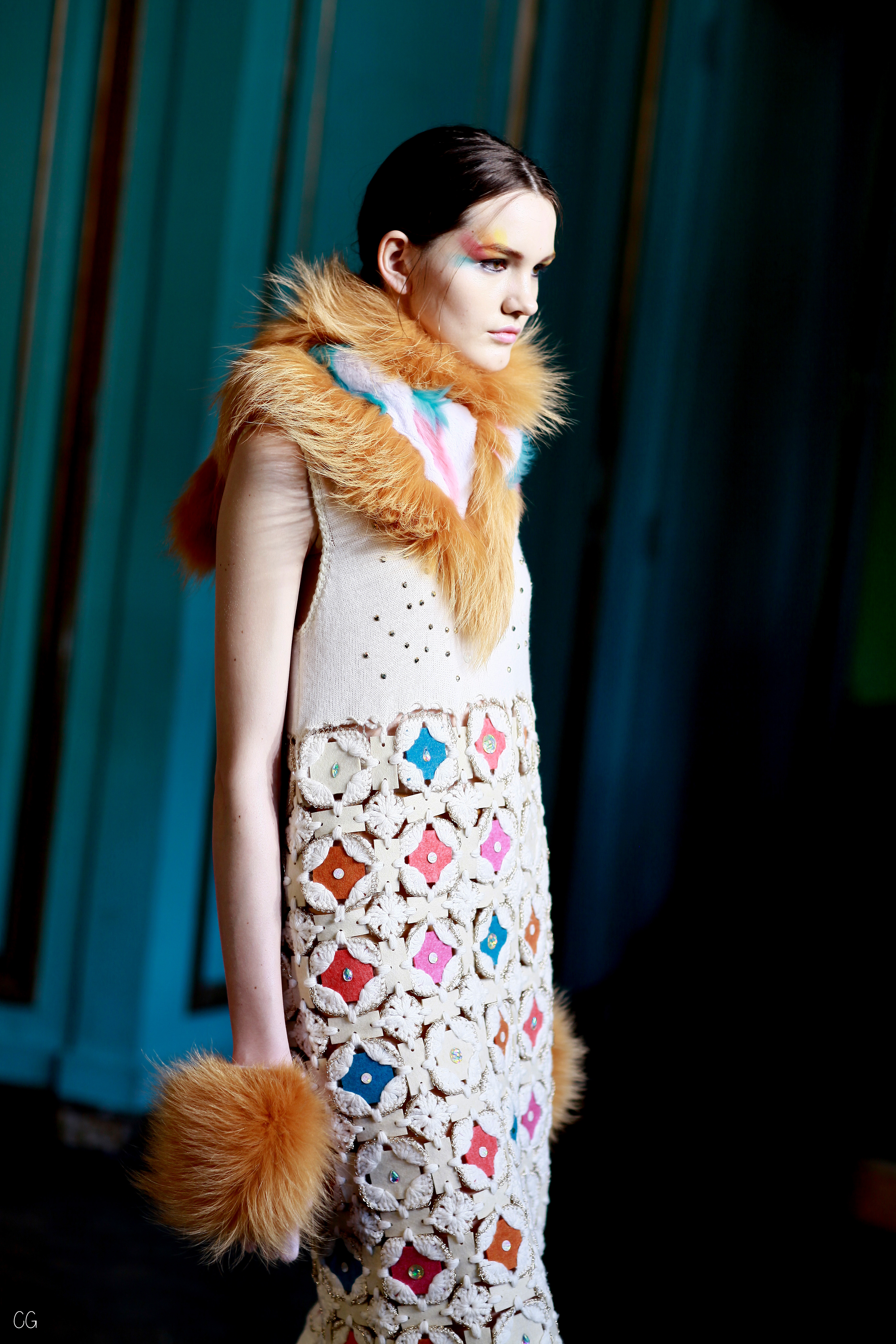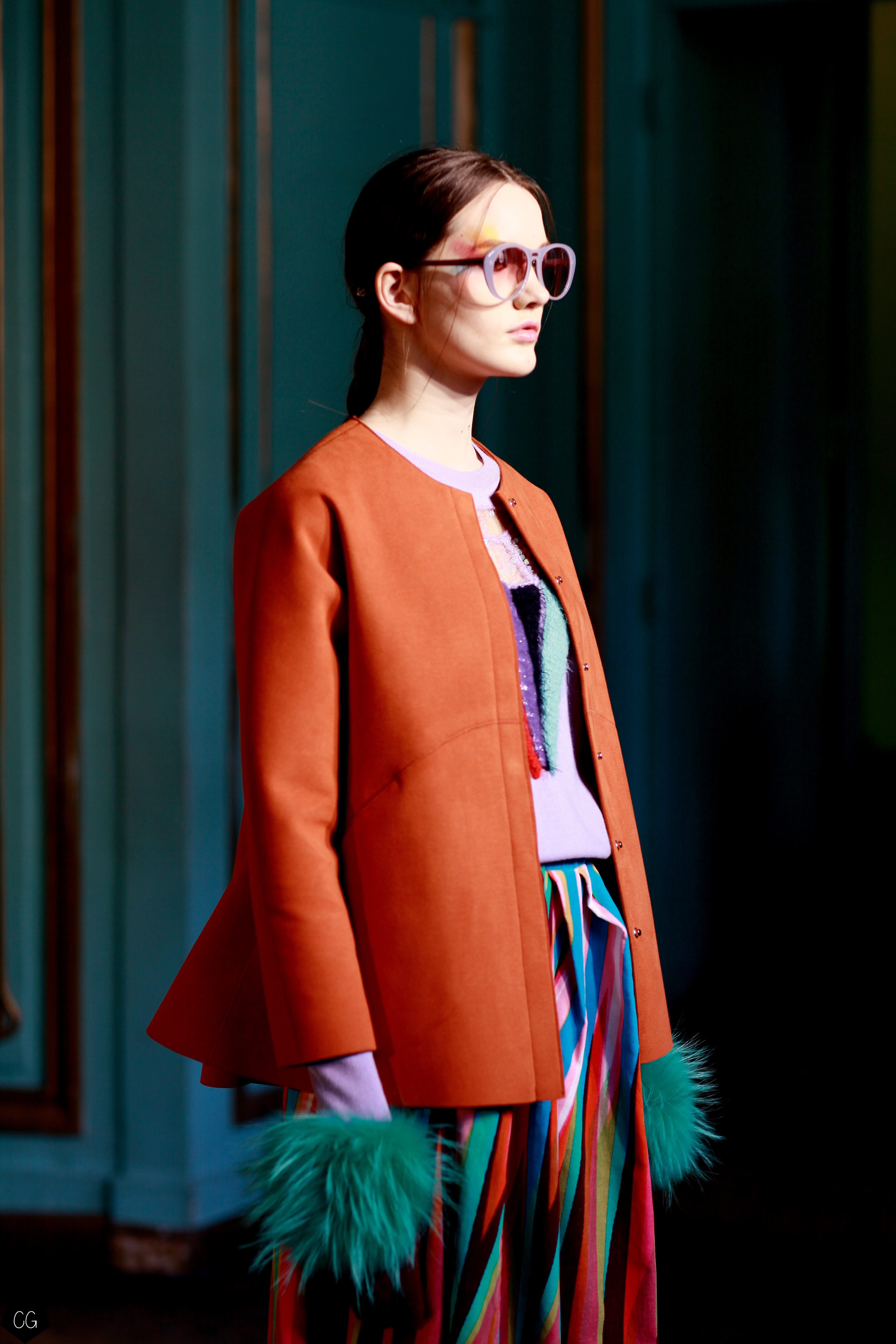 Enfin un tartan tsumoresque se décline en différentes matières pour orner des manteaux à franges ou encore une longue robe col à froufrous.