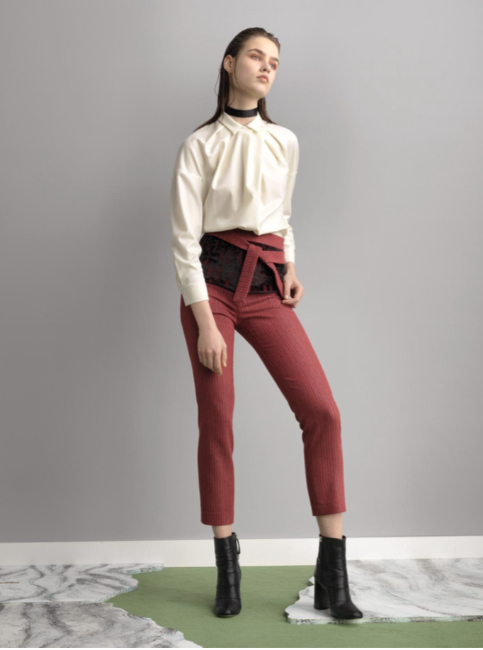La nouvelle collection Cacharel Automne Hiver 2016/2017 trouve son inspiration dans une féminité épurée des années 90, simple tout en demeurant forte et contemporaine. Un univers revenant à l’essence de Cacharel et de ses premières photographies, avec l’utilisation de couleurs automnales et chaudes comme éclairées à la bougie. La collection est extrêmement texturée et donne la part-belle aux matières haut de gamme ainsi qu’à de nombreux détails identitaires. Un accent est mis sur le drapé et le noué d’inspiration japonaise. Les imprimés sont maxis et travaillés de manière abstraite et graphique prenant pour inspiration l’expressionisme abstrait ou encore l’Arte Povera des années 60/70.