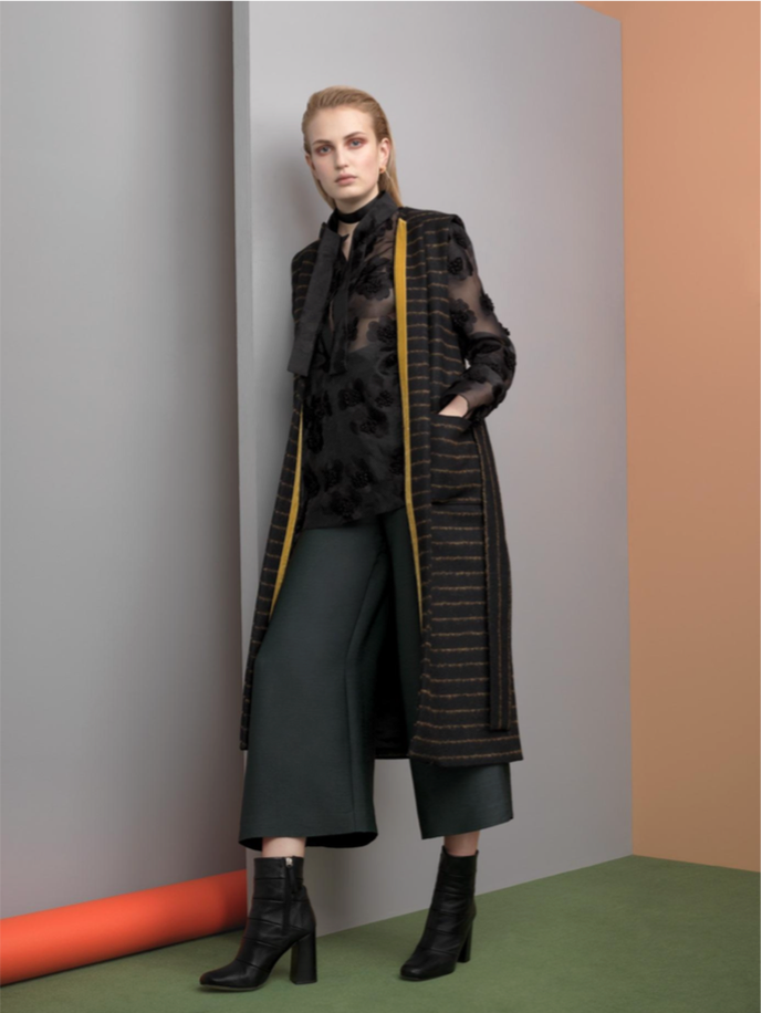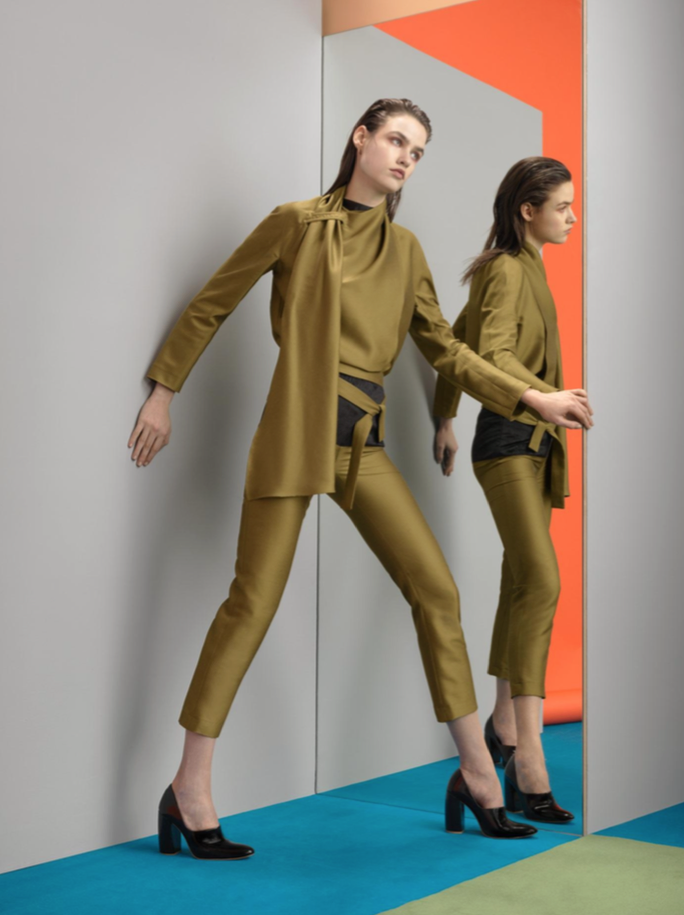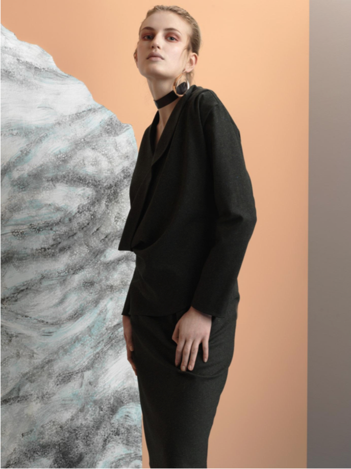 La nouvelle collection Cacharel Automne Hiver 2016/2017 trouve son inspiration dans une féminité épurée des années 90, simple tout en demeurant forte et contemporaine. Un univers revenant à l’essence de Cacharel et de ses premières photographies, avec l’utilisation de couleurs automnales et chaudes comme éclairées à la bougie. La collection est extrêmement texturée et donne la part-belle aux matières haut de gamme ainsi qu’à de nombreux détails identitaires. Un accent est mis sur le drapé et le noué d’inspiration japonaise. Les imprimés sont maxis et travaillés de manière abstraite et graphique prenant pour inspiration l’expressionisme abstrait ou encore l’Arte Povera des années 60/70.