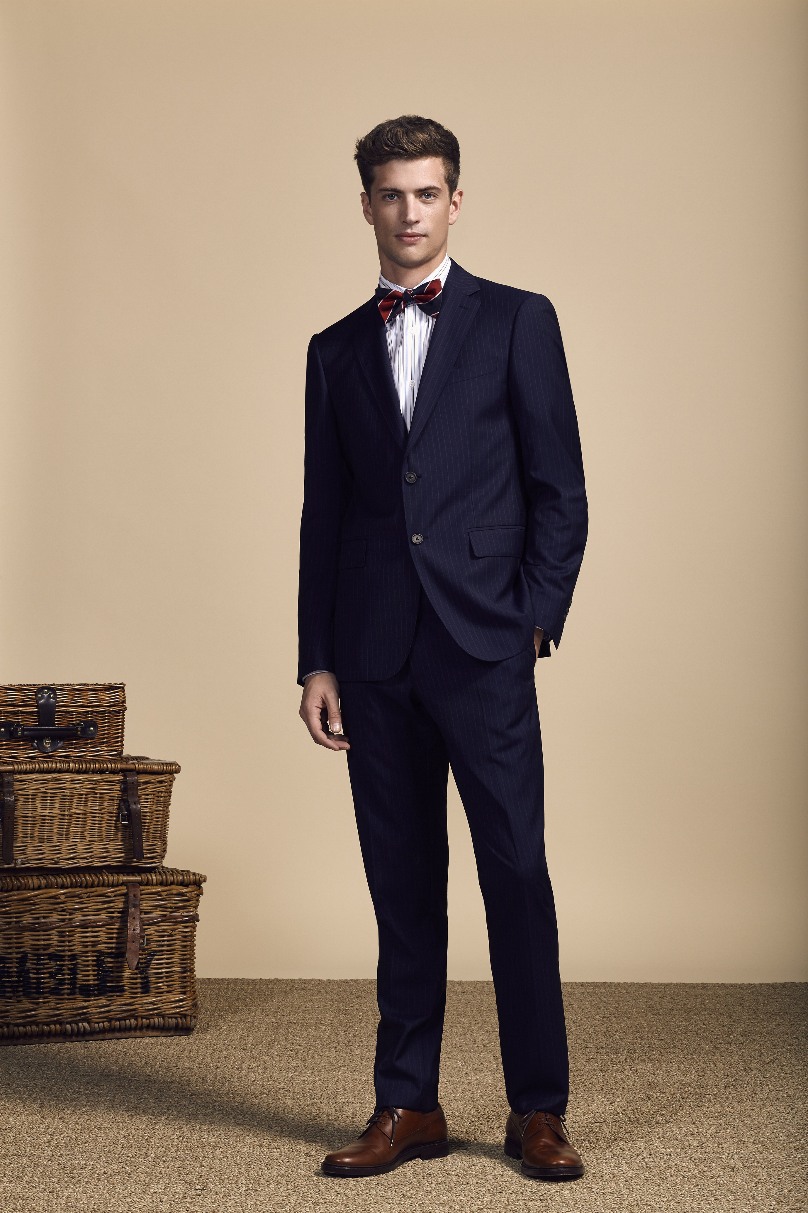 - COM 2015 : Look-book Homme Printemps-Eté 2016 – Look 18 – Chemise bleu ciel en coton, costume en laine marine plus nœud papillon. Eden Park Spring-Summer 2016 Mens look-book – Look 18 – skye blue cotton shirt, navy blue wool suit with a bow tie.