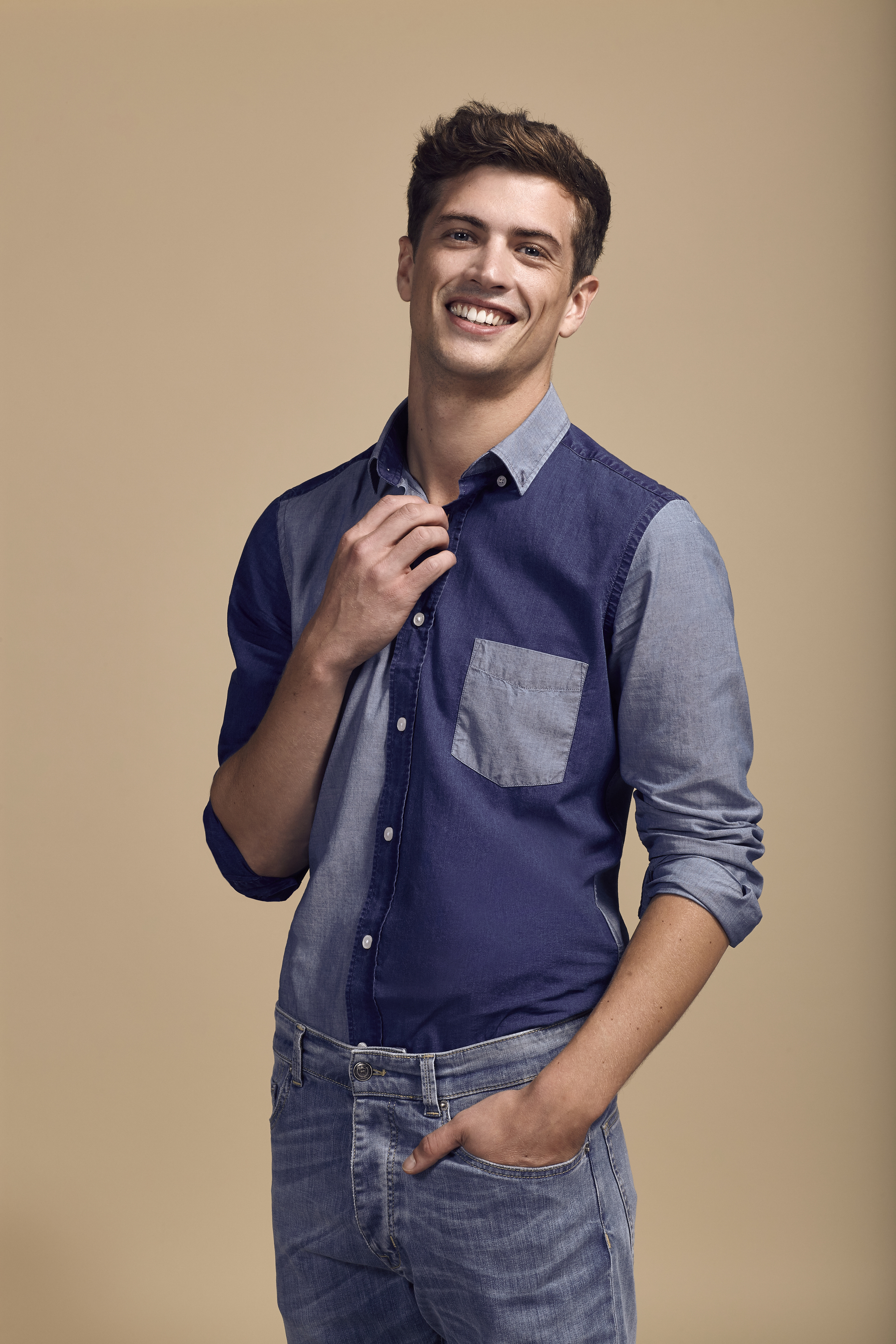 - COM 2015 : Look-book Homme Printemps-Eté 2016 – Look 6 – chemise en jean sur jean regular bleu délévé en coton. Eden Park Spring-Summer 2016 Mens look-book – Look 6 – denim shirt on prewashed regular fit cotton jeans.