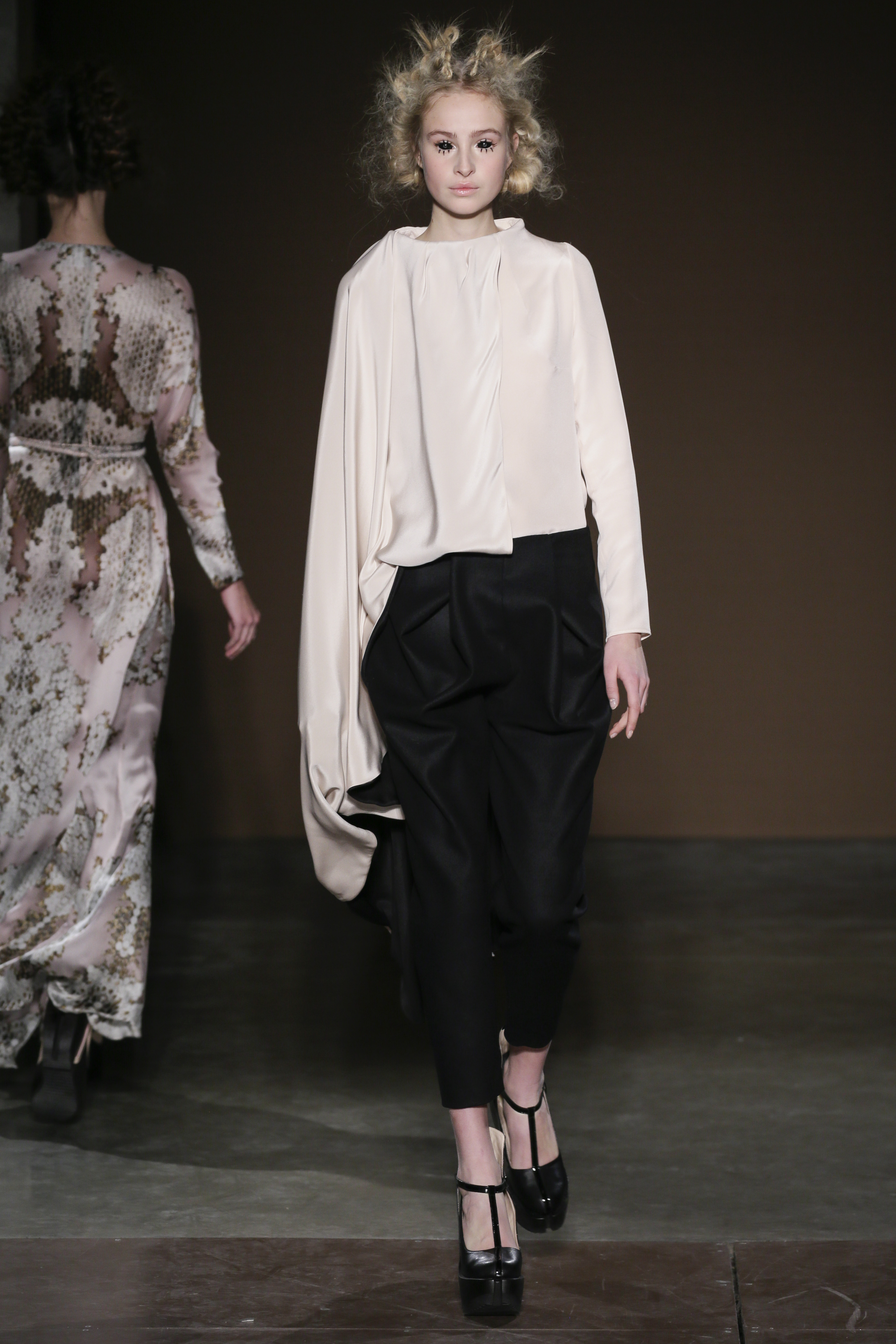 Dorhout Mees présentait à Paris pour la première fois sa collection de Prêt à Porter Automne Hiver 2016-2017. Une collection poétique, artistique s’inspirant du vol des oiseaux et de leur chorégraphie. Côté matières la maille est mélangée à la laine mais aussi au cuir. Toute la collection est souplesse et finesse.