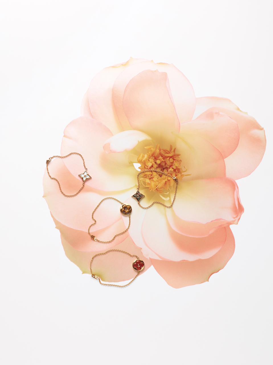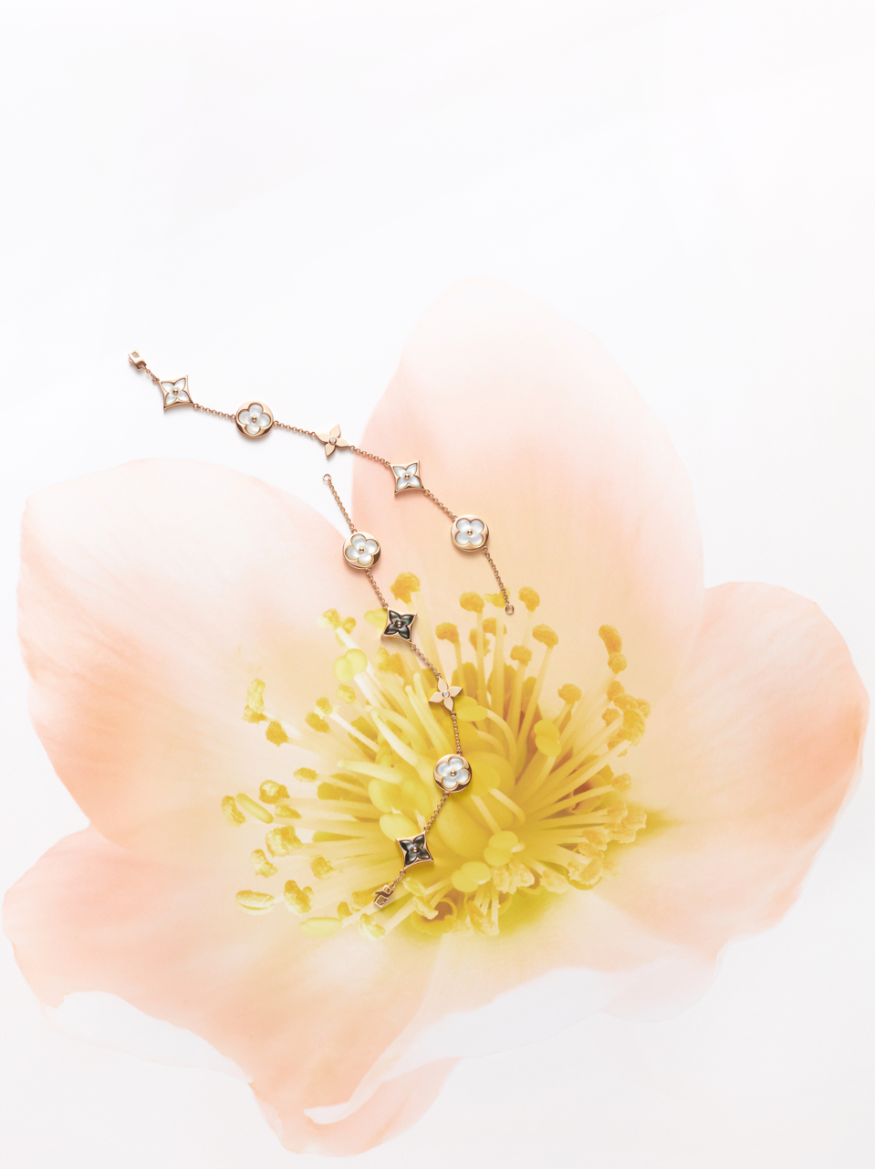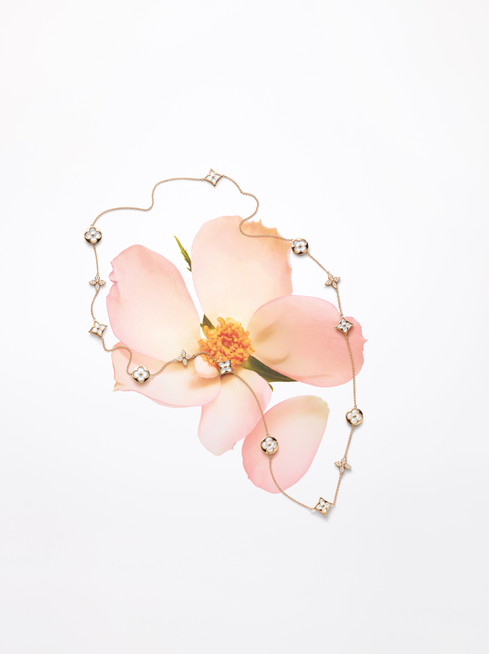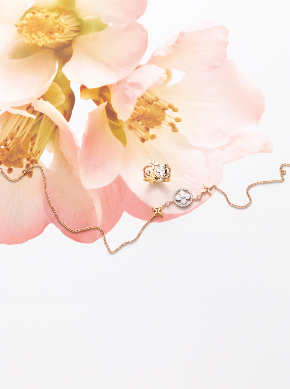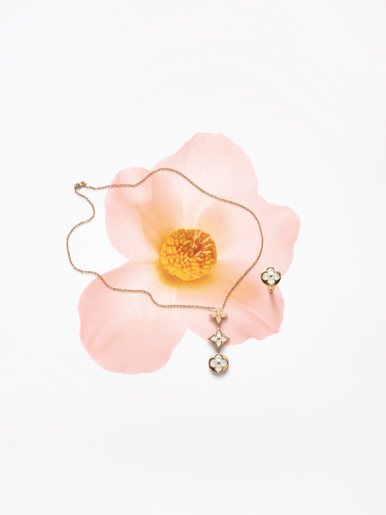 Les Fleurs de Monogram, symboles de la Maison, entrent dans une nouvelle ère pleine de fraîcheur avec l’éclosion d’une double collection : une ligne de joaillerie et de montres précieuses. Point d’orgue de chacune, des fleurs sculptées en nacre ou en pierre dure pour évoquer une féminine délicatesse, sublimée par le savoir-faire Louis Vuitton.