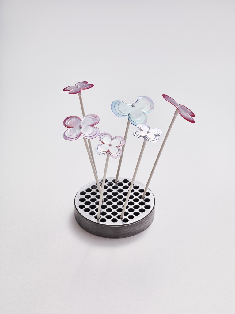 Teintée de rose ou bleu, la Fleur de Monogram au centre du cadran des montres Blossom est un nouvel exemple du savoir-faire de la Fabrique du Temps Louis Vuitton. Chaque fleur est ainsi sculptée en trois dimensions à partir d’une pièce de nacre pleine, les détails et les formes apparaissant à chaque mouvement de la main, inspirée de la technique du camée. Les tons de bleu ou de rose sont ensuite appliqués au dos de la pièce, toujours à la main, pour obtenir un effet gradué tout en nuances : finesse et délicatesse absolue d’un travail artisanal qui permet de concevoir des cadrans toujours plus exceptionnels. Si la fleur en nacre colorée orne le cadran de chaque montre, elle est aussi entourée de diamants, du modèle en acier avec lunette et index sertis à une version en or rose dont le cadran est entièrement serti neige. Boîtiers et couronnes s’ornent aussi de diamants sur les Tambour Spin Time et Tambour Monogram Tourbillon.