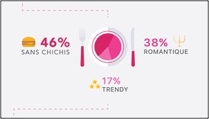 Quand vient le moment de choisir entre l’italien du coin de la rue ou la cuisine « hype fusion éthiopien from Brooklyn » les célibataires se positionnent bien plus sur les valeurs sûres, et surtout sans chi-chi. Alors que 46% préfèrent un bon hamburger sans prétention, 17% se la jouent branchouille dans l’espoir dimpressioner sa target ! Le diner romantique n’est cependant pas laissé pour compte : la galenterie à la française est toujours en vogue, 38 % des sondés pratiquent toujours le dîner aux chandelles.