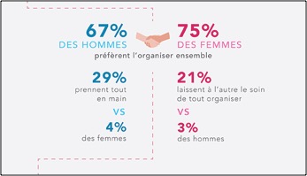 Les hommes prennent les commandes quand il s’agit de rendez-vous amoureux ! Plus d’un tiers des hommes interrogés veulent faire leur preuve et prennent toute l’organisation du dîner en main contre seulement 21 % de la gente féminine interrogée. Etre d’accord sur l’organisation est déjà une première preuve d’entente puisque 75% des femmes et 67 % des hommes préfèrent organiser leur premier RDV ensemble.