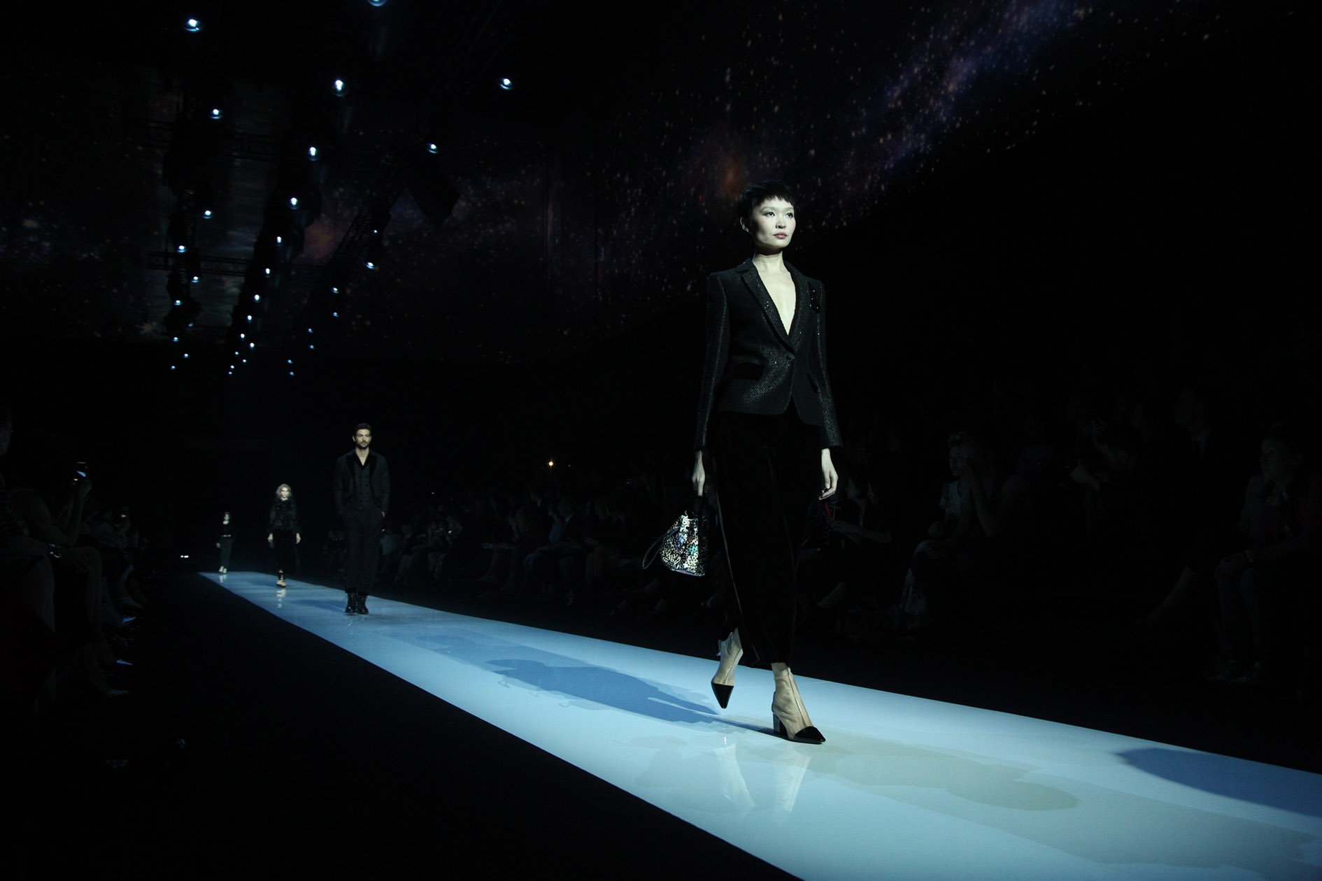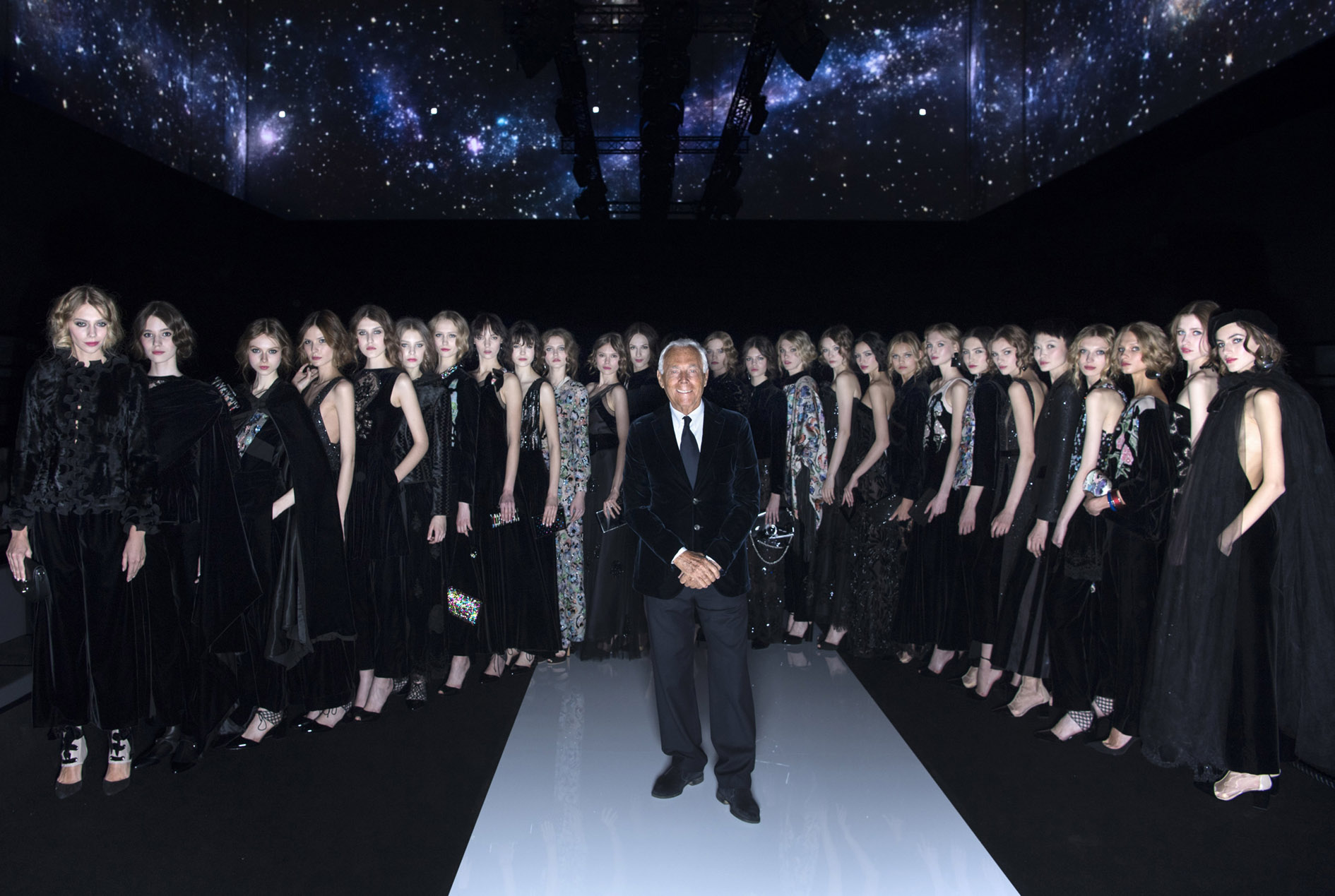 Jeudi 14 Avril, le créateur présentait ses collections Giorgio Armani Homme et Femme Automne/Hiver 2016-2017 à Tesla 4000, devant 480 invités, parmi lesquels de nombreuses célébrités, socialites, dignitaires et journalistes. Le défilé fut suivi d’une after-party.