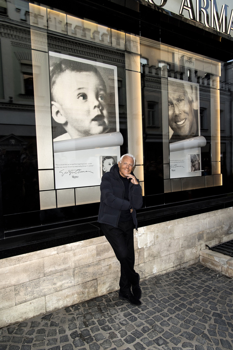 Le premier évènement se tenait le Mercredi 13 Avril à la boutique Giorgio Armani de Tretyakovsky Proezd. Ouverte en Mars 2015 et d’une surface totale de 500 mètres carrés répartis sur trois étages, le designer y tenait une séance de dédicace pour son livre, Giorgio Armani.