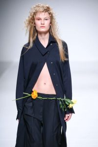 Enfin, Vanessa Tao, pour cette nouvelle collection s’est inspirée des mouvements des vents du port de Hong Kong, dans une atmosphère très poétique, elle nous fait partager des silhouettes énergisantes et capturant la lumière dans des vêtements faciles à porter. Les tenues sont riches de détails soigneusement réfléchis, comme pour les couleurs, qui seront les chefs d’orchestres de la réalisation des silhouettes. Vanessa Tao combine à la fois des formes vintages et des tissus contemporains, la femme selon elle doit se sentir vivante, fraîche, jeune et bien dans son corps.