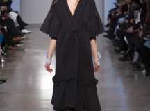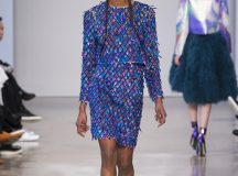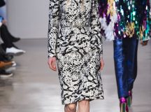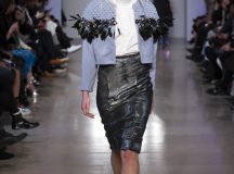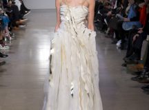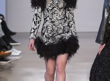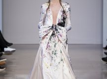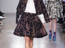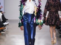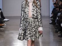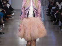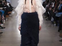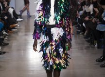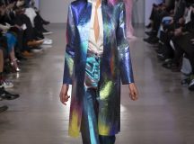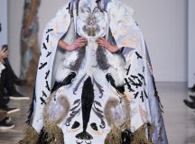 Derrière les silhouettes se cache un savoir-faire et des matières luxueuses comme le jacquard, le tweed et les plumes d’autruches. Des éléments qui ne sont pas sans rappeler le costume de théâtre. D’ailleurs, le show est un spectacle, qui prend vie dans les smokings iridescents, les vestes confettis et les jupes oversizes façons plumages. Une collection, qui célèbre la magie des mythologies du Nord, singulière et belle comme une aurore boréale.