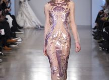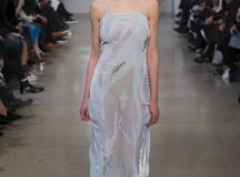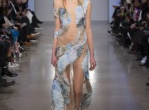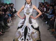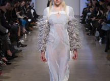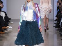 Les choses ne se font pas à moitié chez Sorapol. Pour l’hiver 2016, la marque est partie du côté de l’arctique et des aurores boréales. Les vêtements sont tout droit sortis d’un arc-en-ciel électrique, quand ils ne sont pas inspirés des légendes inuits. La femme Sorapol est une déesse du Grand Nord qui se promène dans des robes en soie toutes en transparence, des enchevêtrements de plumes et de perles, ou dans de grandes fourrures.