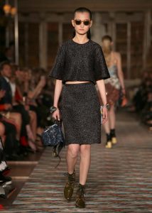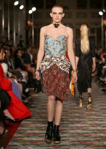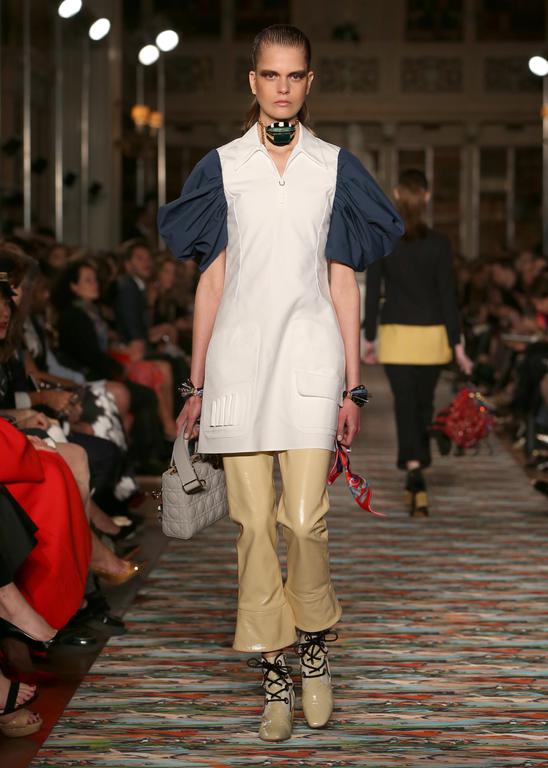 Les grands classiques de Dior sont revisités dans cette collection, on y retrouve l’inspiration du « Tailleur Bar » des années 50 avec de longues basques qui deviennent des mini-jupes, combinées sur un pantalon ou bien une robe portée sur un pantalon ample, superpositions de longueurs et de formes, manches volumineuses, imprimés floraux aux couleurs vives, rajouts de nombreuses poches, le petit foulard est noué aux poignets ou bien sert d’attache pour fermer une veste .