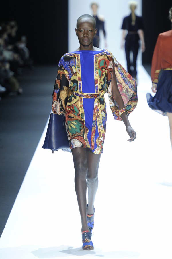 La soie, matière favorite du créateur, est ici un hommage touchant à l’Inde. Il révèle un retour dans le passé avec la route de la soie, et nous fait voyager entre Paris et l’Asie. Lorsque le tissu n’est pas orné d’imprimés, il est choisi soigneusement dans des tons unis , afin de contrebalancer la multitude de détails et ainsi donner une silhouette parfaitement mesurée. Tout en finesse et en élégance, Leonard choisi d’incorporer une touche des années 70, au personnage créé, de femme voyageant à travers le monde et libre de corps et d’esprit. A l’instar de grandes héroïnes de cette époque comme Diana Vreeland ou Loulou de la Falaise.