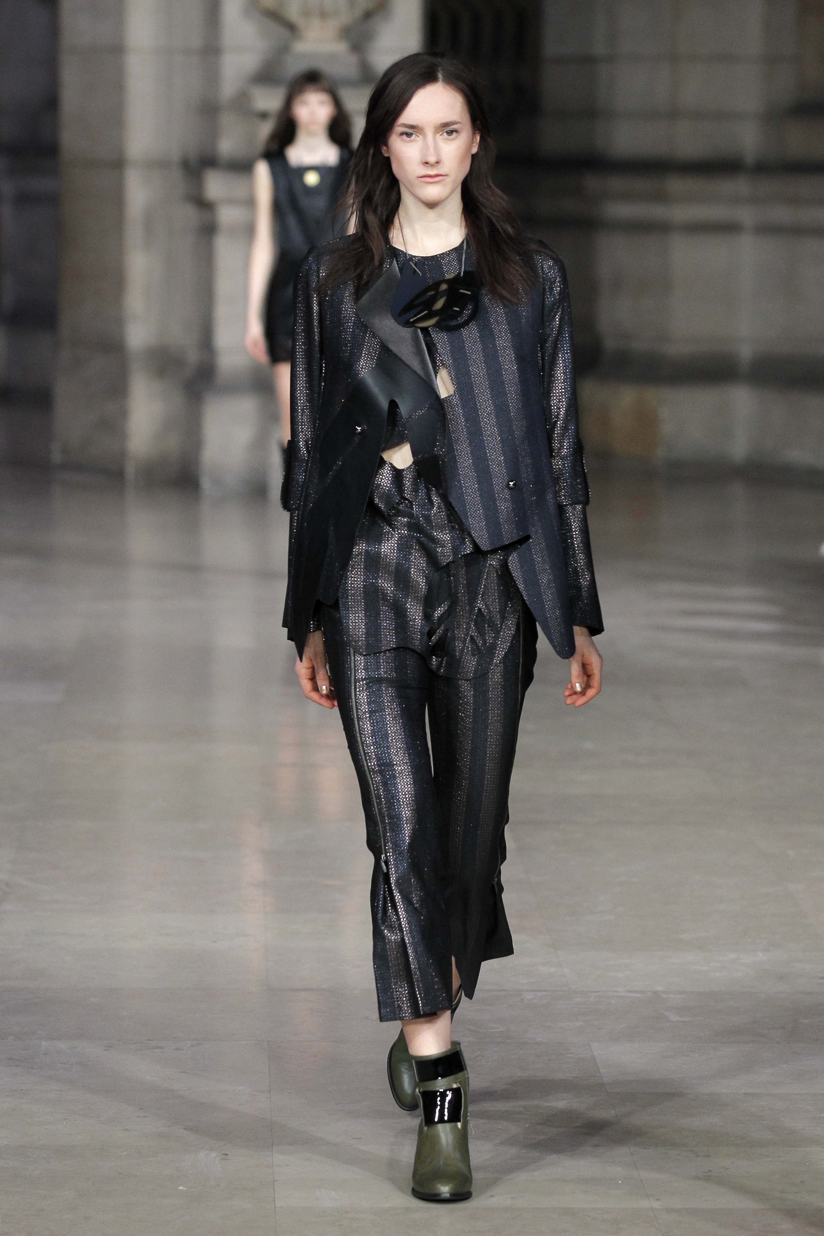 Luis Buchinho avait réinterprété l’héroïne de BD pour sa collection automne-hiver 2015. Cette année, le designer portugais ne change pas complètement de registre, mais la femme avec super-pouvoirs devient la femme au pouvoir.
