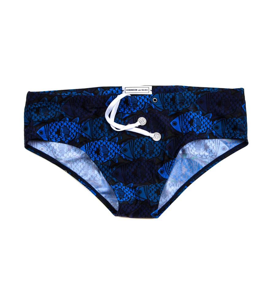 - Un maillot de bain : Version slip ou caleçon, on l’aime agrémenté de motifs pour la simple et bonne raison qu’il est plus reconnaissable sur la plage…en plus d’être ludique. Robinson les bains, 105€