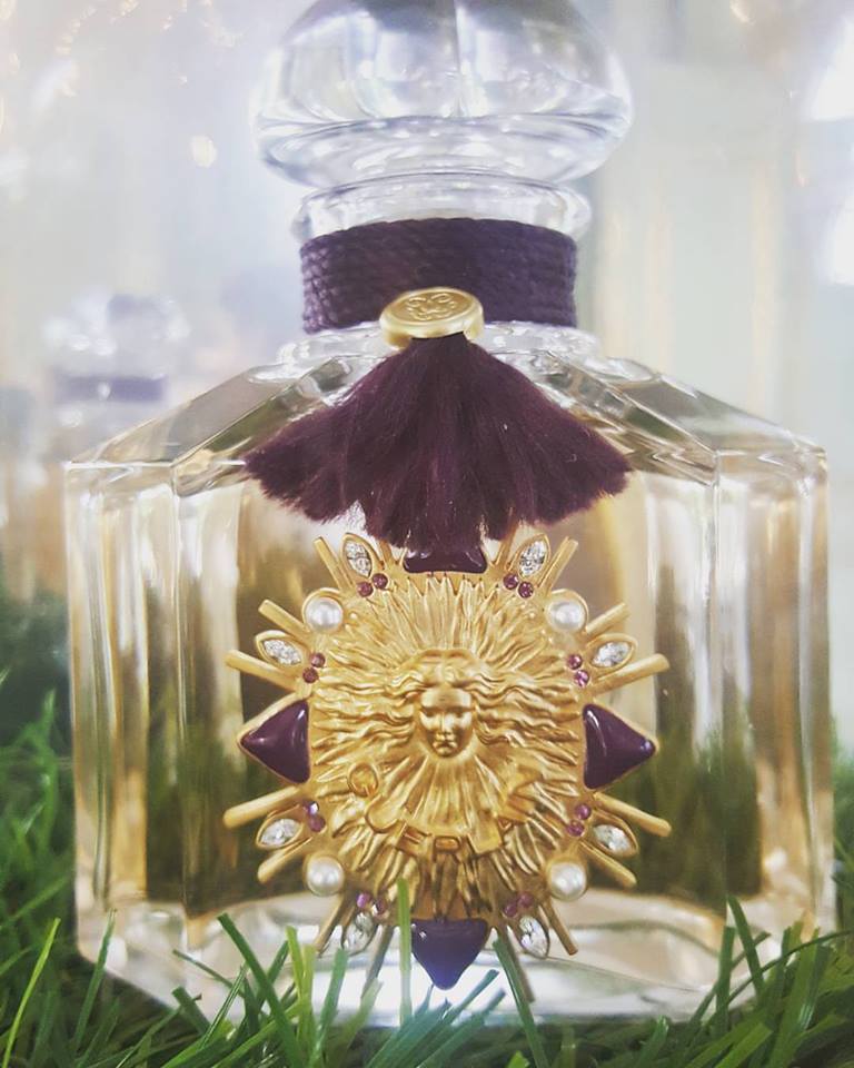 En hommage à Versailles, Guerlain habille son flacon Quadrilobé d’un bijou signé par le parurier Haute-Couture Desrues. Cette maison française fondée en 1929 déploie ses savoir-faire exceptionnels dans le travail exigeant du métal, de la dorure ou encore du sertissage pour donner naissance à un astre scultpural doré à l’or fin 23 carats et façonné par des artisans orfèvres.