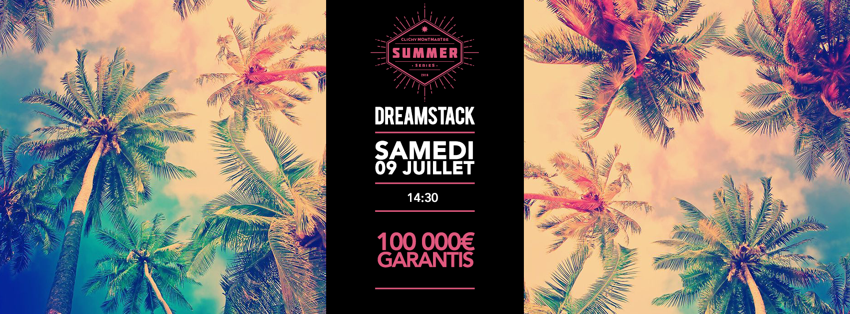 Réputé pour sa structure lente et progressive, le « Dreamstack » sera garanti à 100 000€ et se jouera sur 2 jours, du samedi 9 au dimanche 10 Juillet. Comme à son habitude, tous les amateurs et spécialistes des tournois deepstacks seront au rendez-vous !