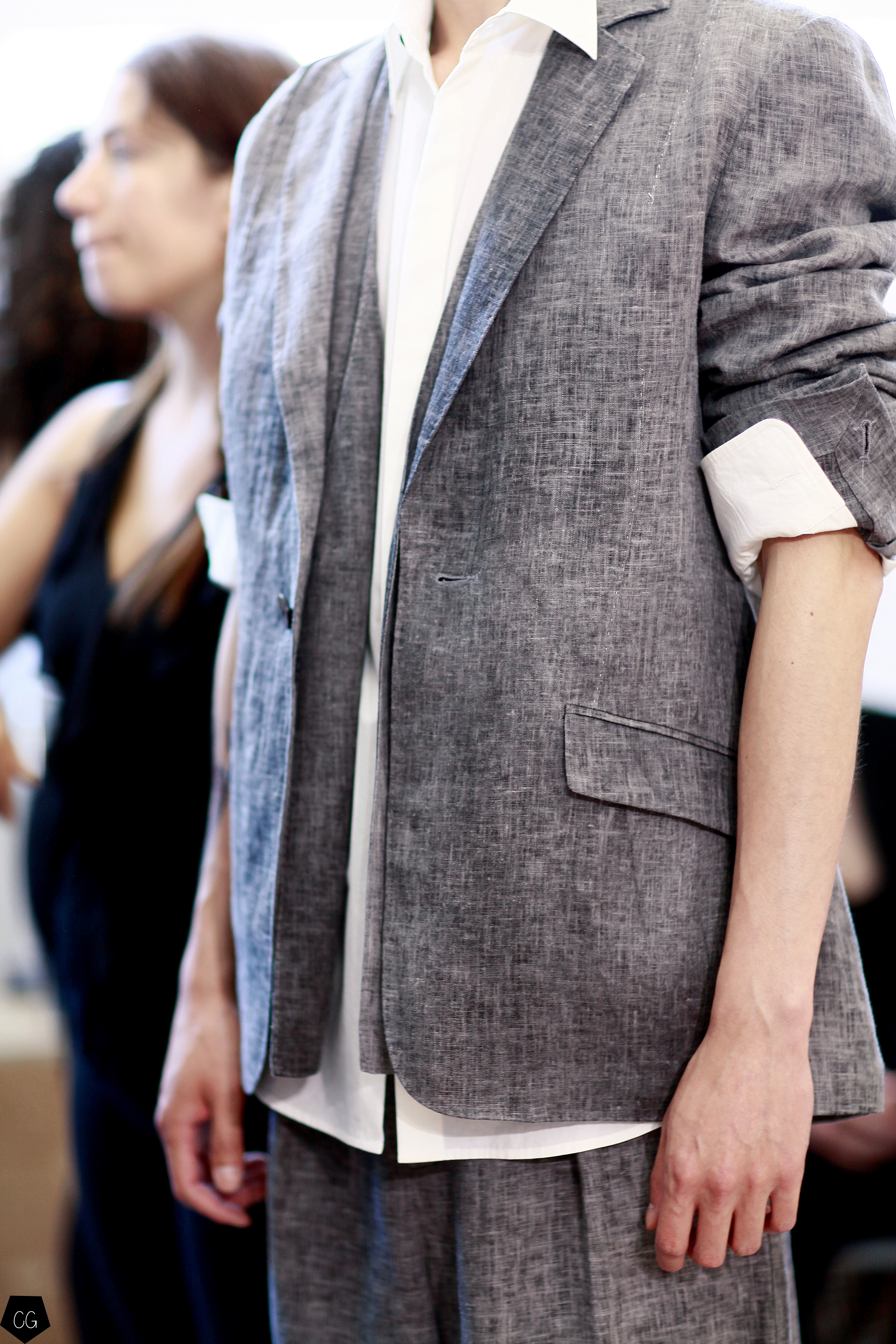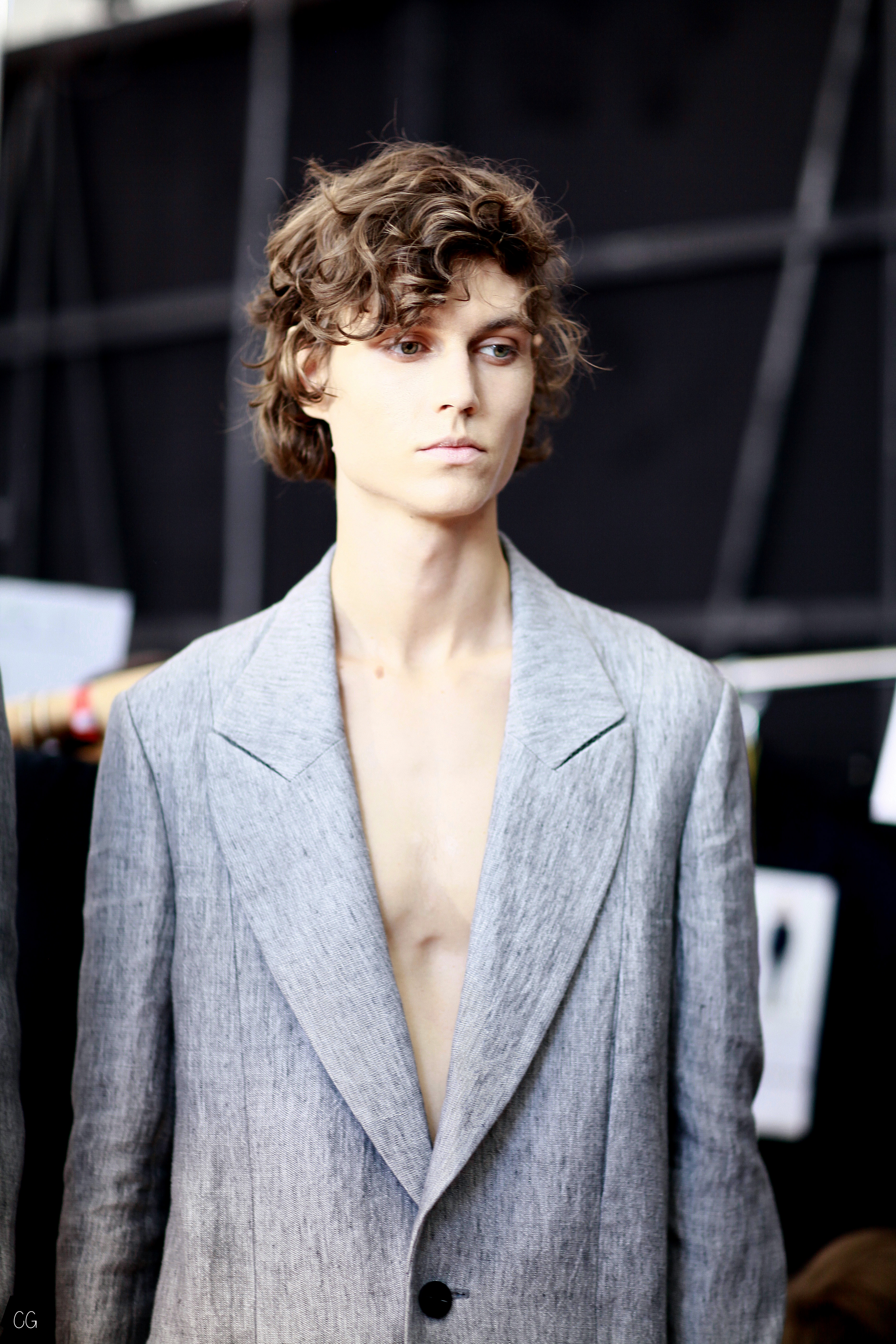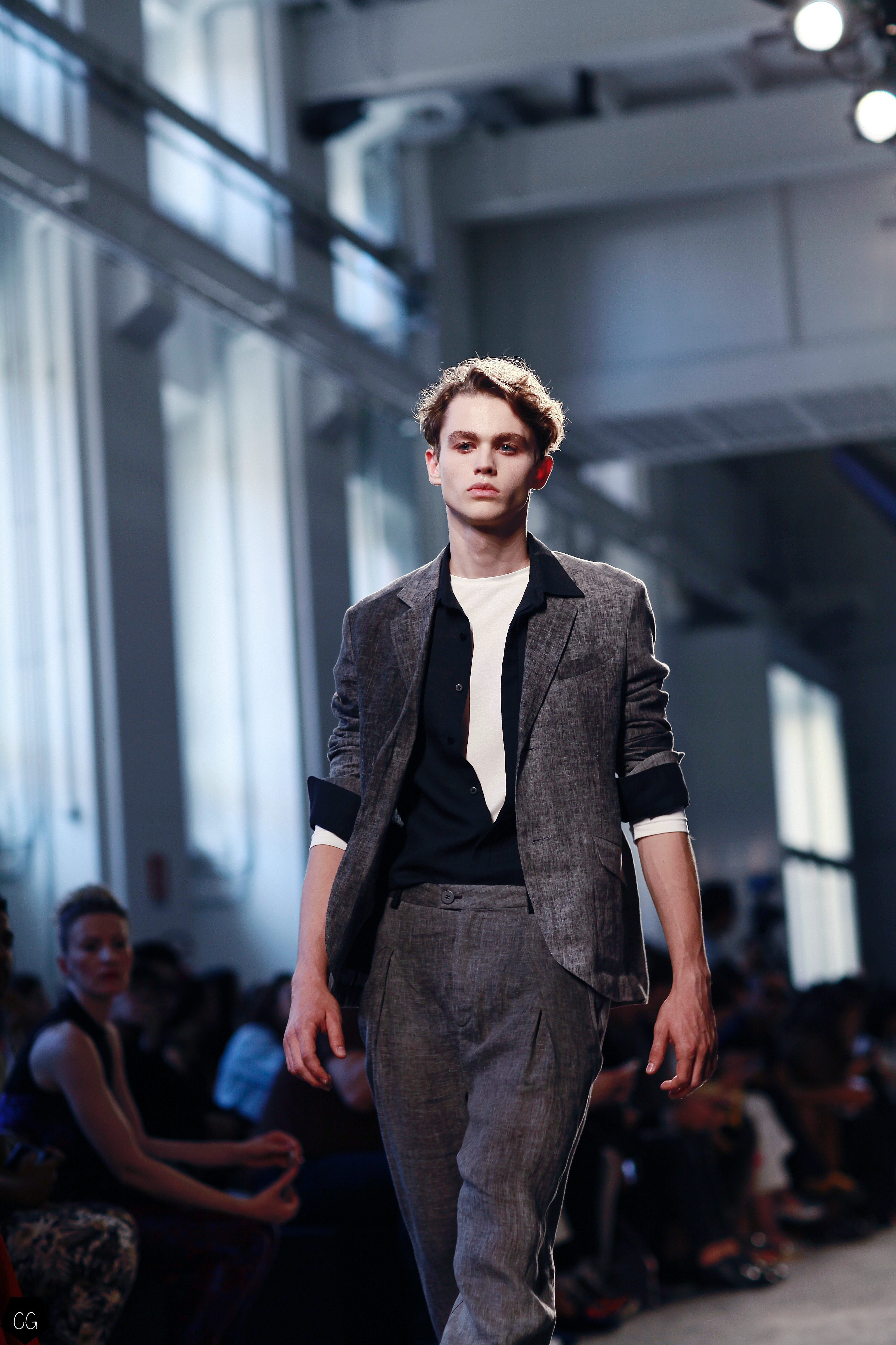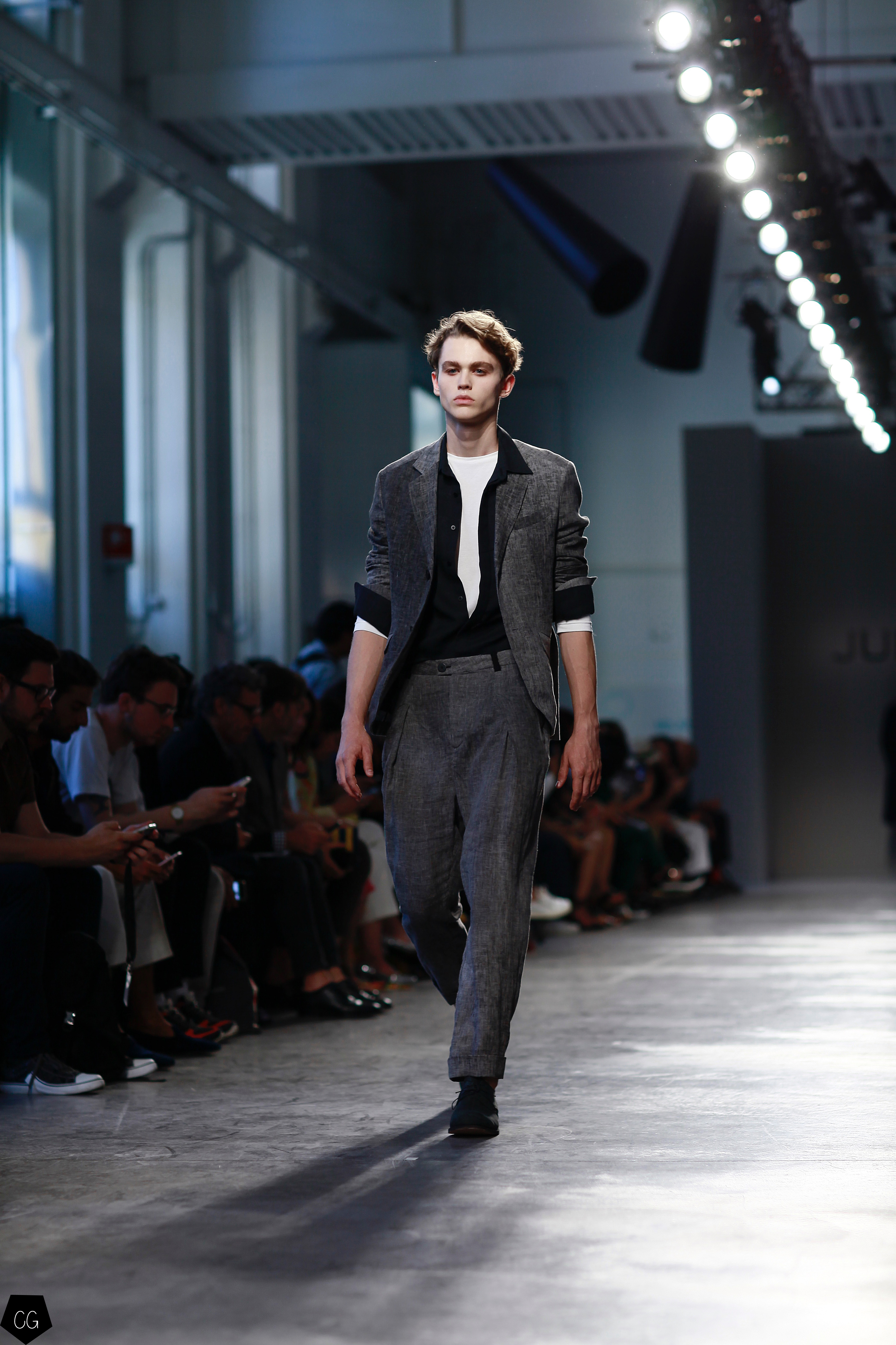 Manteaux longs, chemises ouvertes et côté jeune et un peu rebelle, Jun Li partage son image de l’homme moderne. La marque qui allie équilibre et contraste, mise sur un mixe entre costume masculin très stricte, avec le pantalon droit et la veste, et le confort avec des tissus fluides et des chemises au style rebelle. Tout le travail est dans le détail et la précision des modèles.