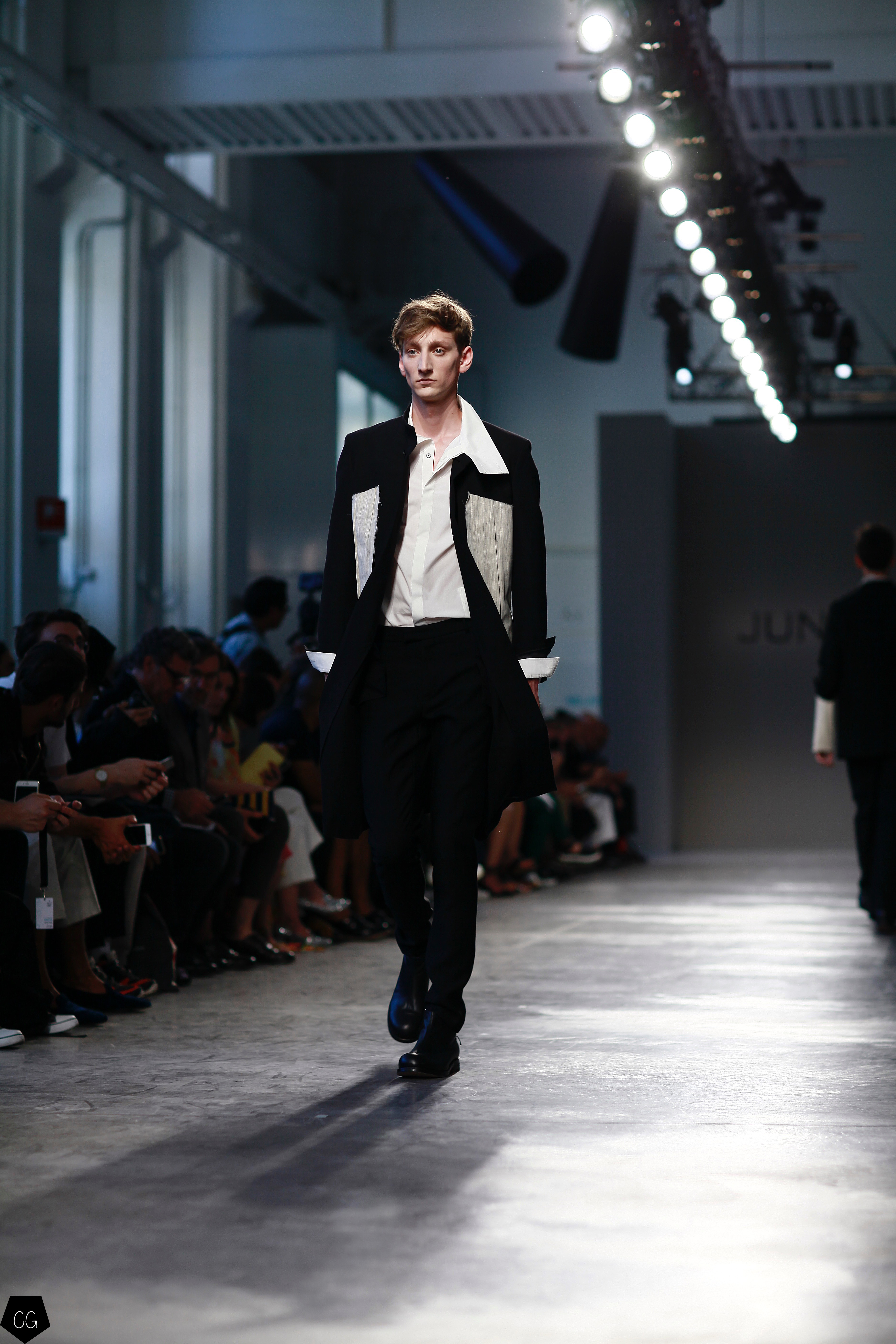 Jun Li a présenté sa nouvelle collection printemps été 2017 pour hommes à la dernière fashion week de Milan.