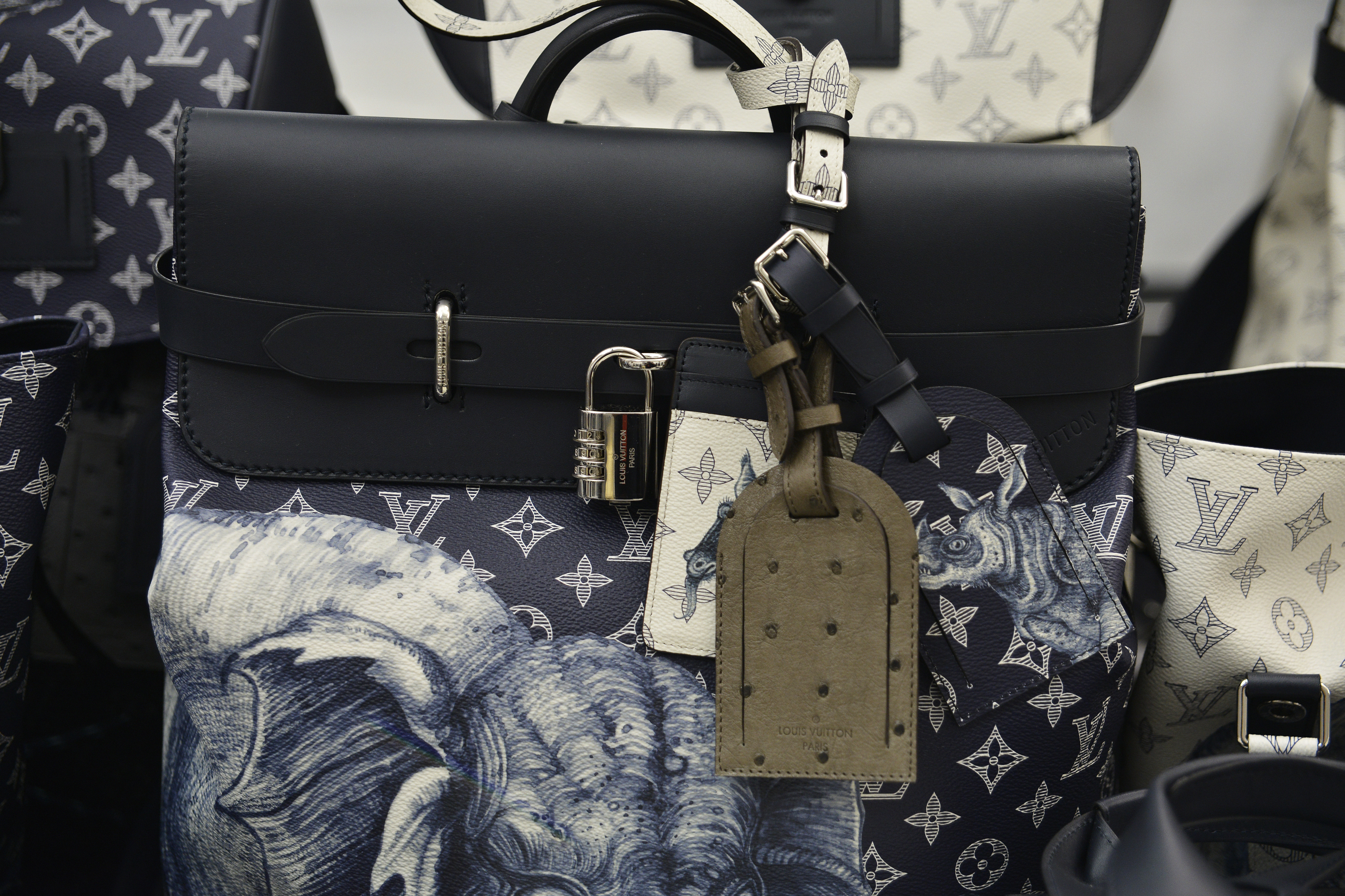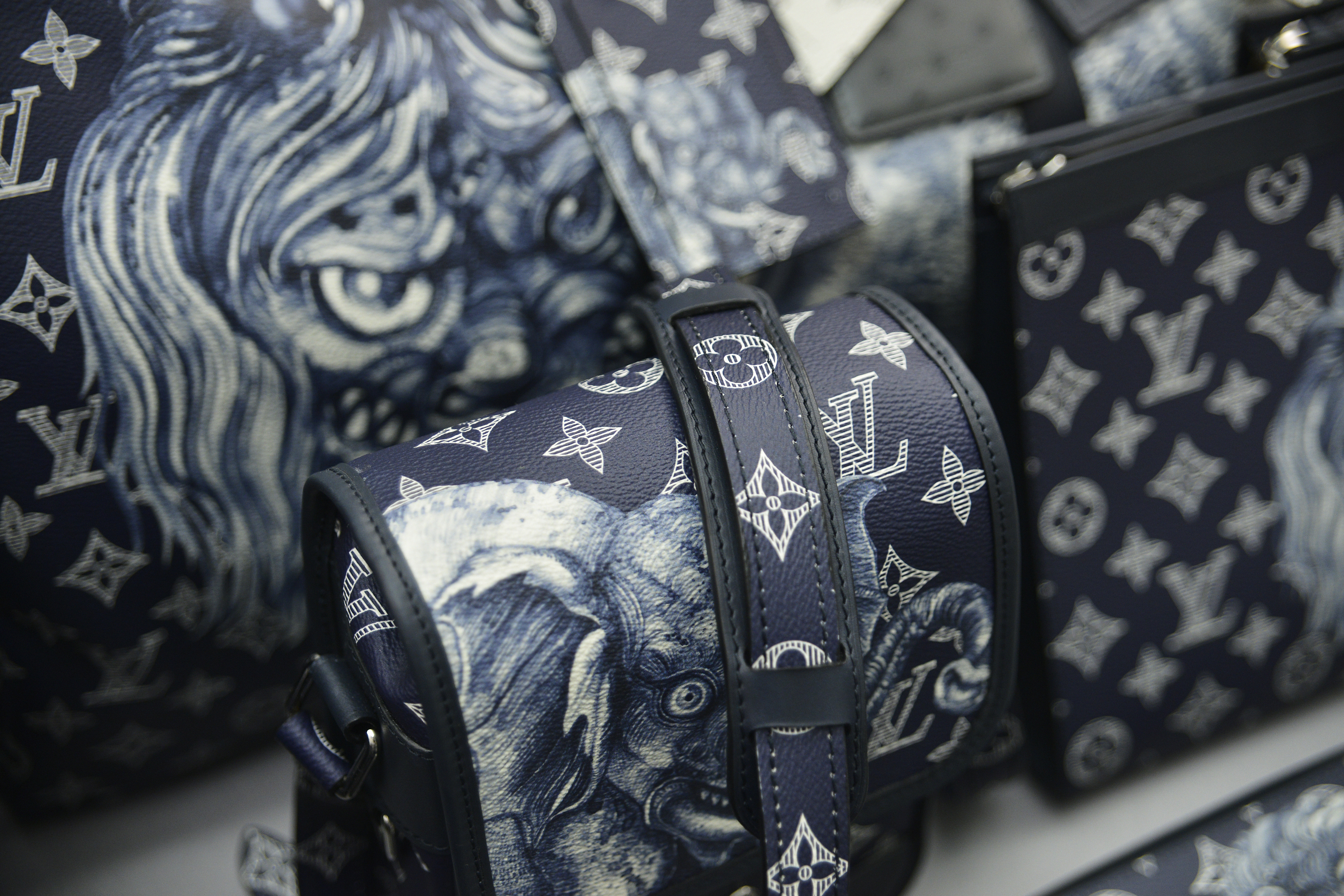 Les accessoires eux aussi voyagent et voyagent dans le temps. Le légendaire sac à main Monogram s’est lui aussi africanisé et laisse place au Savane Ink Monogram et au Dune. Le premier sac de voyage Louis Vuitton Steamer prend des allures de sac à dos et les malles se font la peau.