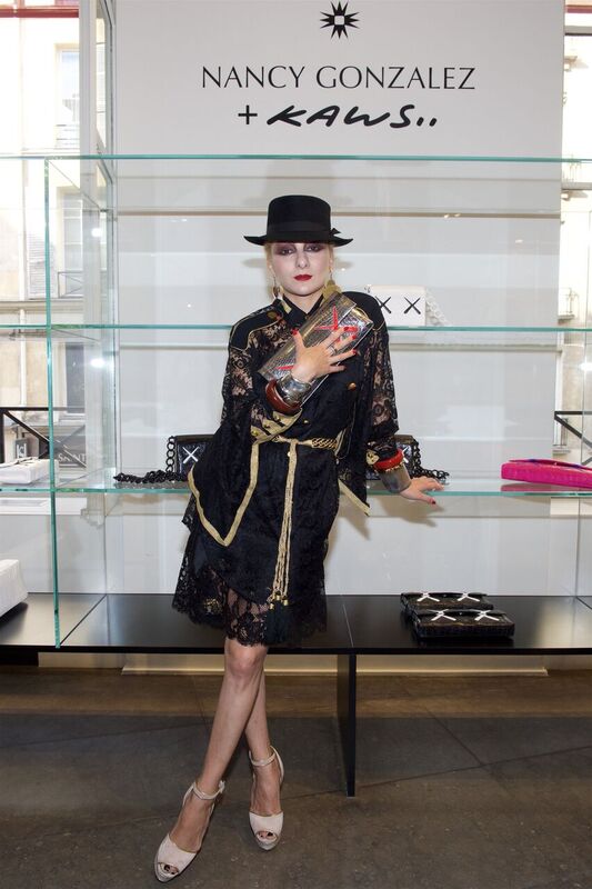 Kaws, est un artiste multidisciplinaire : dessins, graffitis, toiles, sculptures, un touche à tout qui a su s’imposer sur la scène de l’art contemporain, par ses œuvres qui transcendent les barrières culturelles et détournent les codes et les icônes de la culture populaire. Ainsi Santiago Barberi Gonzalez, président & directeur créatif de Nancy Gonzalez, a célébré le lancement de la collection capsule Nancy Gonzalez + KAWS en édition limitée lors d’un cocktail chez colette suivi d’un dîner privé au plaza athénée en présence de l’artiste new-yorkais KAWS et de Madame Nancy Gonzalez.