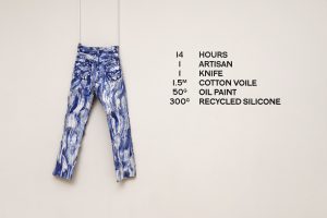 C’est du 27 juin au 3 juillet que l’artiste Faustine Steinmetz a présenté son travail sur le denim, dans une exposition appelée « Slow Denim » à la Joyce Gallery, une rétrospective sur son talent en hommage à la célèbre toile.
