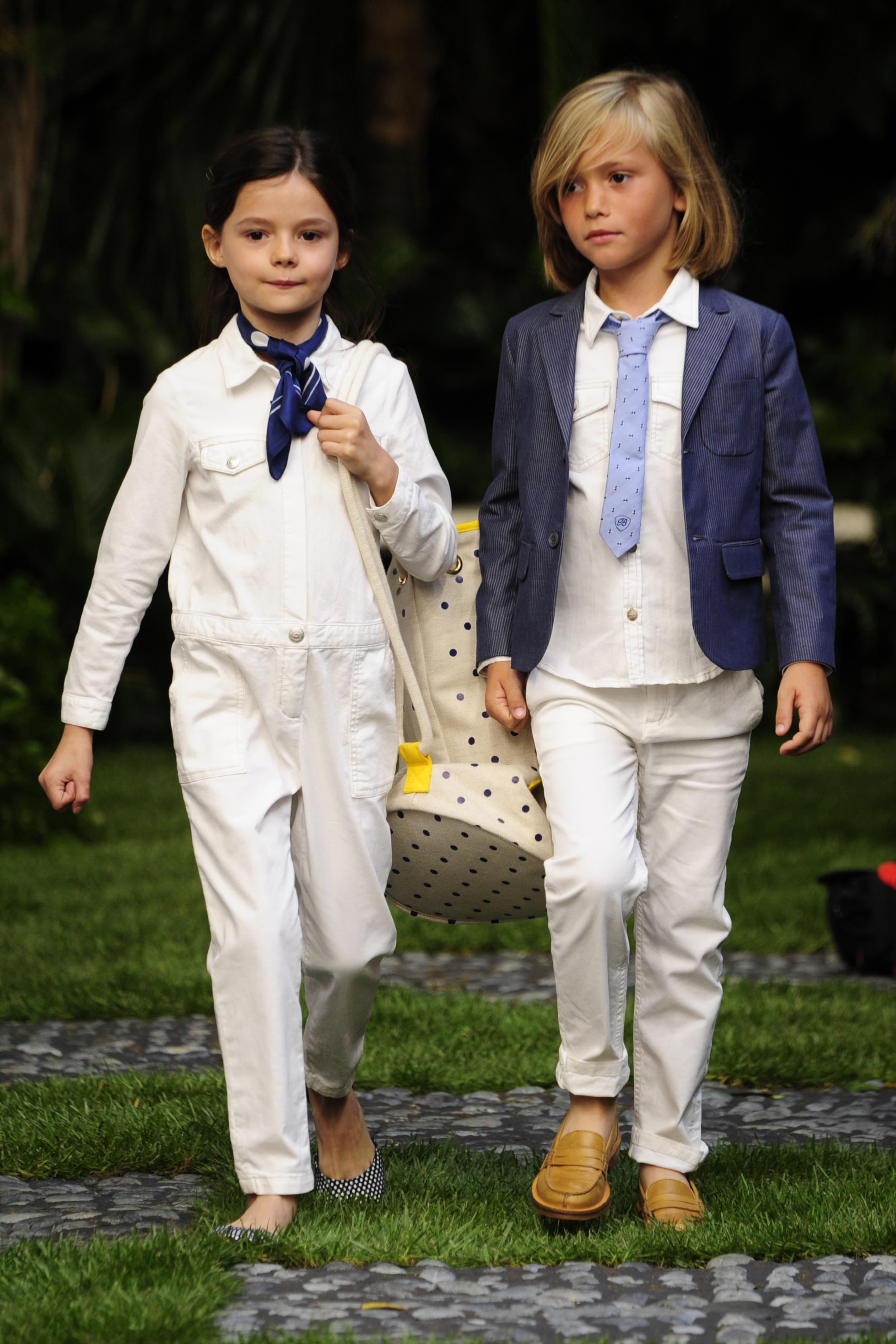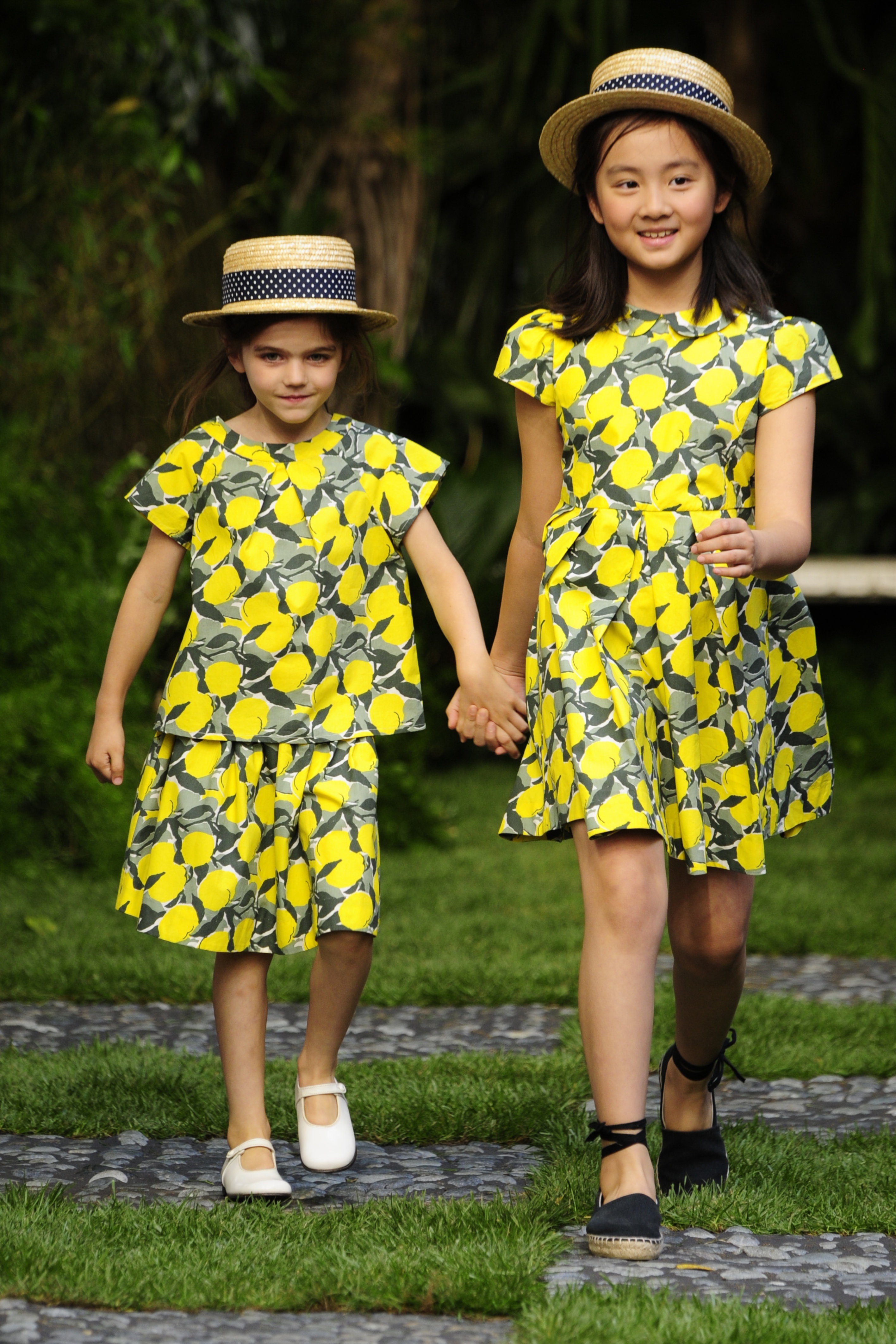 Les palmiers et l’exotisme de Palm Springs, se lisent dans les robes trapèzes avec col et les robes en organza de soie rebrodée. Les enfants aiment rire, et portent des tenues qui prouvent leur amour pour la vie : jaune acide, jaune poussin, blanc, faux noir, rose fard…