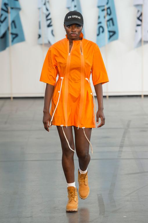 La marque a dévoilé un show où les tenues rendaient hommage aux célèbres tenues de travail. Sobres, fonctionnels et originaux, ce n’est pas moins de 33 looks qui ont défilés lors de ce show. Dans une palette de couleurs qui rappellent forcément les vêtements de travail, les silhouettes allaient du bleu profond, au blanc pur, au denim et à l’orange puissant.