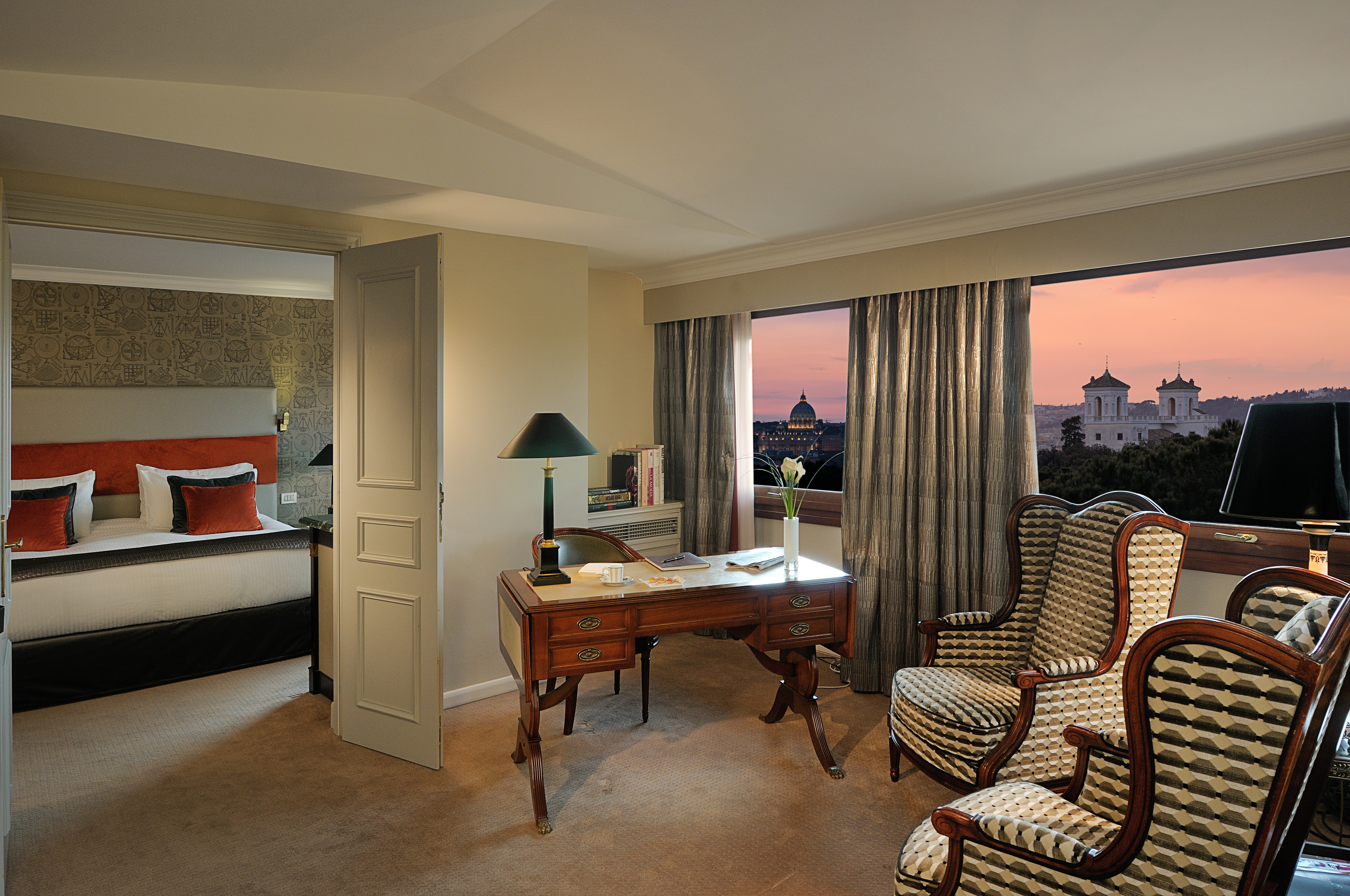 Le Sofitel Rome Villa Borghese offre 81 luxueuses chambres, dont 3 Suites Prestige avec terrasse privée, 30 chambres Luxury, 42 chambres Superior et 6 chambres Classic. Les chambres du Sofitel Rome Villa Borghese donnent sur de merveilleuses vues de Rome, chacune ayant sa propre disposition, comme tout appartement au sein d’un palais ancien.