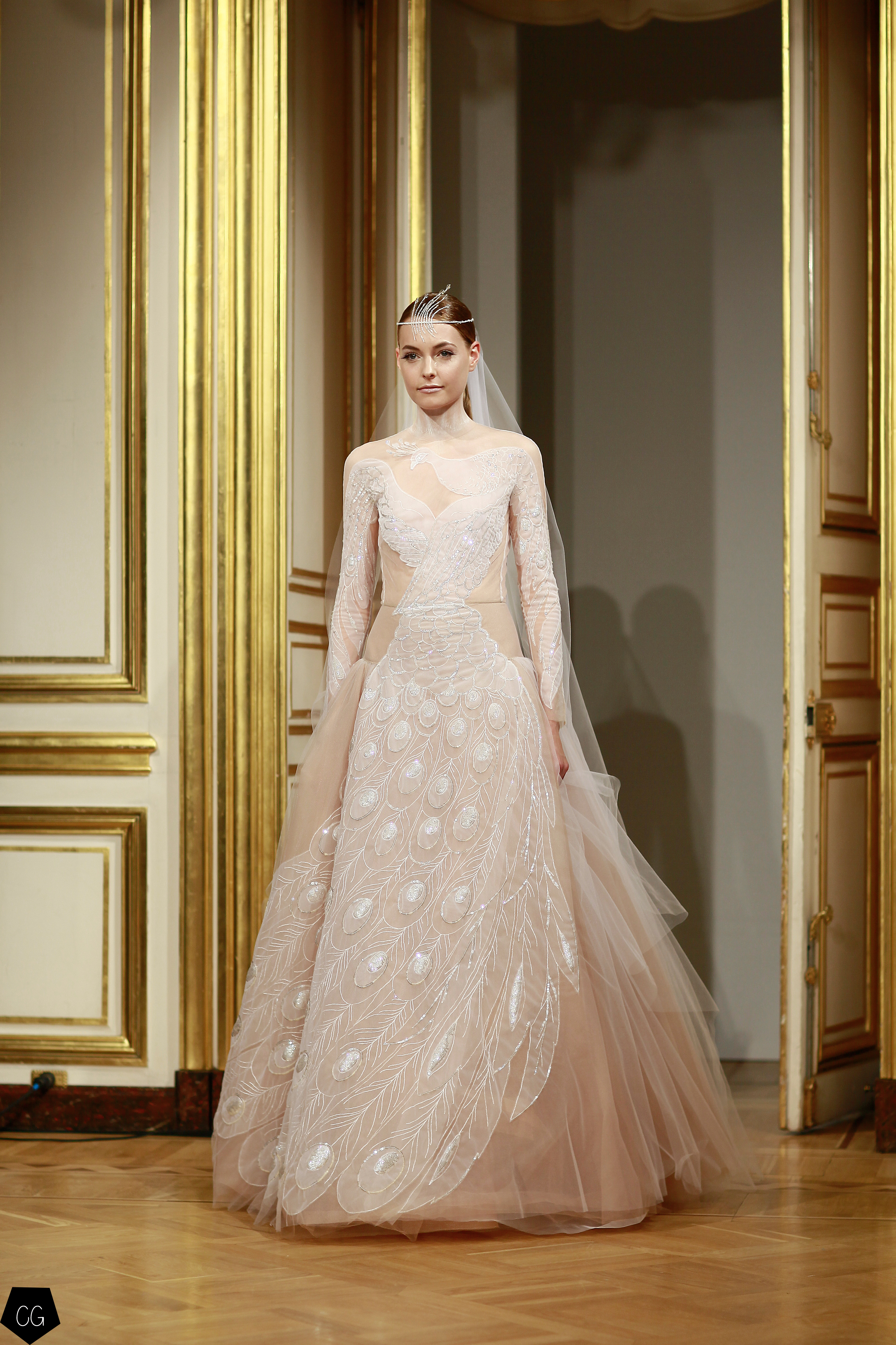 Le défilé se termine sur une traditionnelle robe de mariée d’un blanc qui irradie la lumière où le paon est ici un oiseau immaculé scintillant, une véritable féerie. Les 365 couleurs de la légende sont sûrement présente dans cette collection flamboyante qui fait de la femme qui la porte une créature magique et merveilleuse. Coup de chapeau également au merveilleux travail de broderie exécuté par les petites mains … de fées.