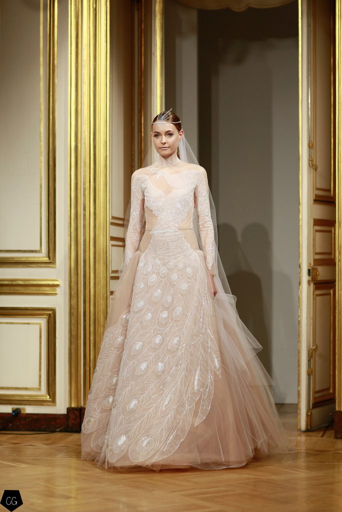 Le défilé se termine sur une traditionnelle robe de mariée d’un blanc qui irradie la lumière où le paon est ici un oiseau immaculé scintillant, une véritable féerie. Les 365 couleurs de la légende sont sûrement présente dans cette collection flamboyante qui fait de la femme qui la porte une créature magique et merveilleuse. Coup de chapeau également au merveilleux travail de broderie exécuté par les petites mains … de fées.