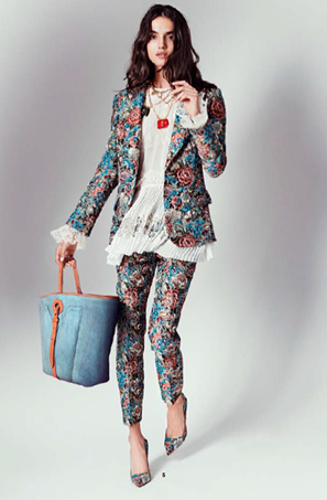 Sportwear, la collection brise toutes les règles traditionnelles et joue avec la juxtaposition : vestes, manteaux, jupes et pantalons au tissu de gobelin s’assemblent avec des soies au blanc cassé, des inserts de dentelle et de popeline.