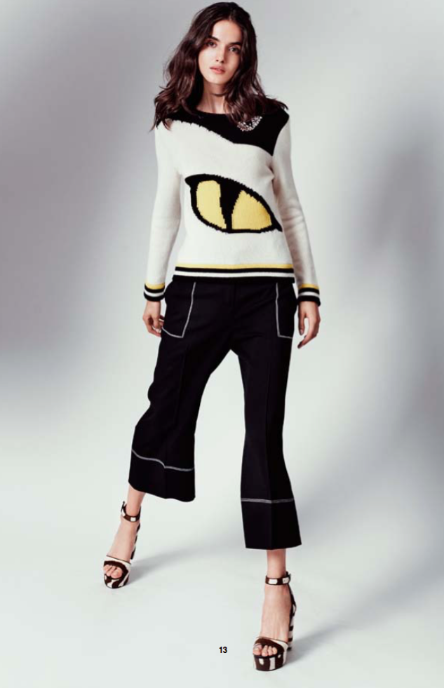 La collection respire le rock’n’roll pop et les styles décomplexés se mélangent tout en détail : yeux de chat géométriques, rayures, tricots …