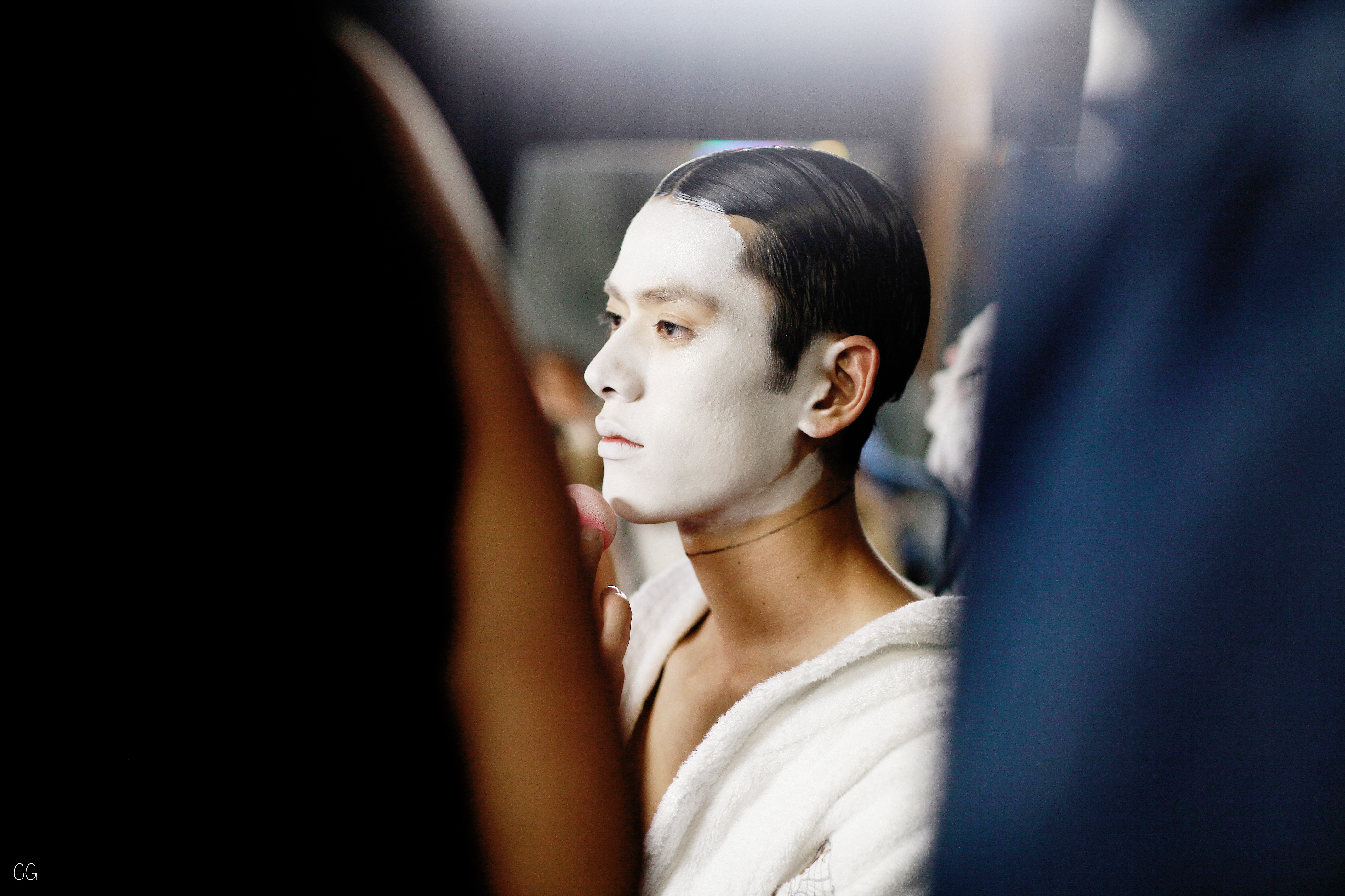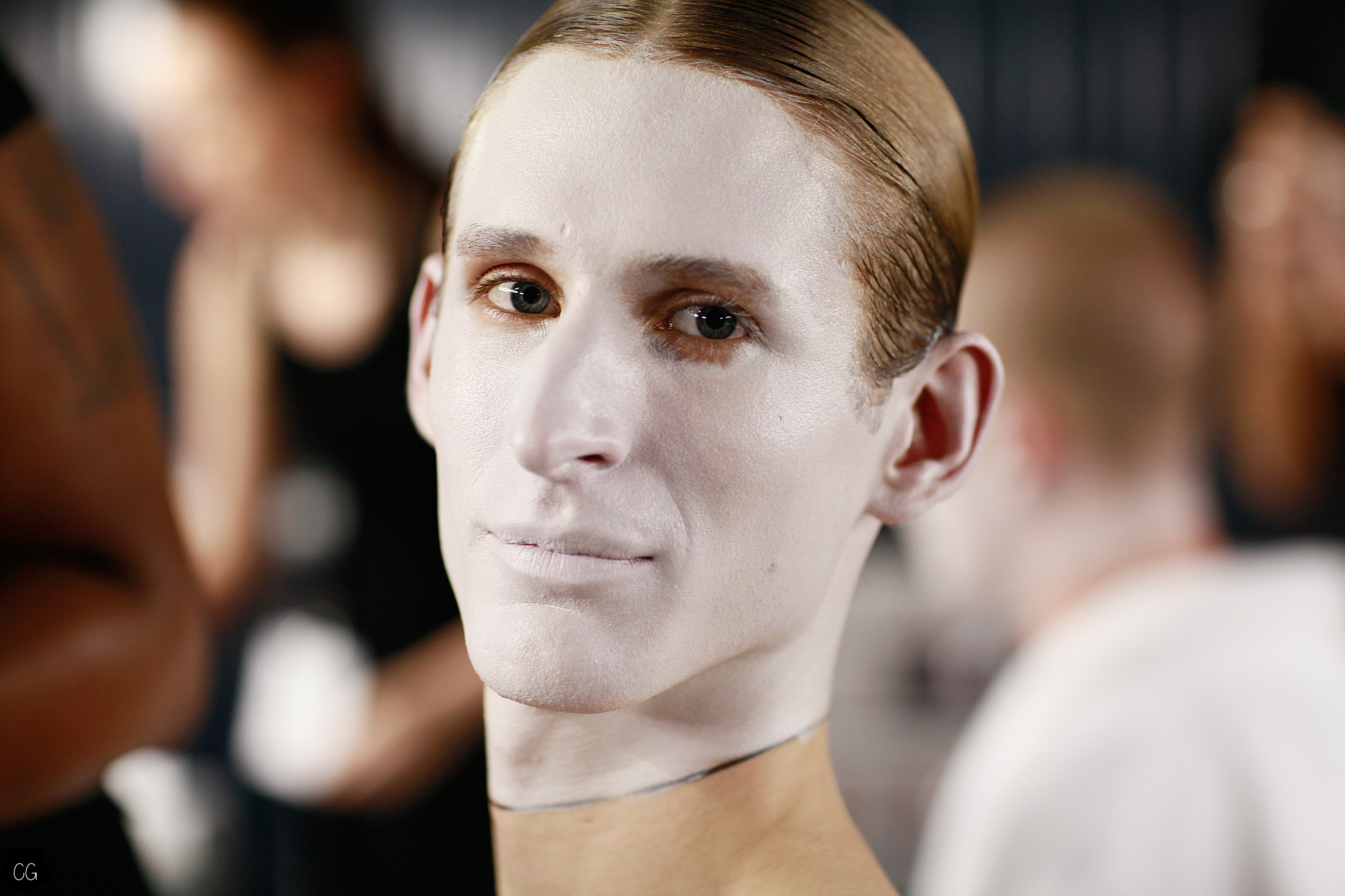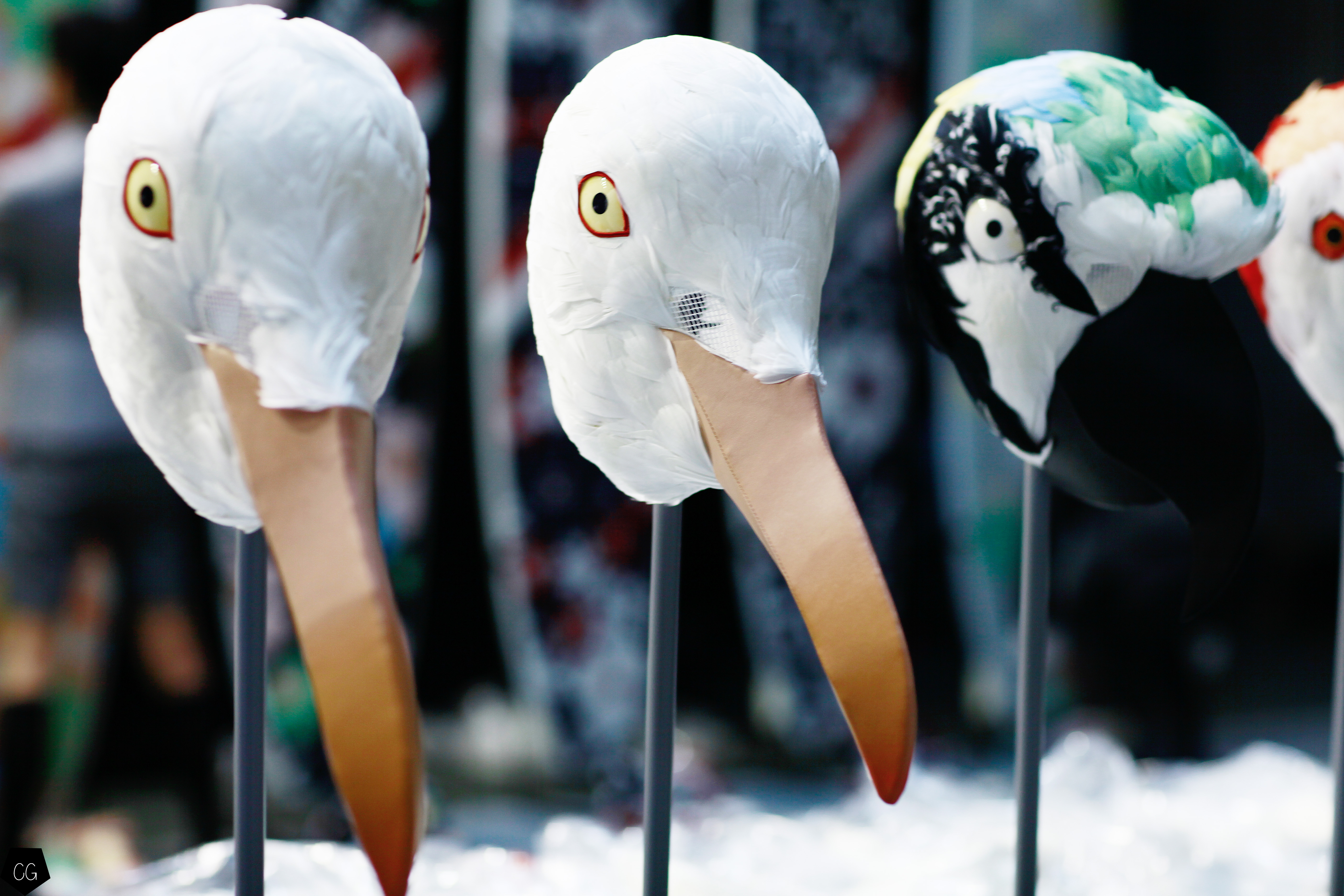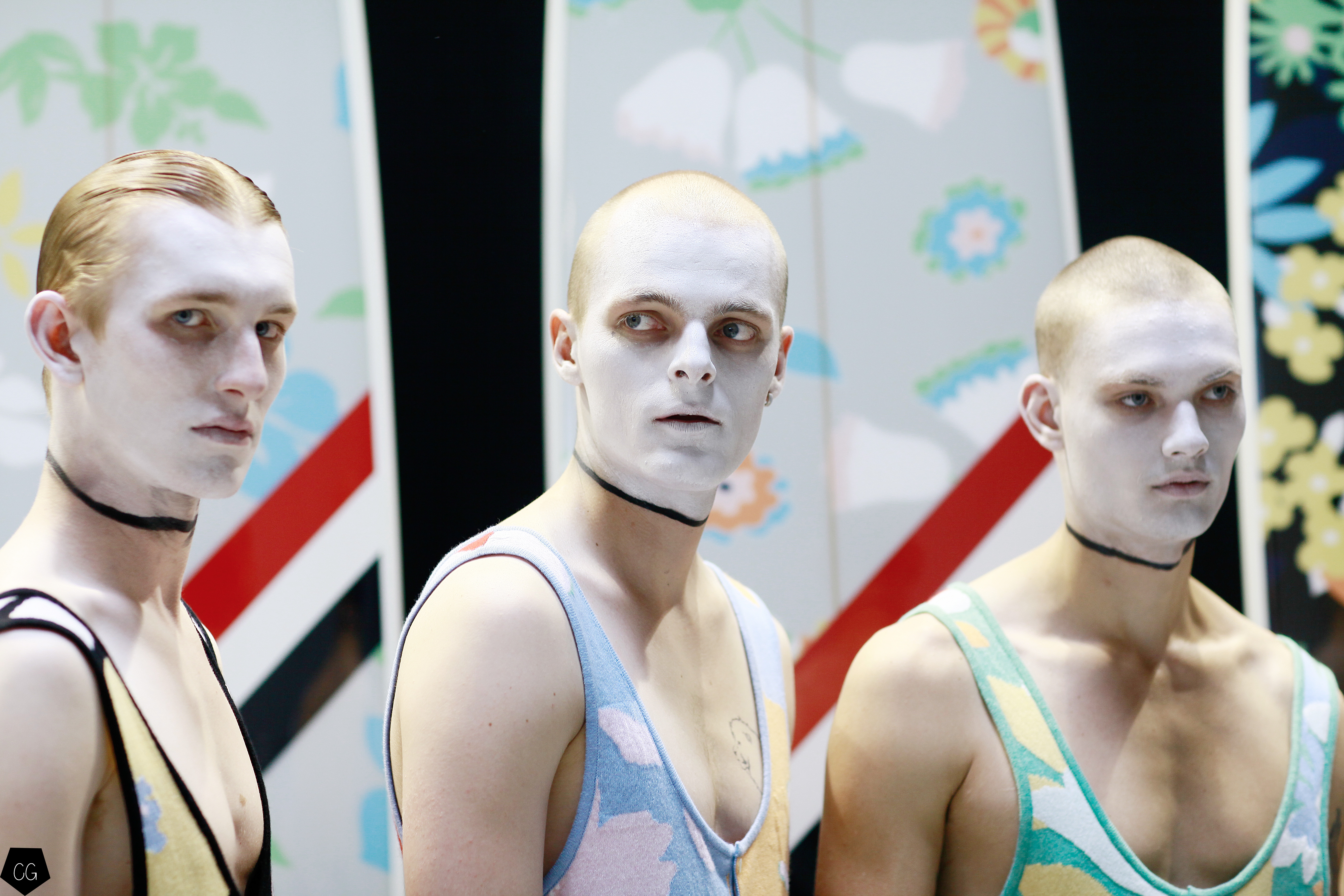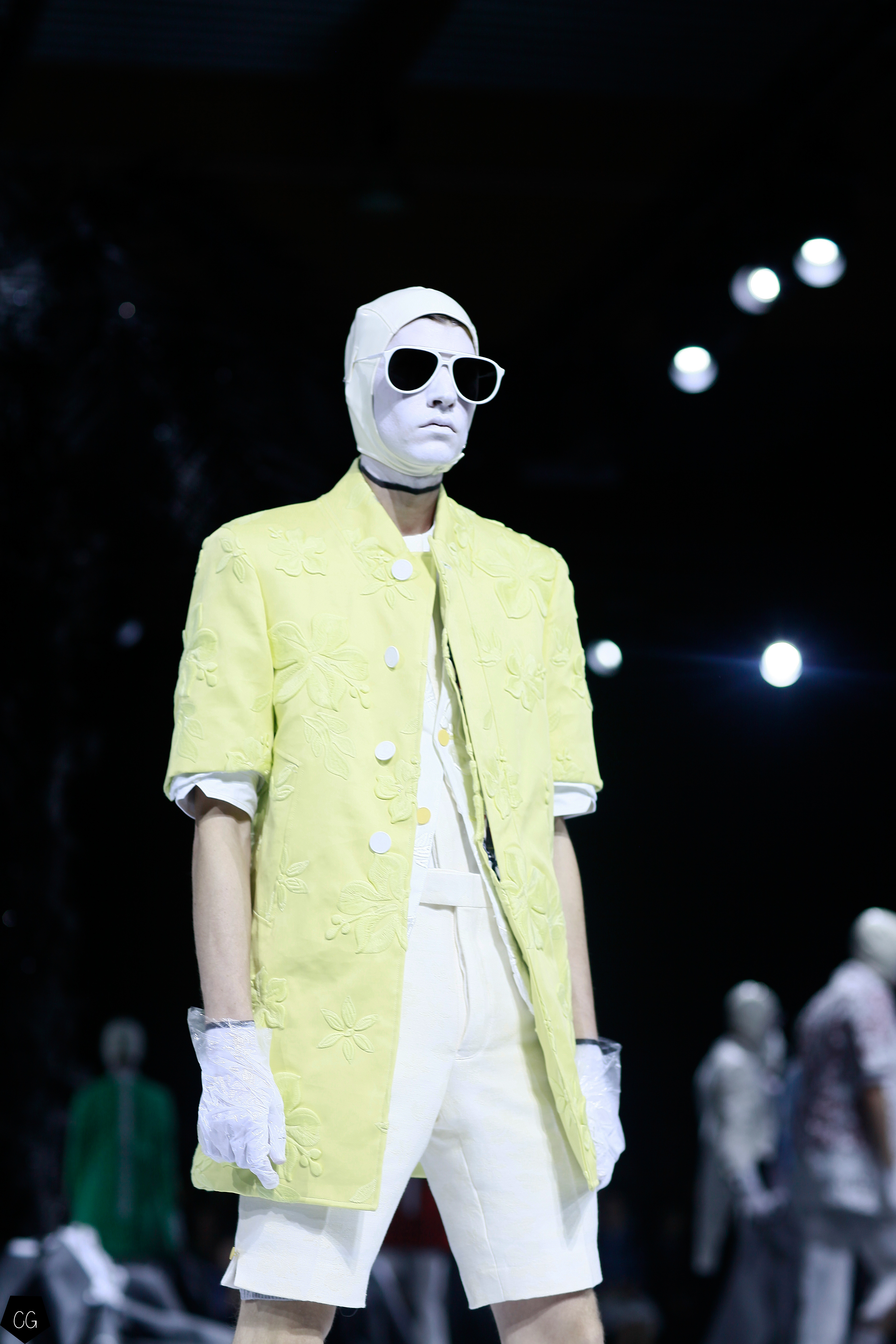 Le costume trois pièces devient la pièce emblématique du défilé. Il est réalisé dans des matières originales et complètement avant-gardistes, l’homme n’est plus cantonné au classique mais à l’innovation du costume trois pièces qui devient alors un vêtement avec lequel on peut jouer. Parfois même composé entièrement de plumes, le costume ici définit une histoire de mutation, de changement et d’évolution, comme l’exprime le défilé depuis le début, notamment lorsque les mannequins aux allures strictes se changent en gentlemans originaux, et à la fin en surfeur fière de leur patrie.