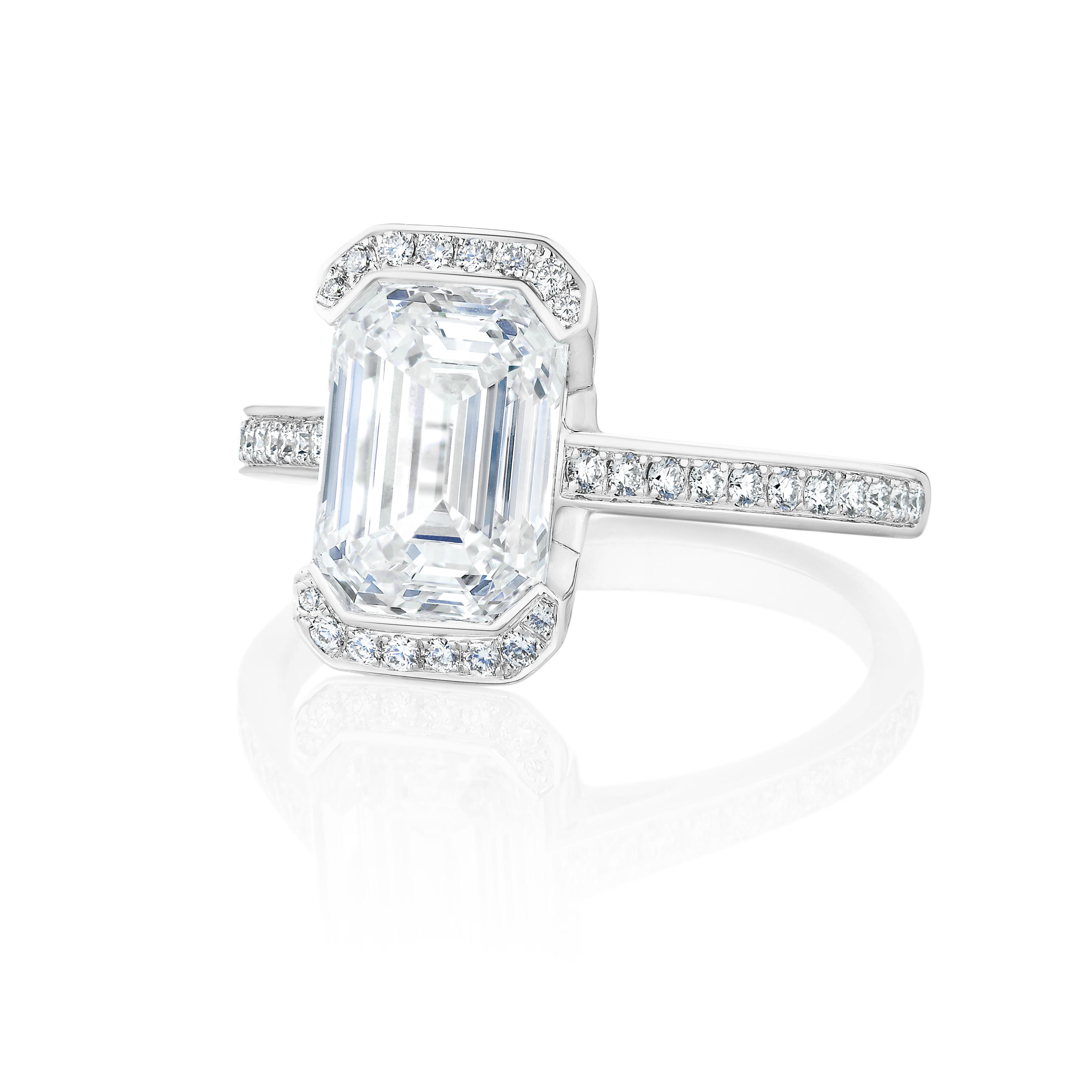 Construit entre 1930 et 1950, Battersea Power Station fut longtemps le symbole de la force, de la lumière ainsi que de la puissance industrielle de la ville. La collection rend hommage à l’Art Déco à travers cette pièce avec des coupes en angles et ses tailles émeraudes.